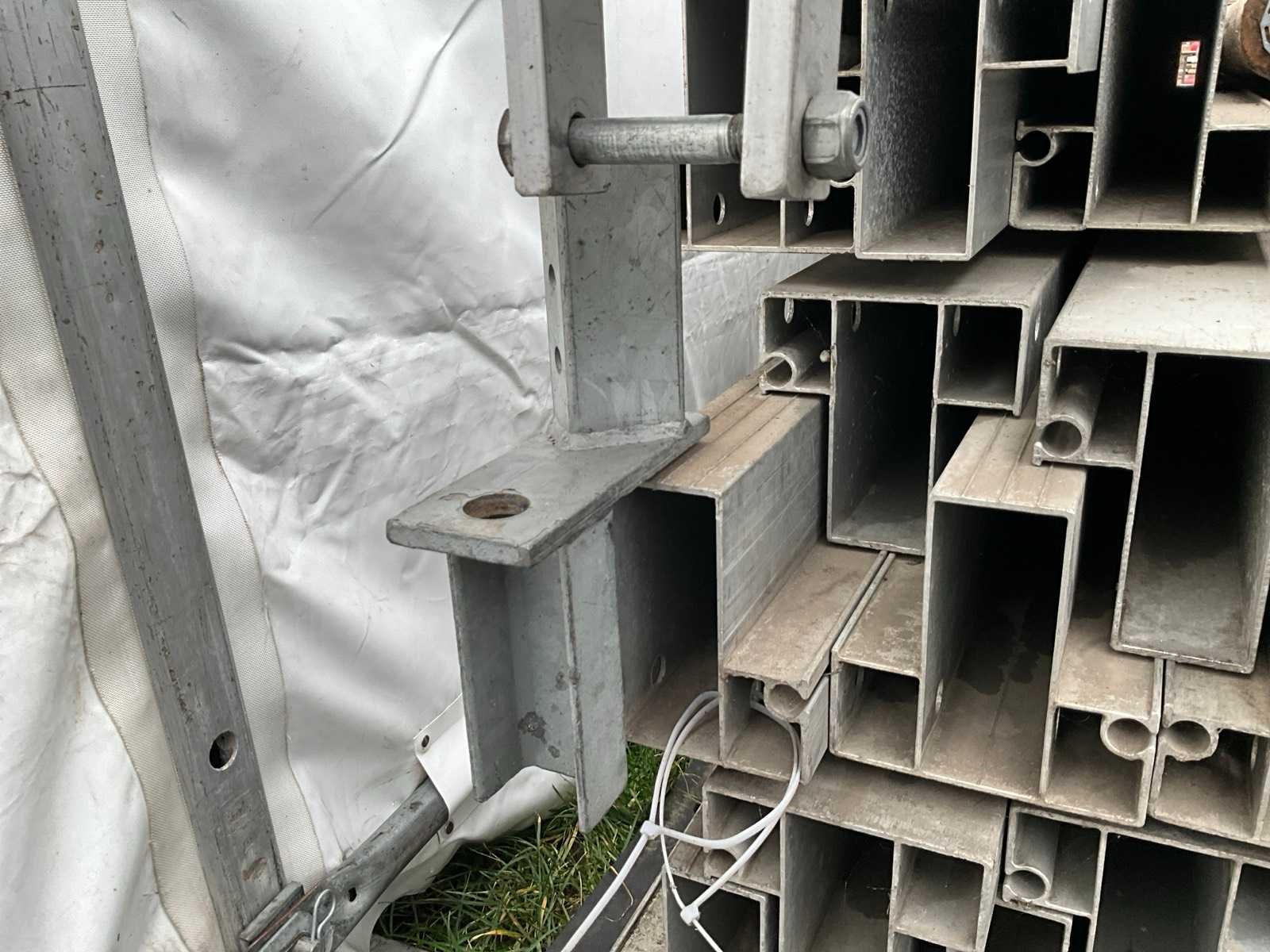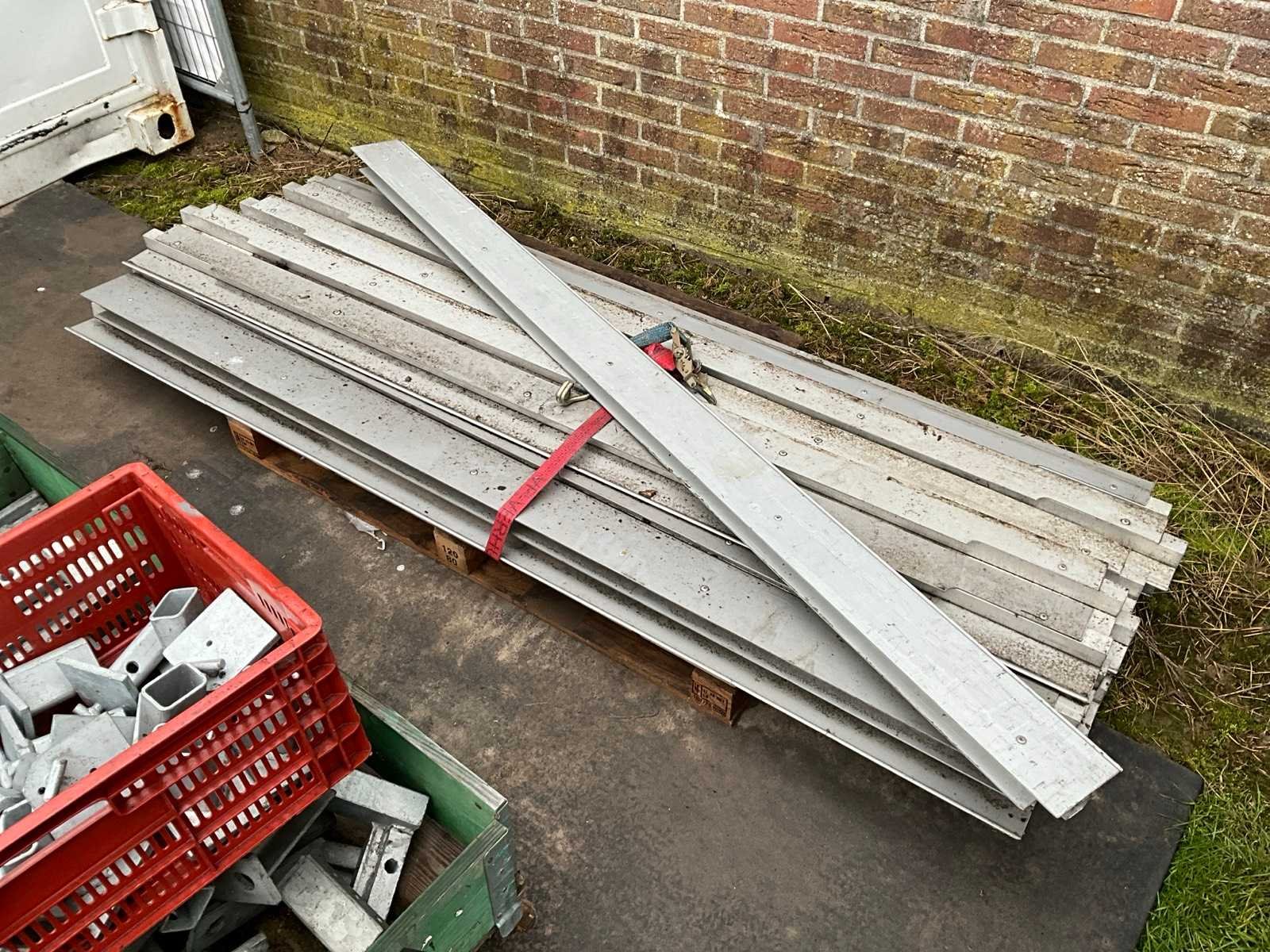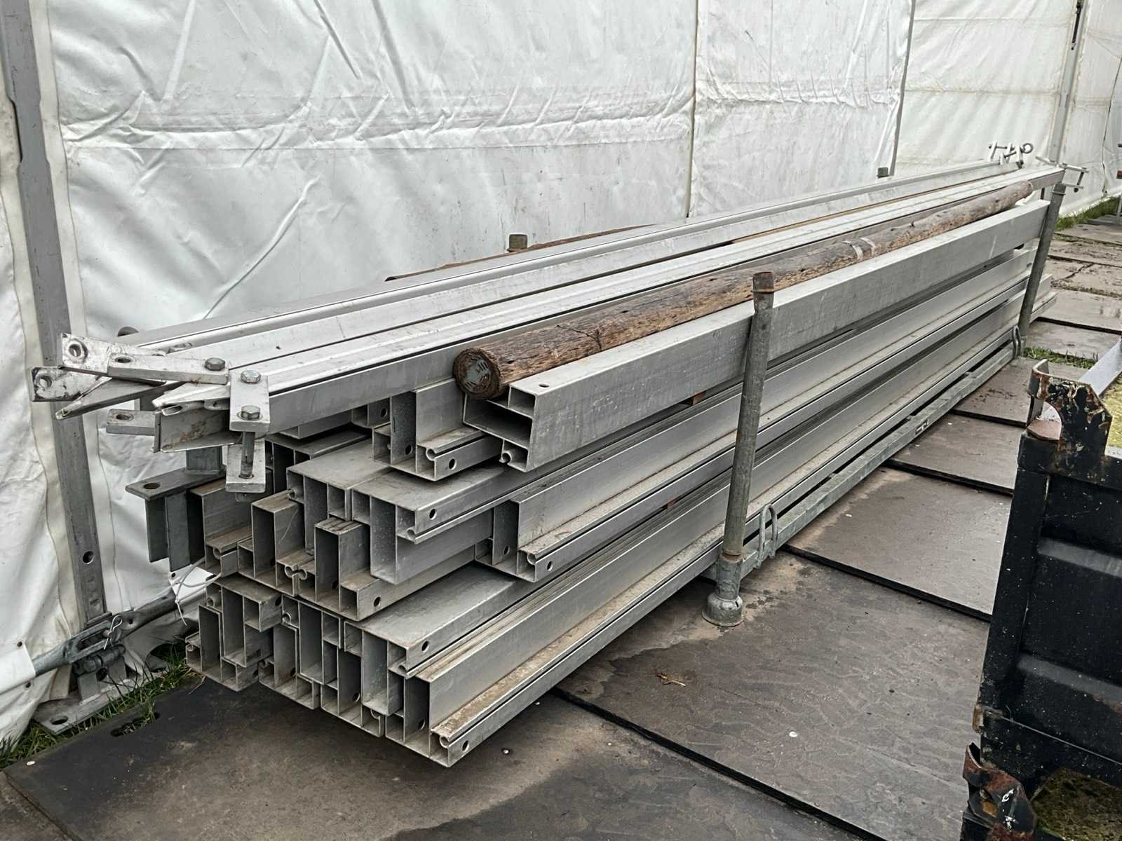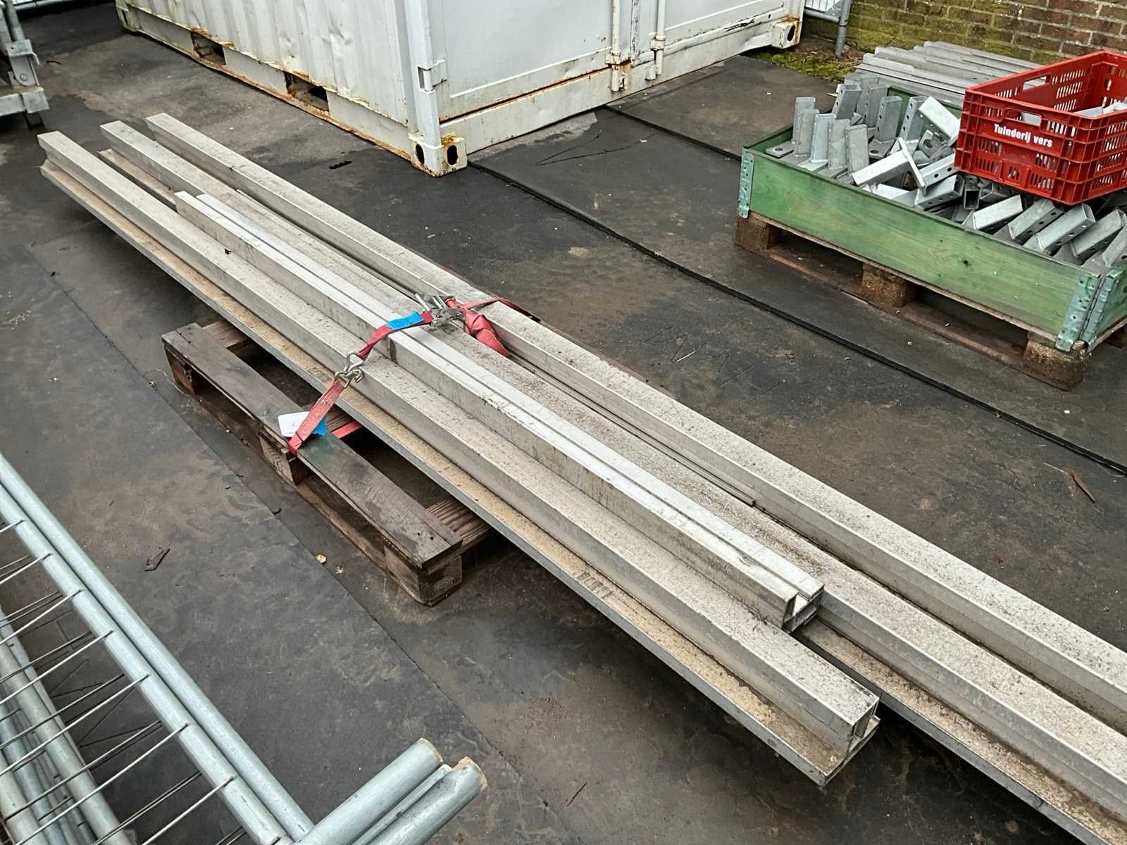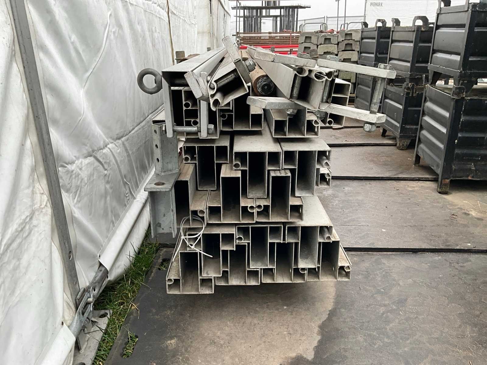 Bestaande uit T-profielen voor cassettevloeren; spantentpalen; gevelliggers en zwaarlast-koppelingen; voor 4 “roder” pagodes; lengtes tot 600 cm