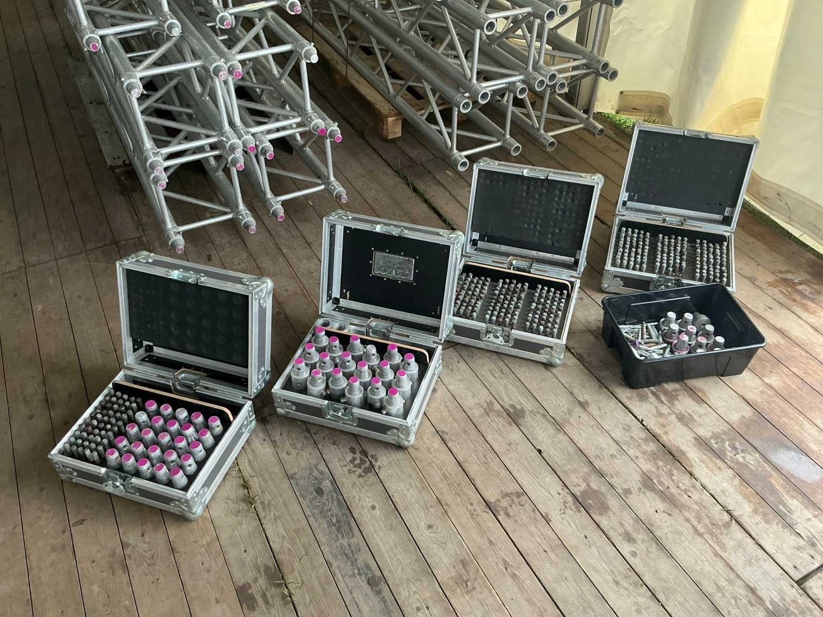 4x flightcase LxBxH: 300x390x210mm gevuld met onder andere truspennen Merk: Eurotruss