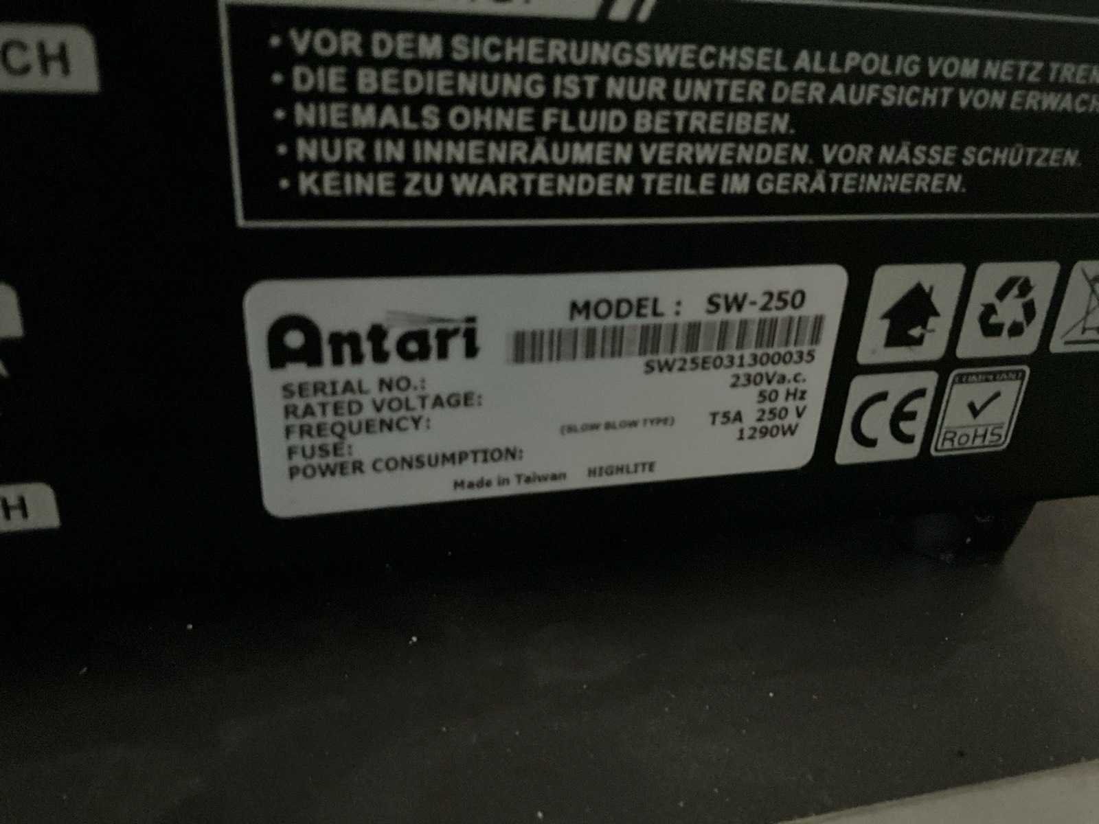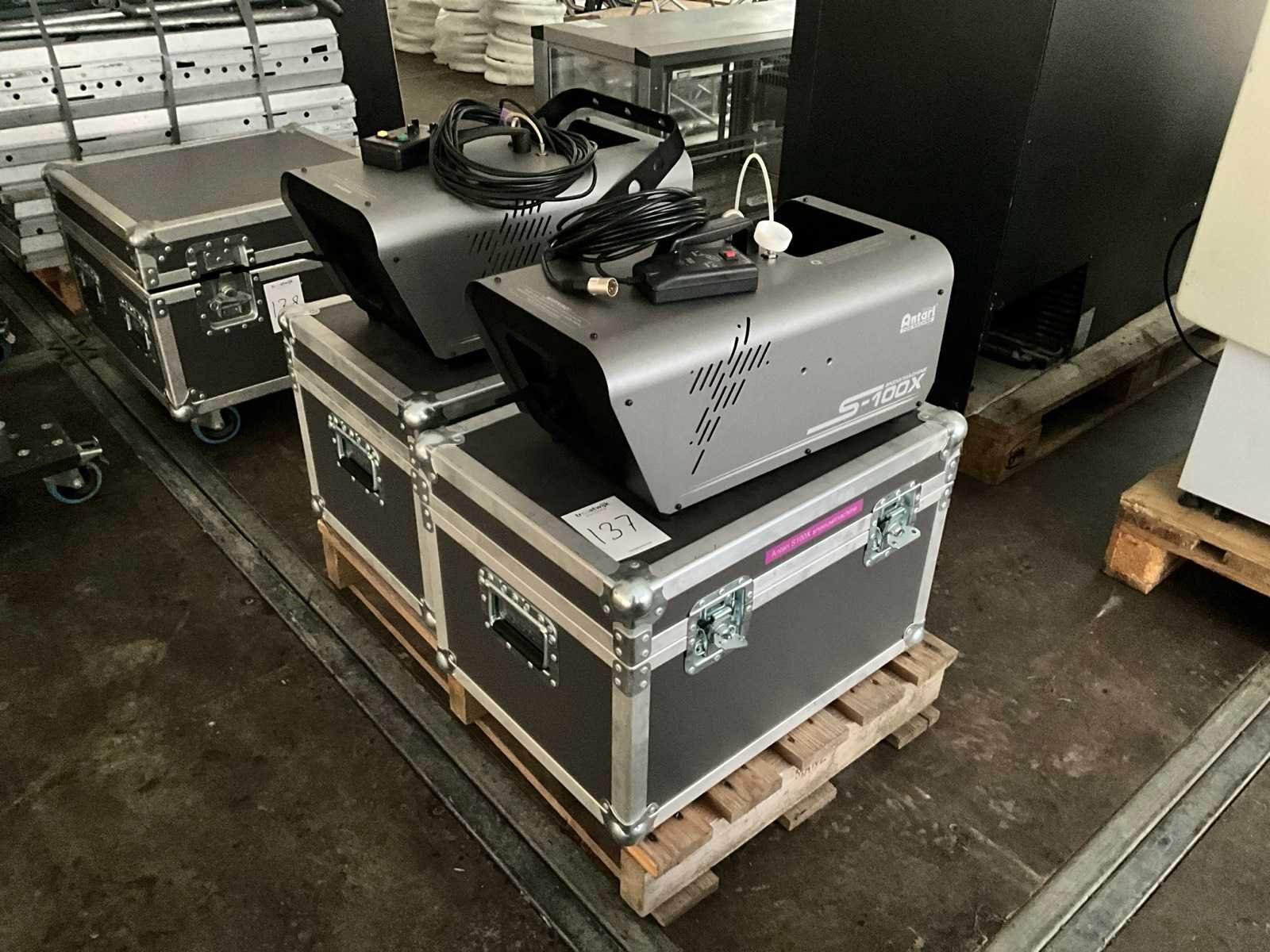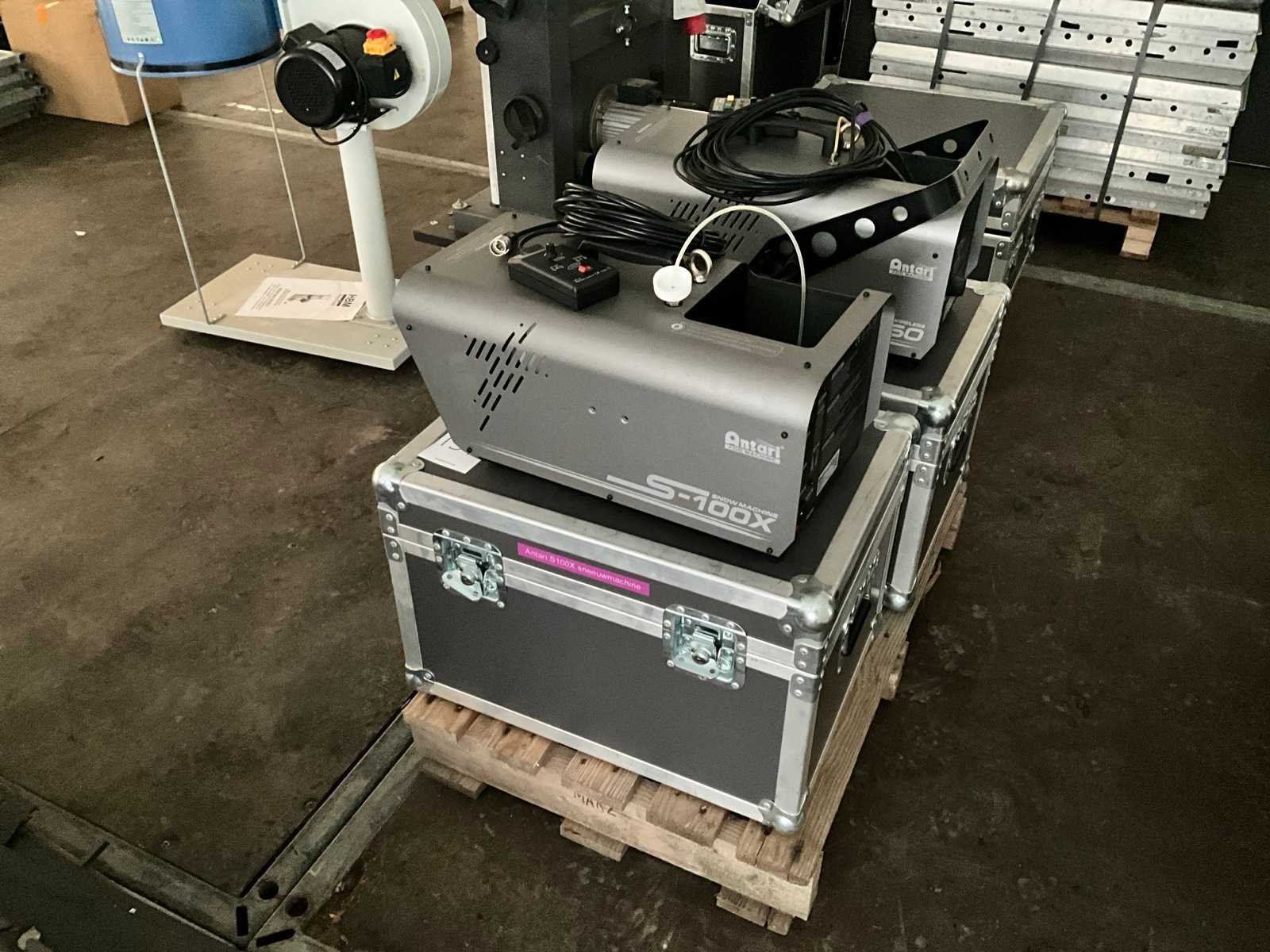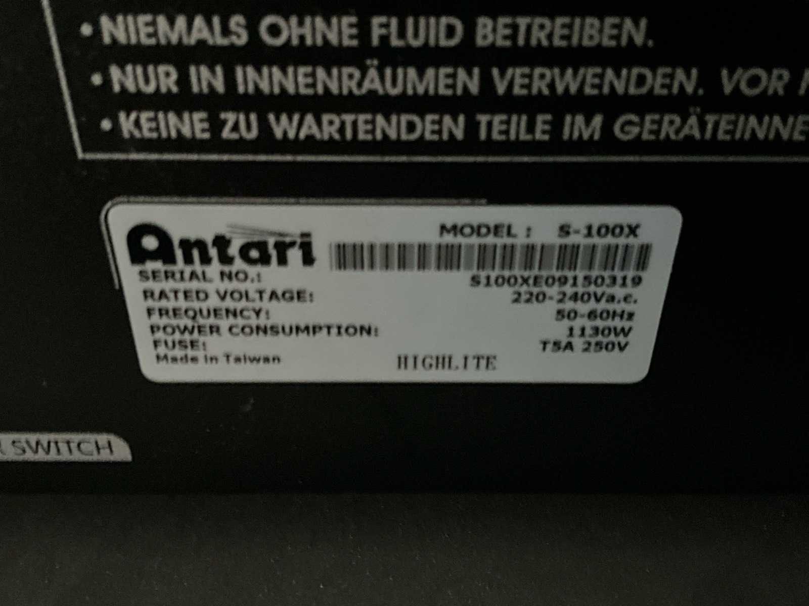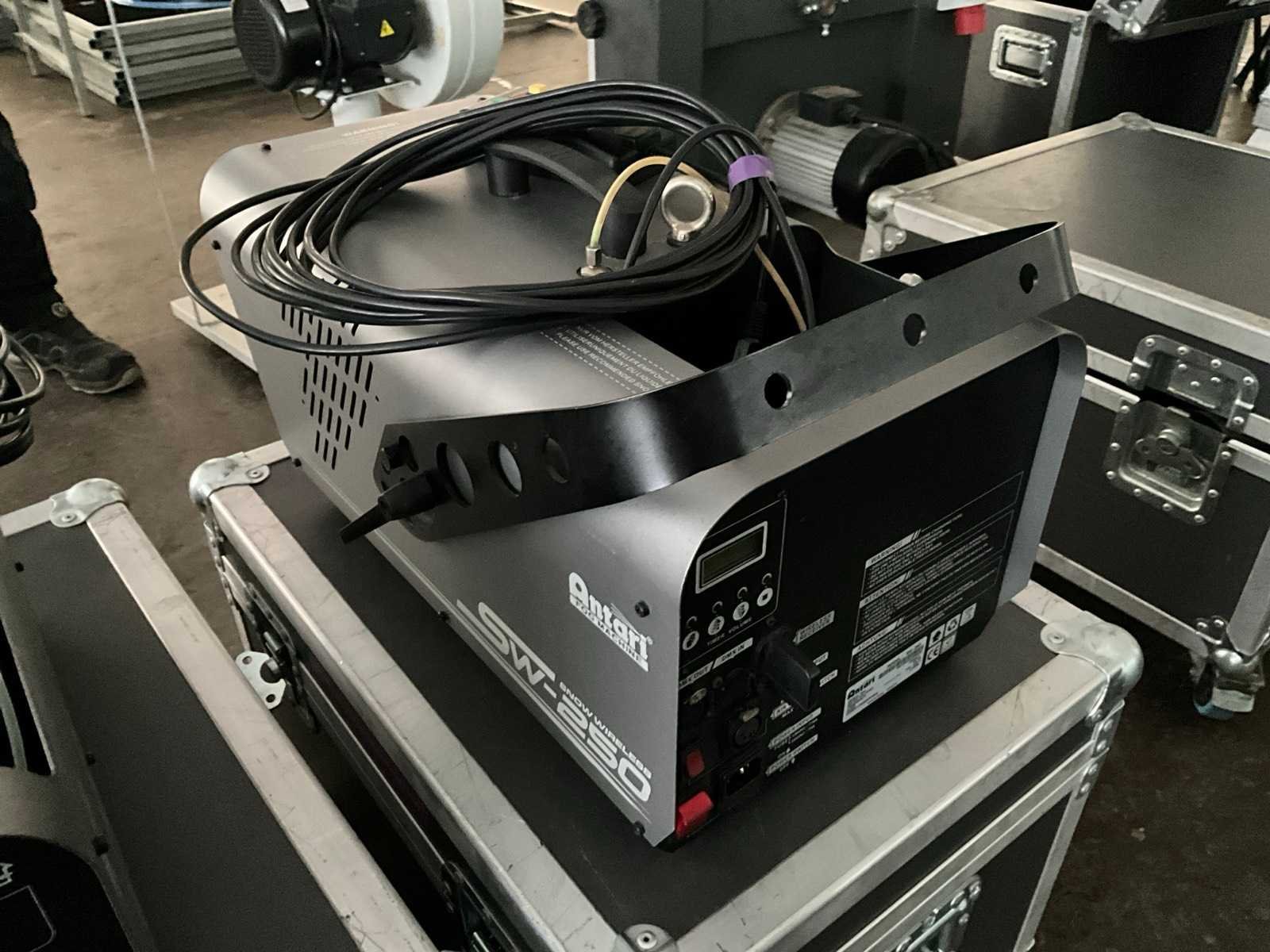 Bestaan uit type S-100X en SW-250; voorzien van flightcase afmeting 60x44x39 cm Merk: Antari Met flightcase: true Aansluiting: 230V