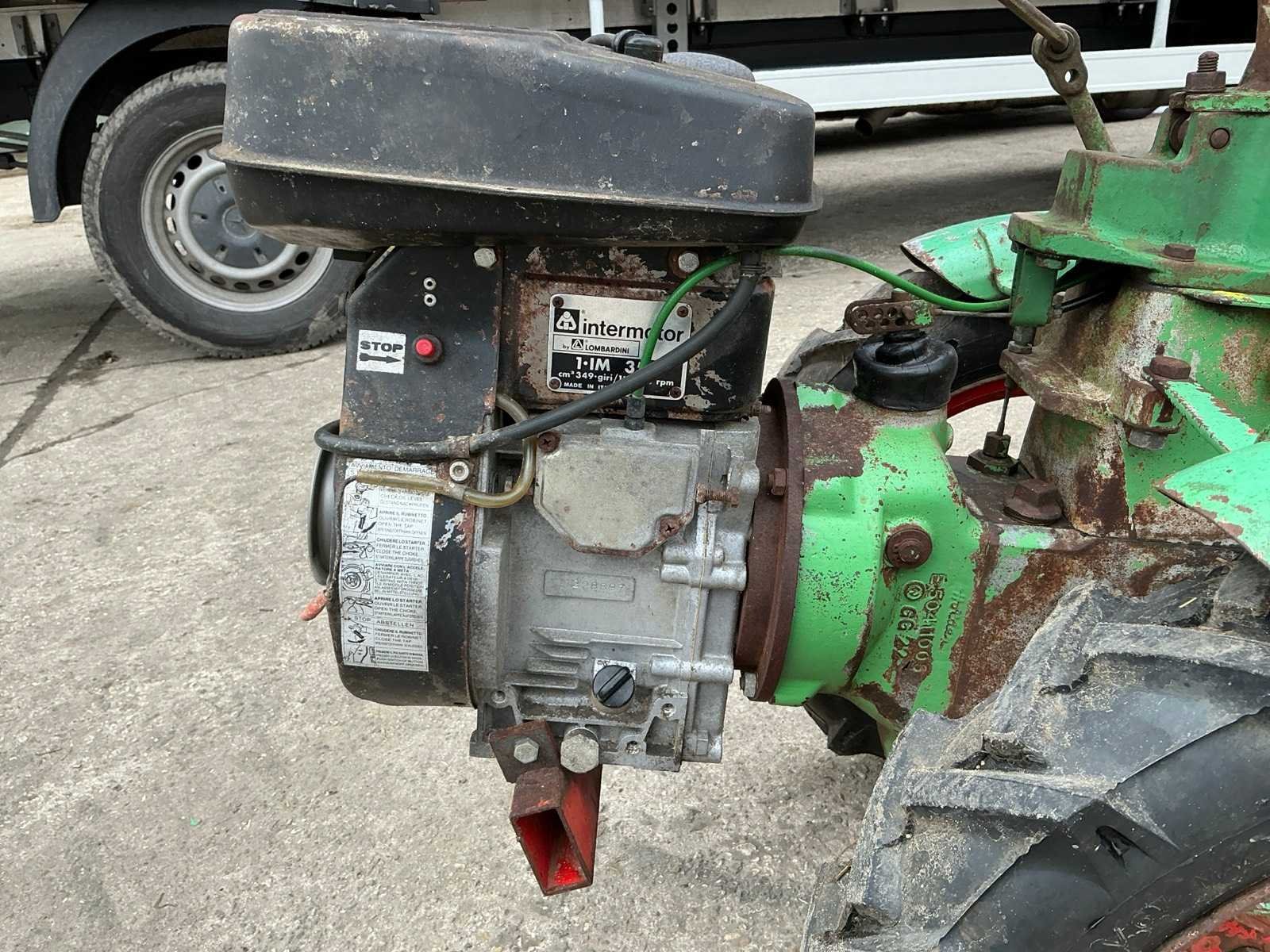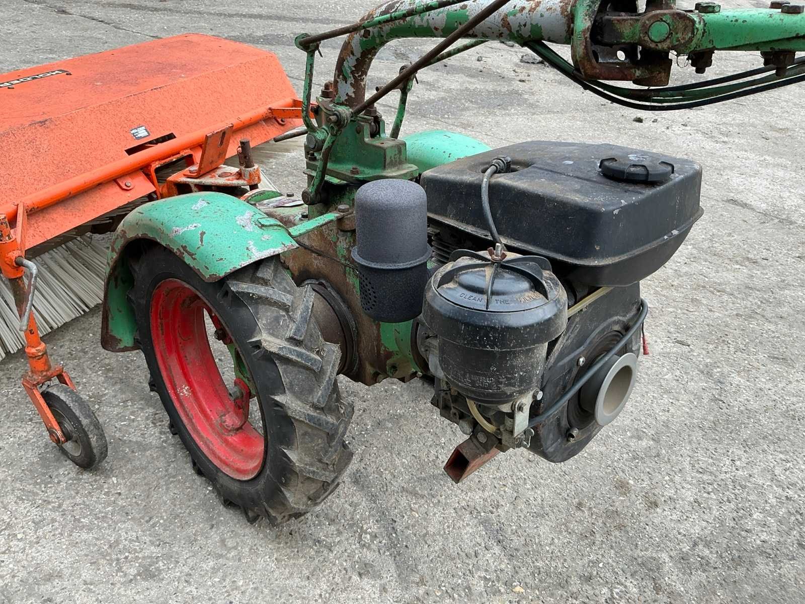 Intermotor. Bezem zwenkbaar, handvat zwenkbaar. Vooruit en achteruit. 3 versnellingen Merk: Holder Type: E6G Bouwjaar: 1974 Serienummer: 34189 Brandstofmotor aangedreven: true Werkbreedte: 1200mm Totale afmeting L: 2000mm Totale afmeting Breedte: 1200mm Totale afmeting Hoogte: 1200mm