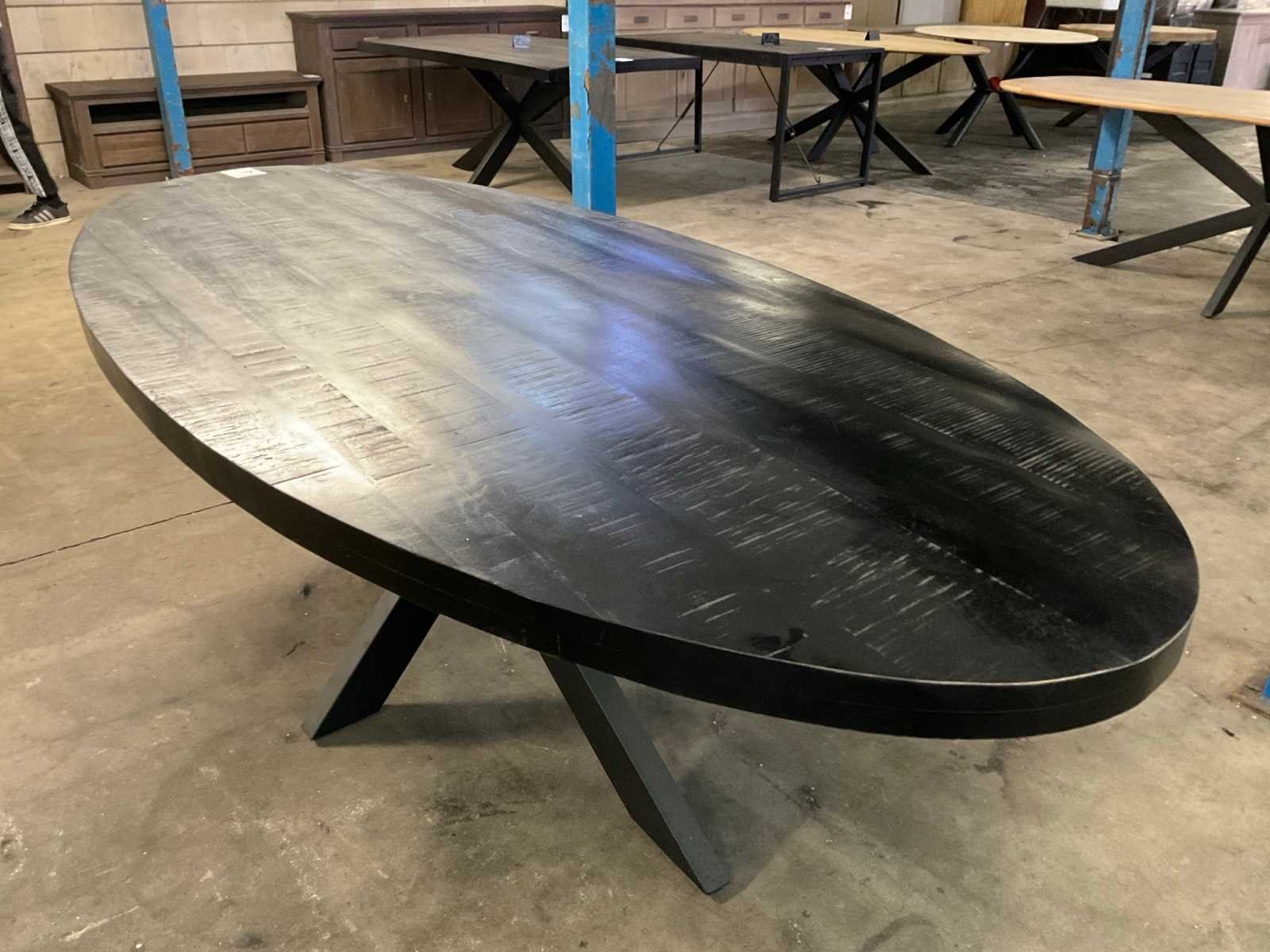 Vorm: Ovaal Kleur: Zwart Lengte: 240cm Breedte: 110cm Hoogte: 78cm Materiaal: Hout/metaal