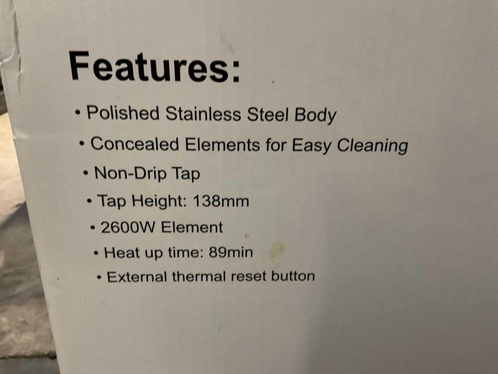 Inhoud: 40ltr, taphoogte 138mm, non-drip tap, 2600W Merk: Buffalo Totale afmeting L: 40cm Totale afmeting Breedte: 40cm Totale afmeting Hoogte: 63cm Rvs: true Vrijstaand: true Aansluiting: 230V Eigen gewicht: 5kg