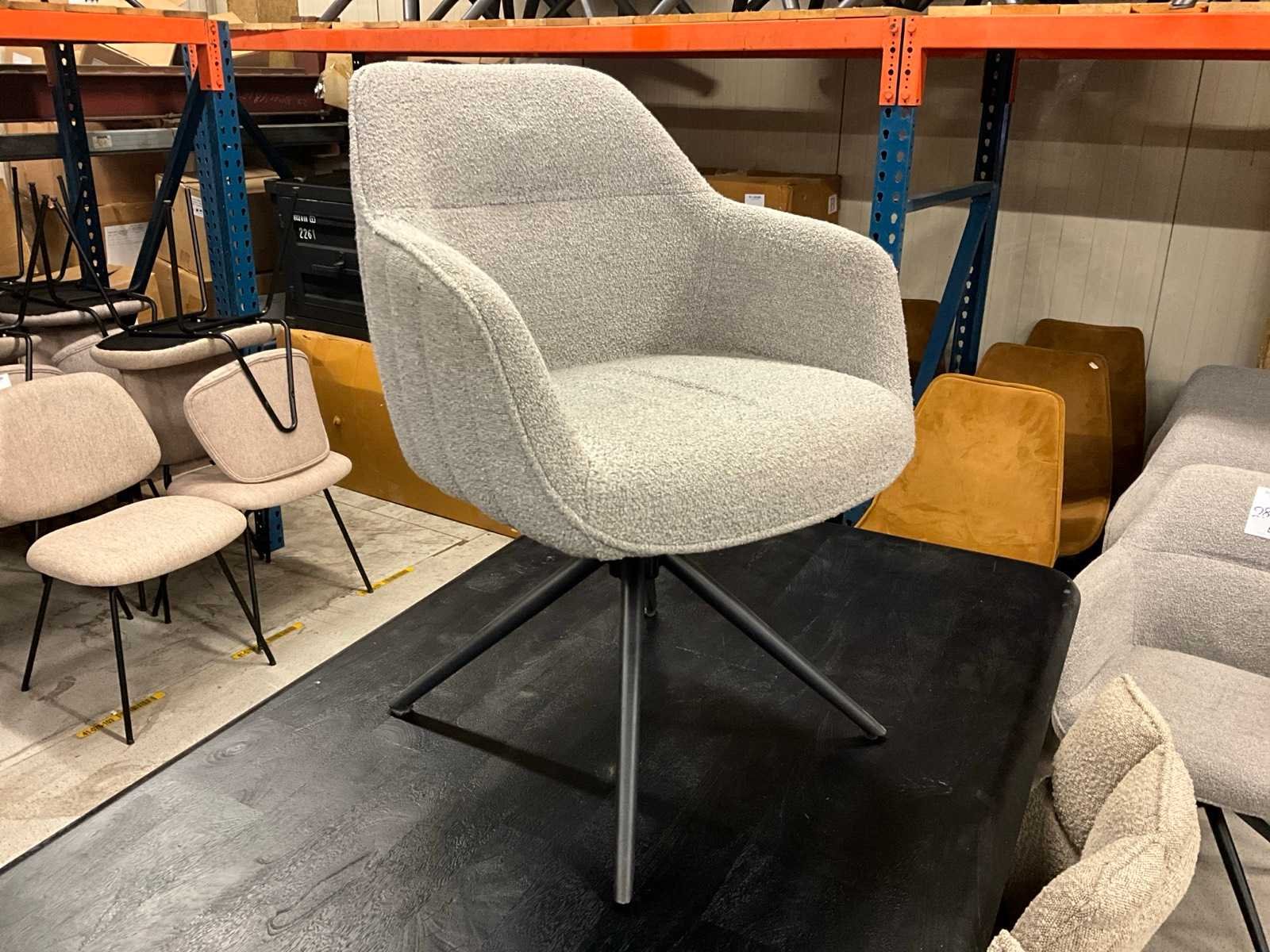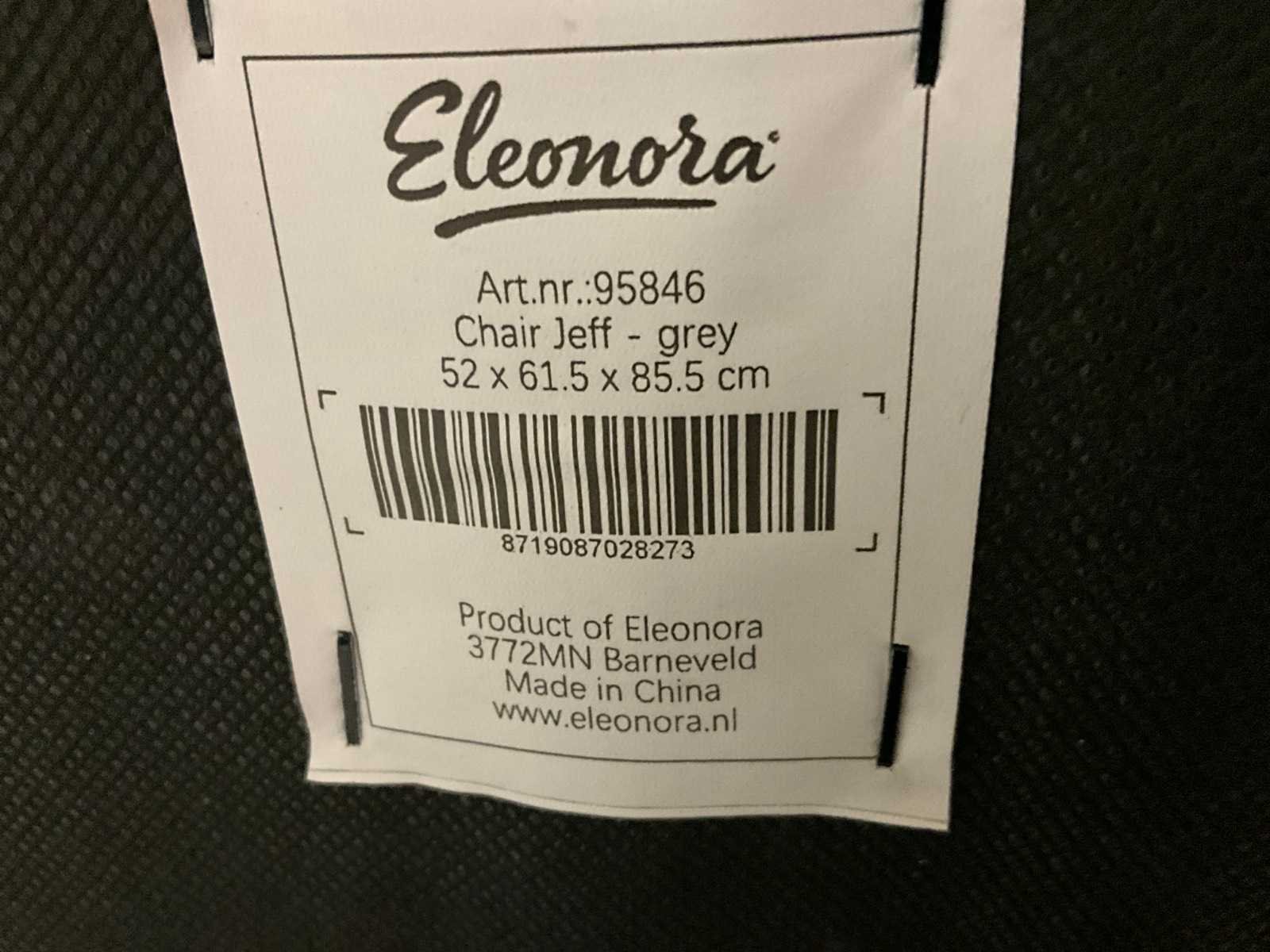 Merk: Eleanore Model: Jeff Kleur: Grijs Lengte: 60cm Breedte: 58cm Hoogte: 84cm Zithoogte: 50cm Diepte: 44cm