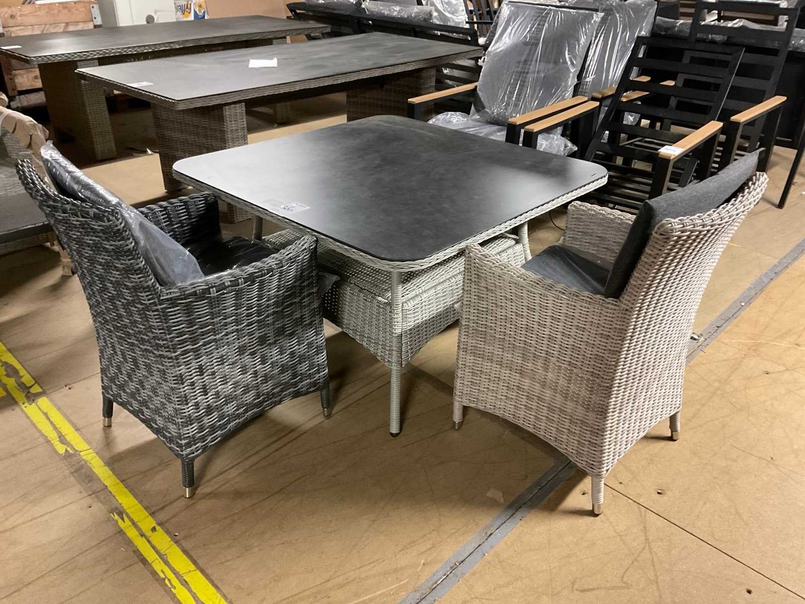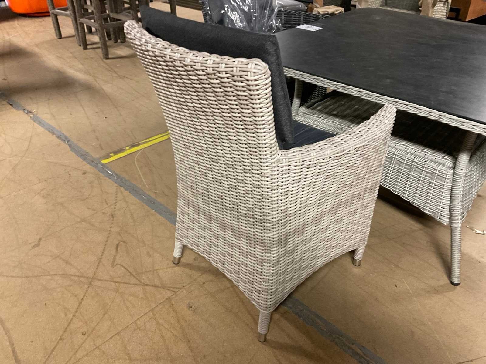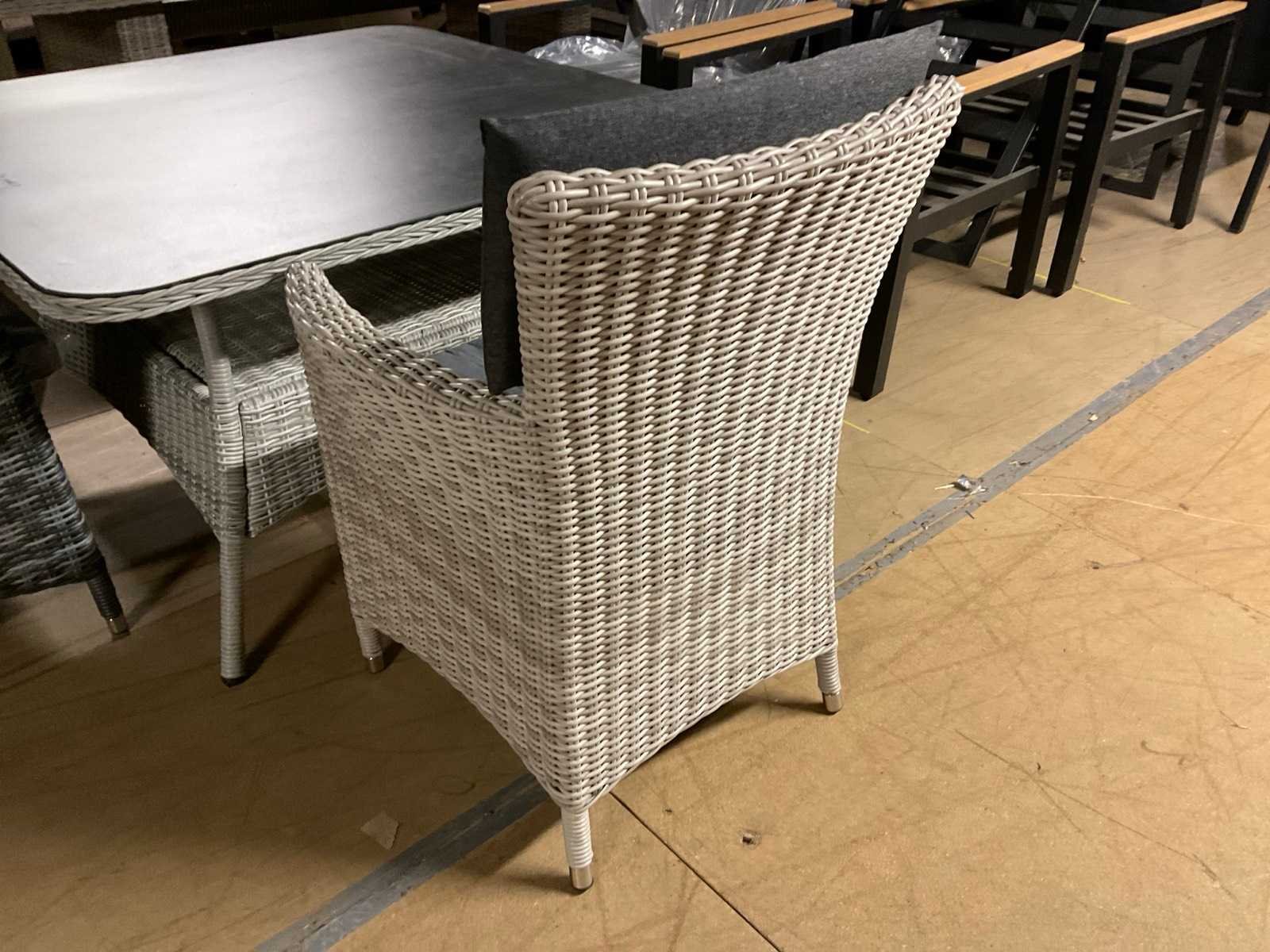 Afmeting tafel lxbxh 115x115x67cm, afmeting stoel bxdxh 61x60x87cm Kussens: true Vorm: Vierkant Stoelen: 2 Kleur: Beige Materiaal: Rotan/Glazen blad Diepte: 43 Zithoogte: 50