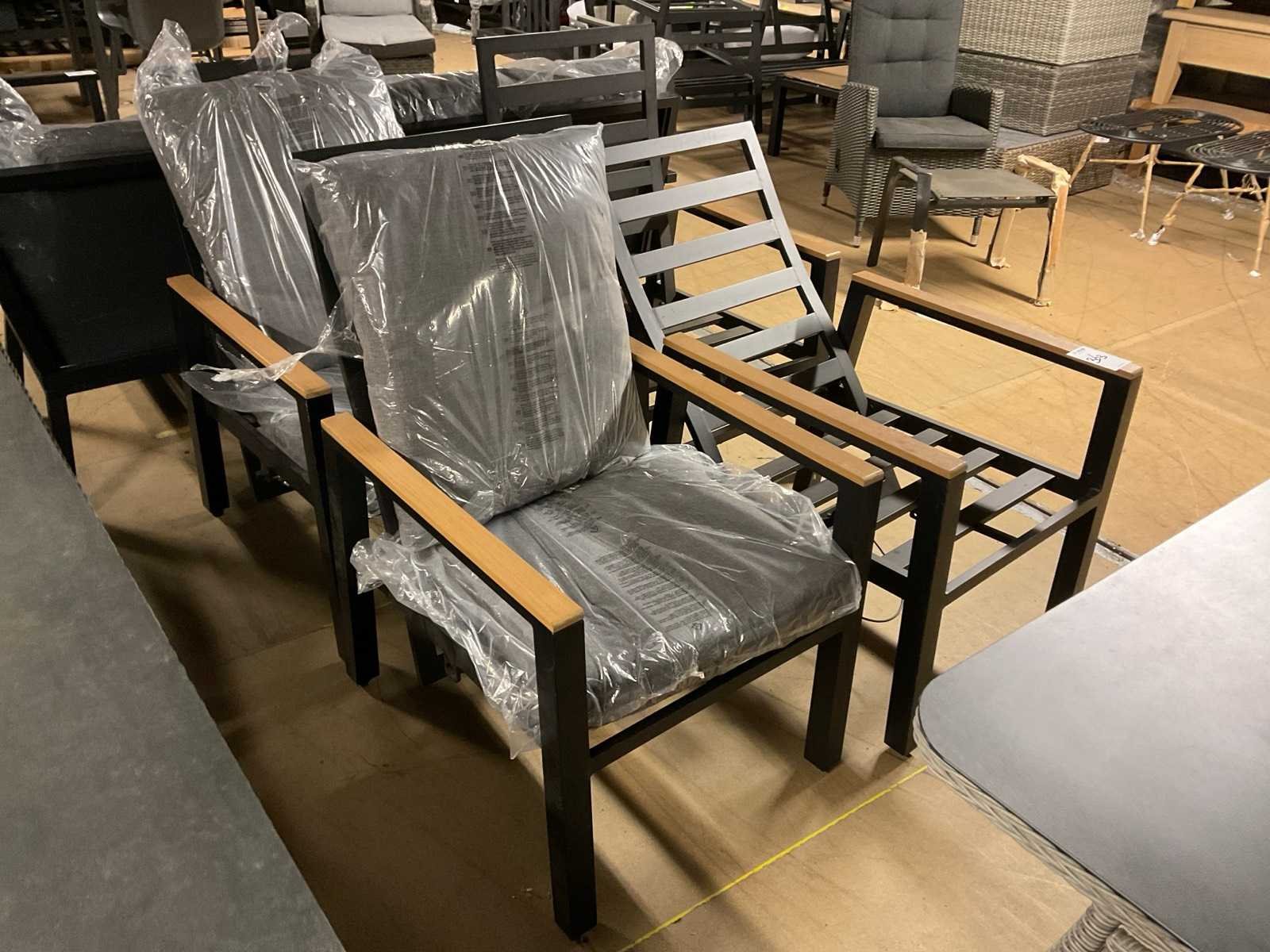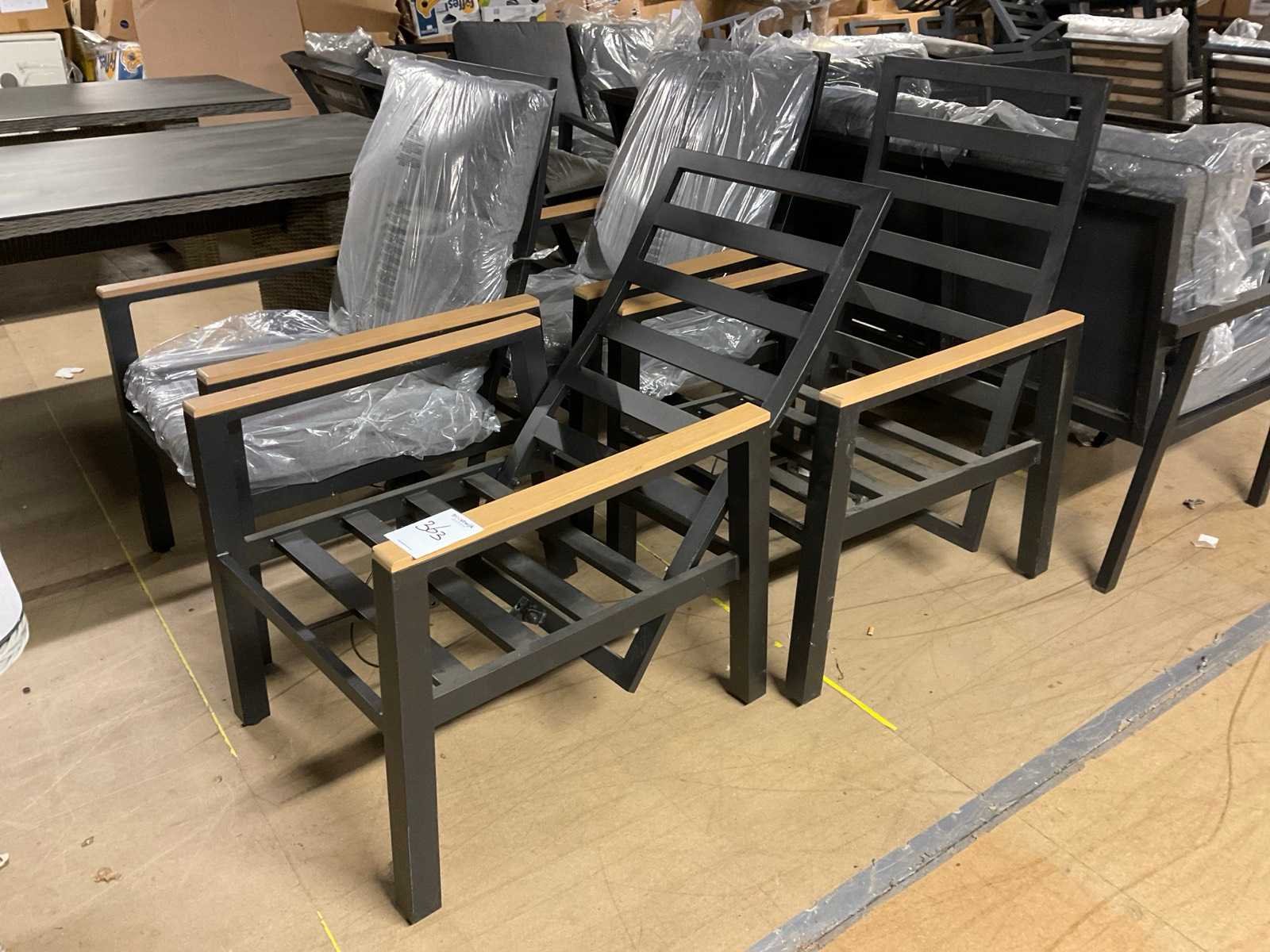 2x Voorzien van kussens, 1x rugleuning defect Verstelbaar: true Kleur: Zwart Lengte: 80cm Breedte: 66cm Hoogte: 107cm Zithoogte: 50 Materiaal: Metaal