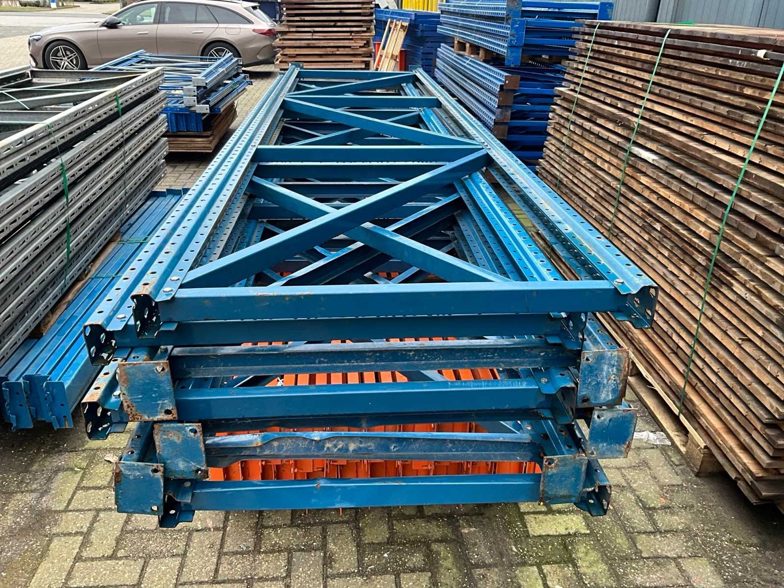 Sectie afm. b: 2700mm Sectie diepte: 900mm Sectie afm. h: 3750mm Aantal staanders: 7 Aantal liggers: 41 Aantal legborden: 29 Demontabel: true Materiaal: Metaal