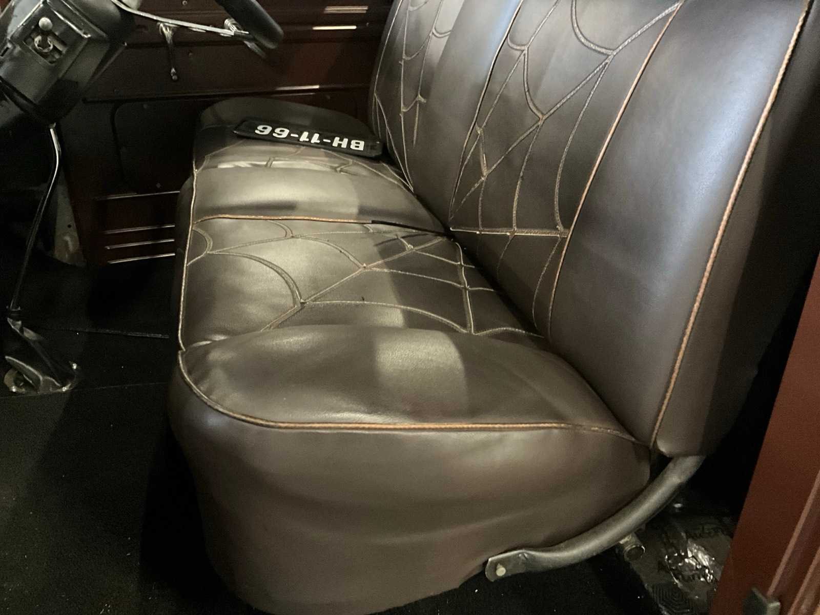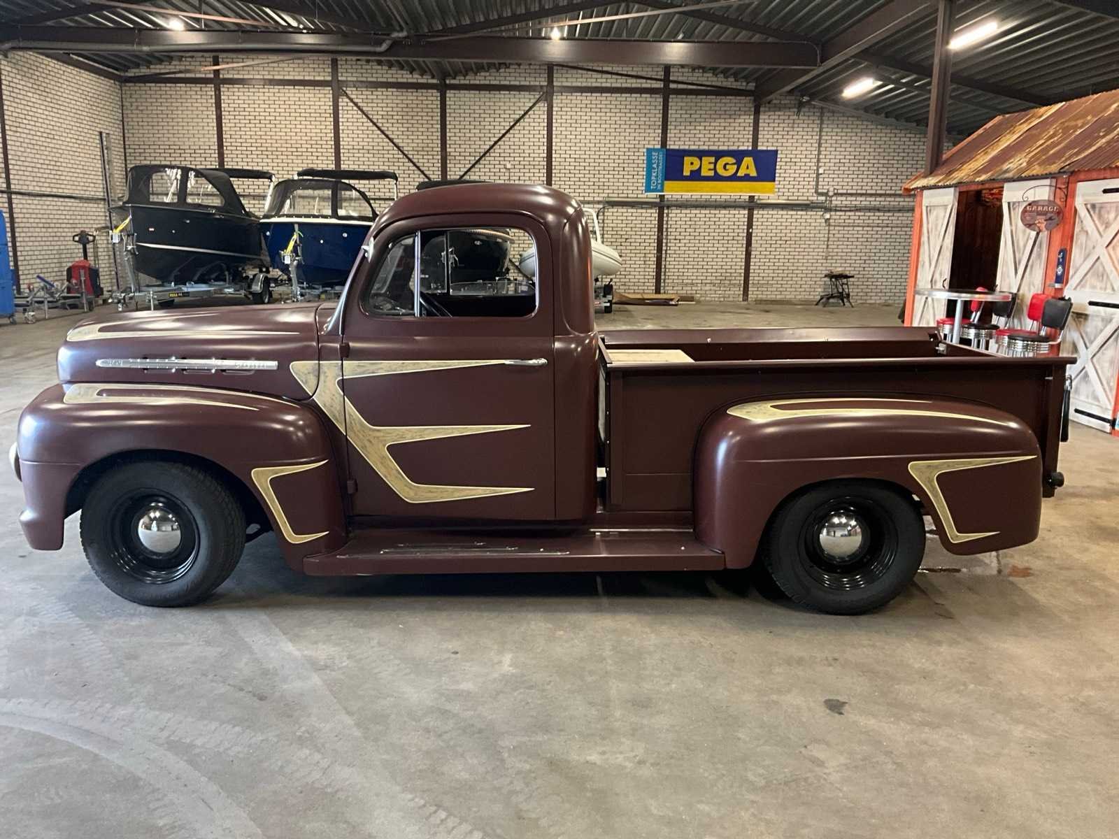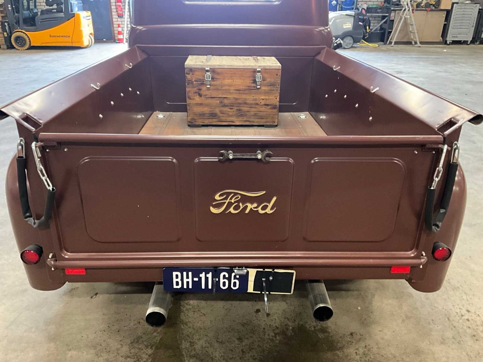 Ford F1 Shortbed Stepside uit 1948, uitgevoerd in bruin met custom paint en voorzien van een 350ci (5.7L) V8 motor gekoppeld aan een TH-350 automaat. De truck is voorzien van een Camaro voorwielophanging met verstelbare schroefset en schijfremmen voor, een 10-bouts GM-achteras met trommelremmen achter. Stuurbekrachtiging en een kantelbare stuurkolom. Het interieur is uitgerust met een Lokar vloerpook en Dolphin custom meters. Voorzien van 15 inch zwarte Smoothie velgen met chromen naafkappen, Kenteken: BH-11-66 Merk: Ford Type: F-1 Stepside Shortbed V8 AUT Bouwjaar: 1948 Chassisnummer: 87hc36475 Tellerstand niet afleesbaar: true Brandstof: benzine Datum eerste toelating: 1948-07-01 Nationaliteit documenten: NL Carrosserie: Pick-uptruck Transmissie: Automatisch Vermogen (pk): 165 Vermogen (kW): 121kW Emissieklasse: 0 Aantal deuren: 2 Aantal zitplaatsen: 3 Stuurwiel: Links Velgmaat: 15 Aantal sleutels: 2 Startinformatie: Start en rijd Kleur: bruin Cilinderinhoud: 5657 Aantal cilinders: 8 Ledig gewicht: 1680 Self drive export possible : true