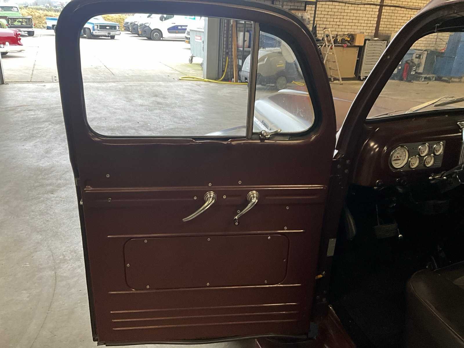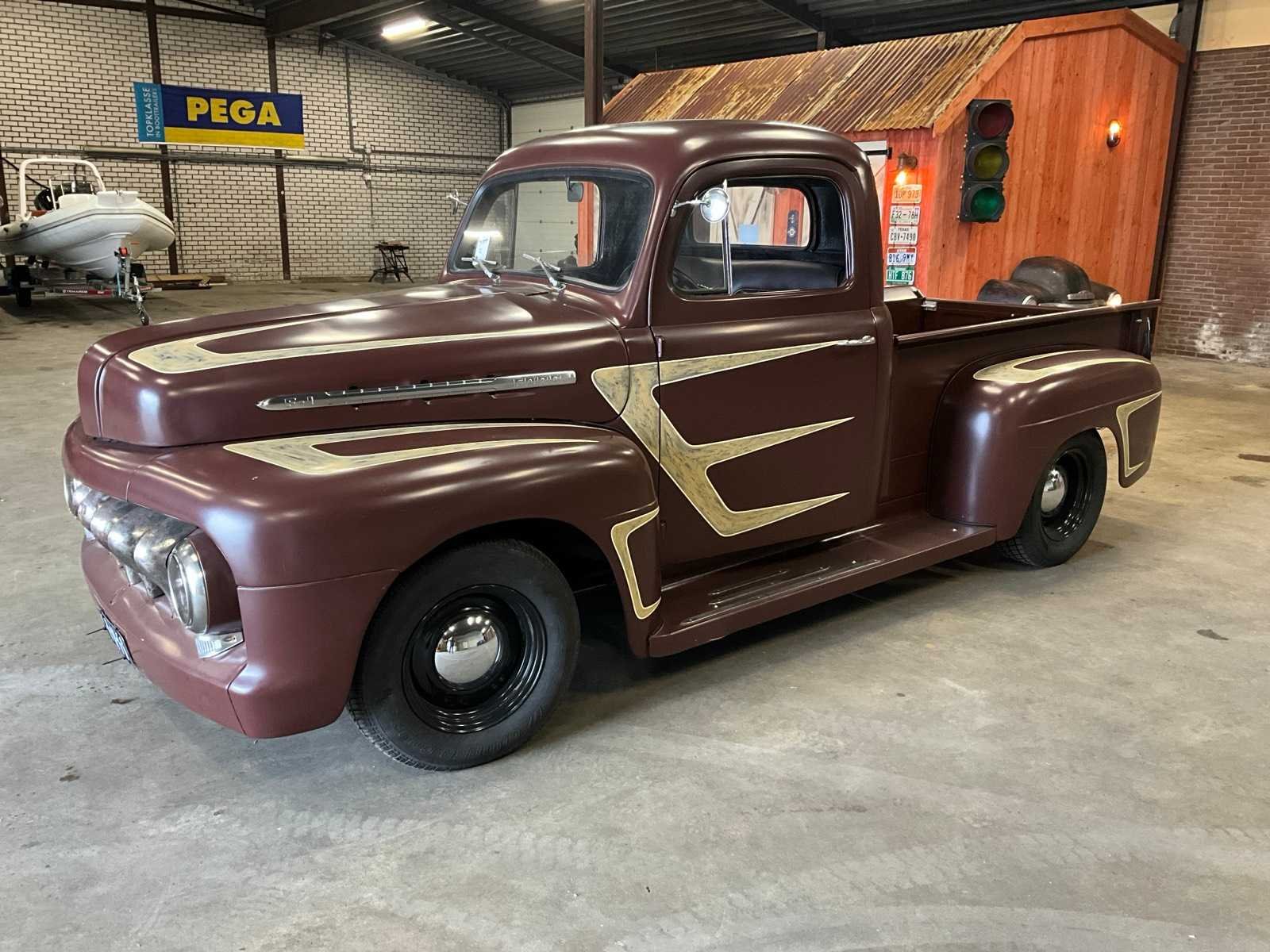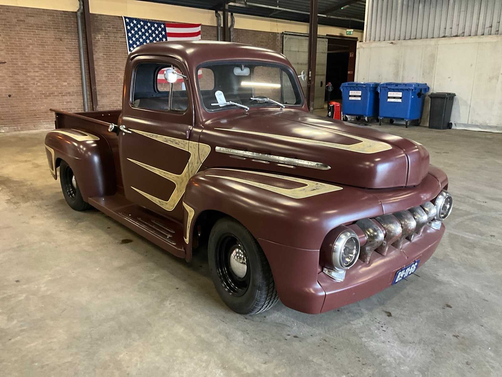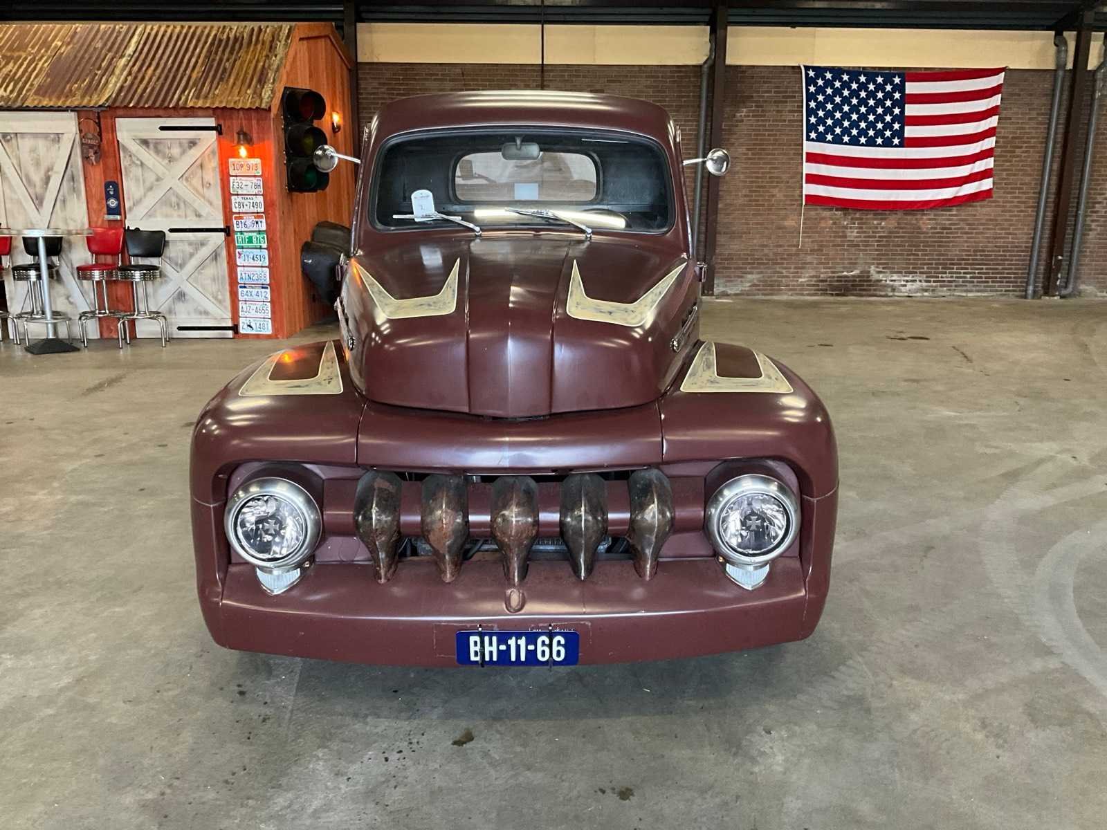 Ford F1 Shortbed Stepside uit 1948, uitgevoerd in bruin met custom paint en voorzien van een 350ci (5.7L) V8 motor gekoppeld aan een TH-350 automaat. De truck is voorzien van een Camaro voorwielophanging met verstelbare schroefset en schijfremmen voor, een 10-bouts GM-achteras met trommelremmen achter. Stuurbekrachtiging en een kantelbare stuurkolom. Het interieur is uitgerust met een Lokar vloerpook en Dolphin custom meters. Voorzien van 15 inch zwarte Smoothie velgen met chromen naafkappen, Kenteken: BH-11-66 Merk: Ford Type: F-1 Stepside Shortbed V8 AUT Bouwjaar: 1948 Chassisnummer: 87hc36475 Tellerstand niet afleesbaar: true Brandstof: benzine Datum eerste toelating: 1948-07-01 Nationaliteit documenten: NL Carrosserie: Pick-uptruck Transmissie: Automatisch Vermogen (pk): 165 Vermogen (kW): 121kW Emissieklasse: 0 Aantal deuren: 2 Aantal zitplaatsen: 3 Stuurwiel: Links Velgmaat: 15 Aantal sleutels: 2 Startinformatie: Start en rijd Kleur: bruin Cilinderinhoud: 5657 Aantal cilinders: 8 Ledig gewicht: 1680 Self drive export possible : true