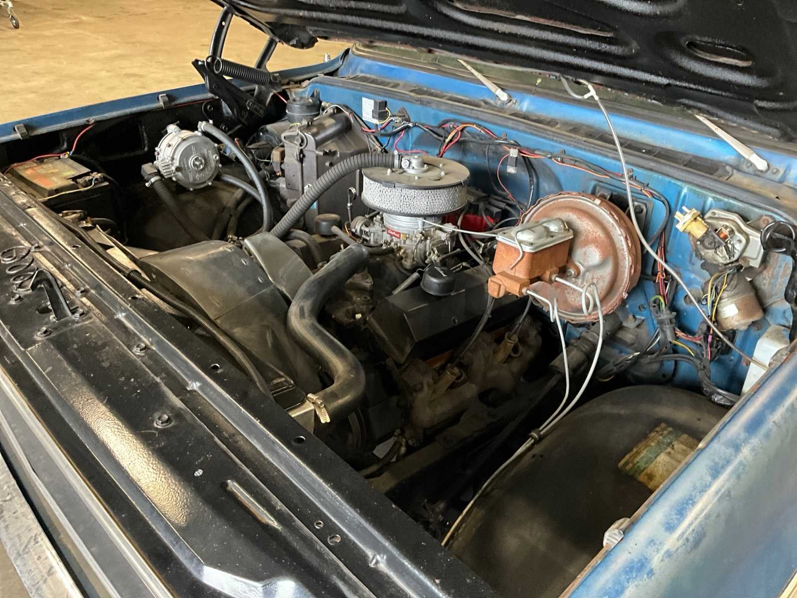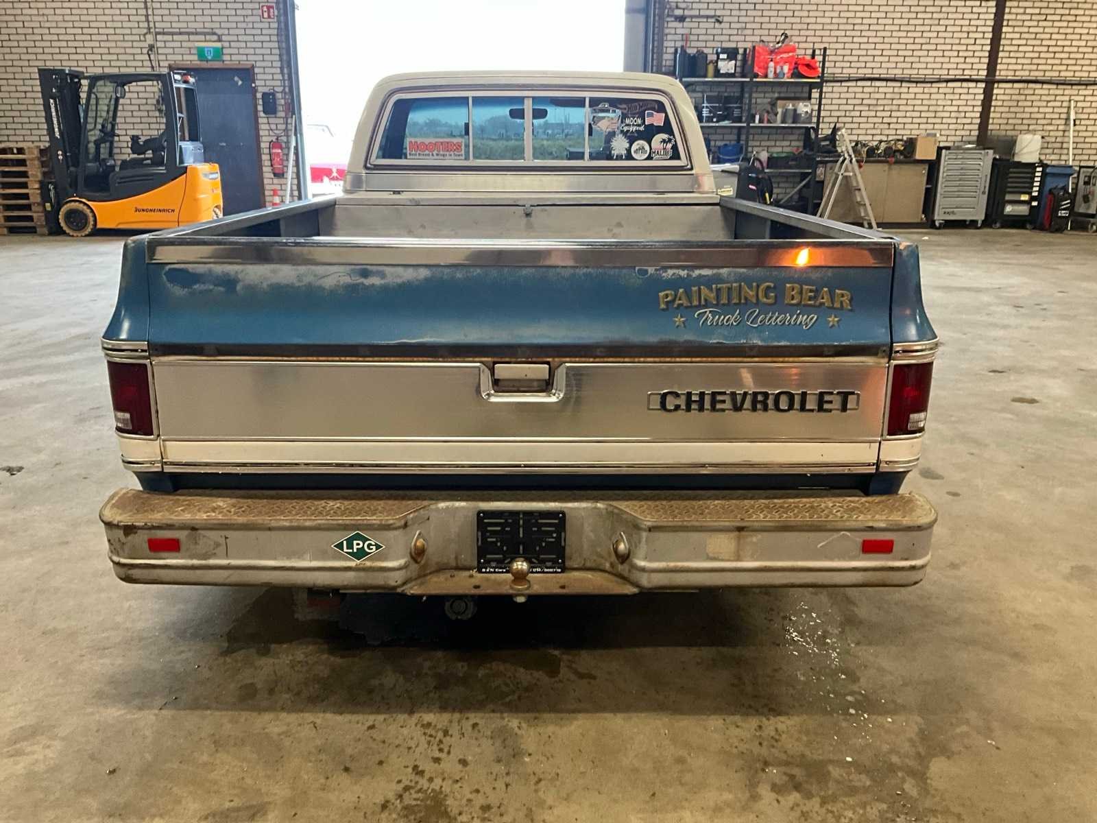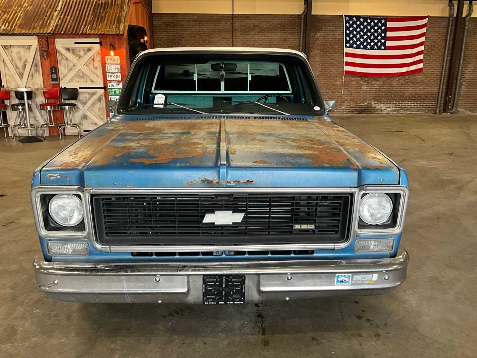 Klassieke truck voorzien van een GM 350 (5.7L) V8 motor, gekoppeld aan een automaat met overdrive. De truck is uitgerust met een net interieur, een RVS dubbele uitlaat en een nieuwe kabelboom. Het chassis is compleet behandeld en verkeert in verzorgde staat. Kenteken: 96-YD-53 Merk: Chevrolet Type: C10 Cheyenne V8 Bouwjaar: 1974 Chassisnummer: CCY144Z131948 Tellerstand niet afleesbaar: true Brandstof: benzine Gasinstallatie: true Datum eerste toelating: 1974-09-14 Datum eerste toelating (NL): 2022-06-07 Nationaliteit documenten: NL Kentekenpapieren compleet?: true Carrosserie: Pick-uptruck Transmissie: Automatisch Vermogen (pk): 174 Vermogen (kW): 128kW Emissieklasse: 0 Aantal deuren: 2 Aantal zitplaatsen: 3 Stuurwiel: Links Velgmaat: 15 Aantal sleutels: 2 Startinformatie: Start en rijd Kleur: blauw Cilinderinhoud: 5400 Aantal cilinders: 8 Ledig gewicht: 2046 Self drive export possible : true