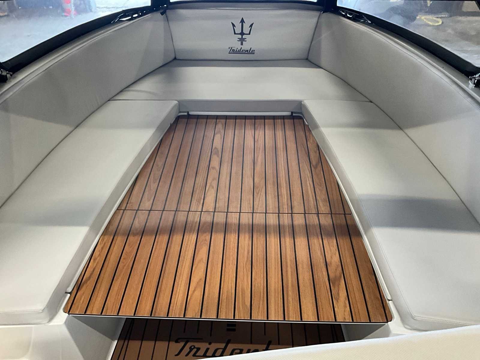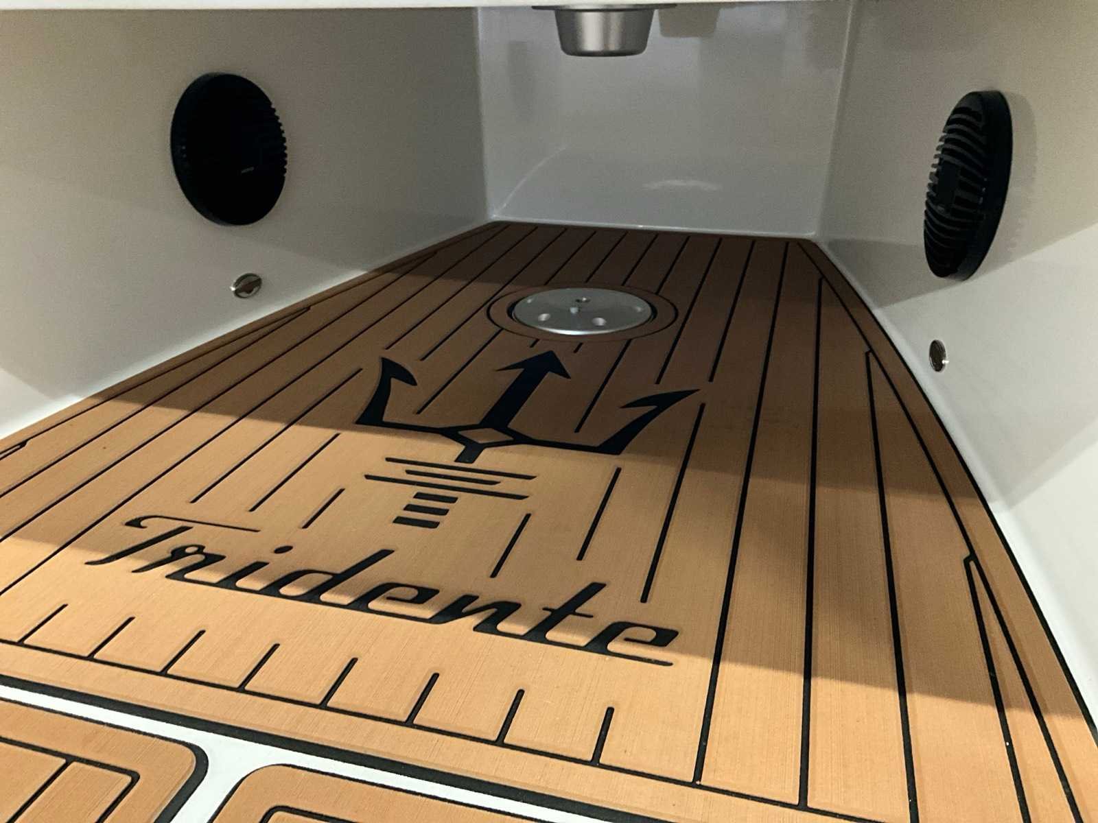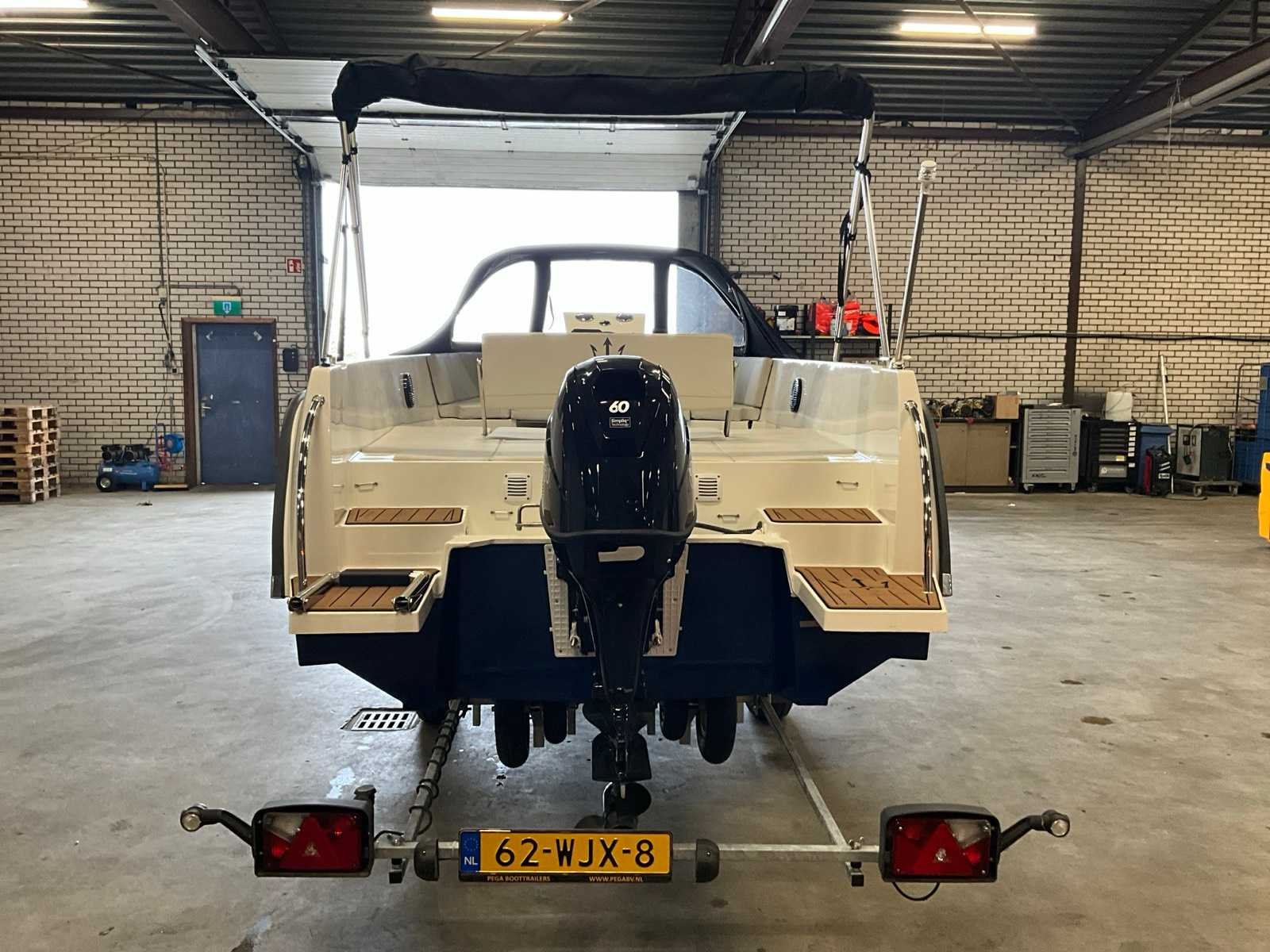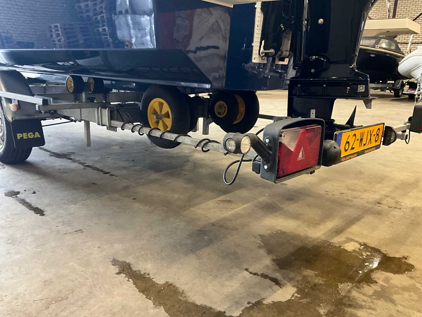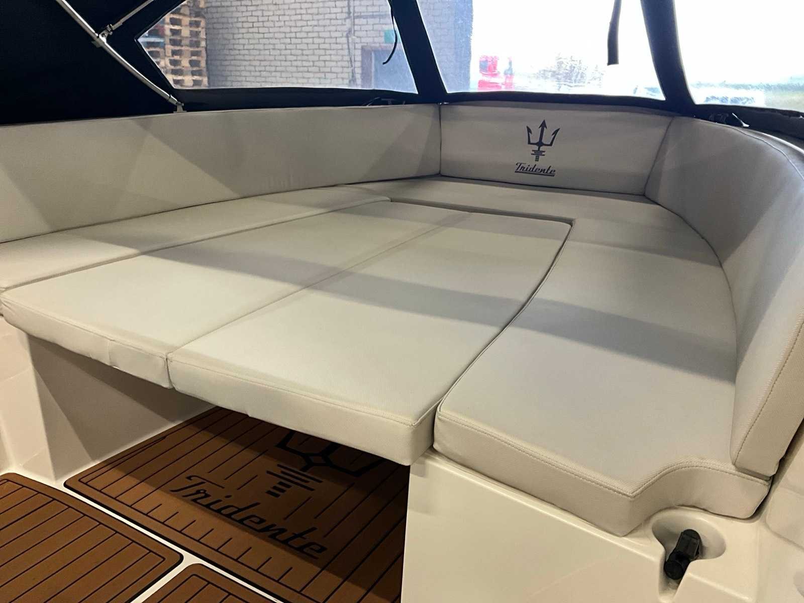 Complete set met biminitop, buiskap met afdekzeil, navigatieverlichting, toplicht, Nederlandse vlag, RVS kikkers, RVS zwemtrap en zwemplateau. Het interieur is praktisch ingericht met een loungegedeelte achter, uitneembare teaktafel, verstelbare rugleuningen, zonnedek, bekerhouders, kuipverlichting en diverse ruime opbergruimtes. Verder voorzien van een onderhoudsvriendelijke HPL teak vloer en zwemplateau, hoofdstroomschakelaar, diverse meters op het dashboard en een Hertz audiosysteem, op en inclusief Pega boottrailer. Merk: Tridente Type: 19S Rompmateriaal: Polyester Brandstof: Benzine Bouwjaar: 2025 Serienummer: NL-FYC T1911K122 Lengte over alles: 5.95m Breedte formaat: 2.35m Type motor: Tohatsu 60PK