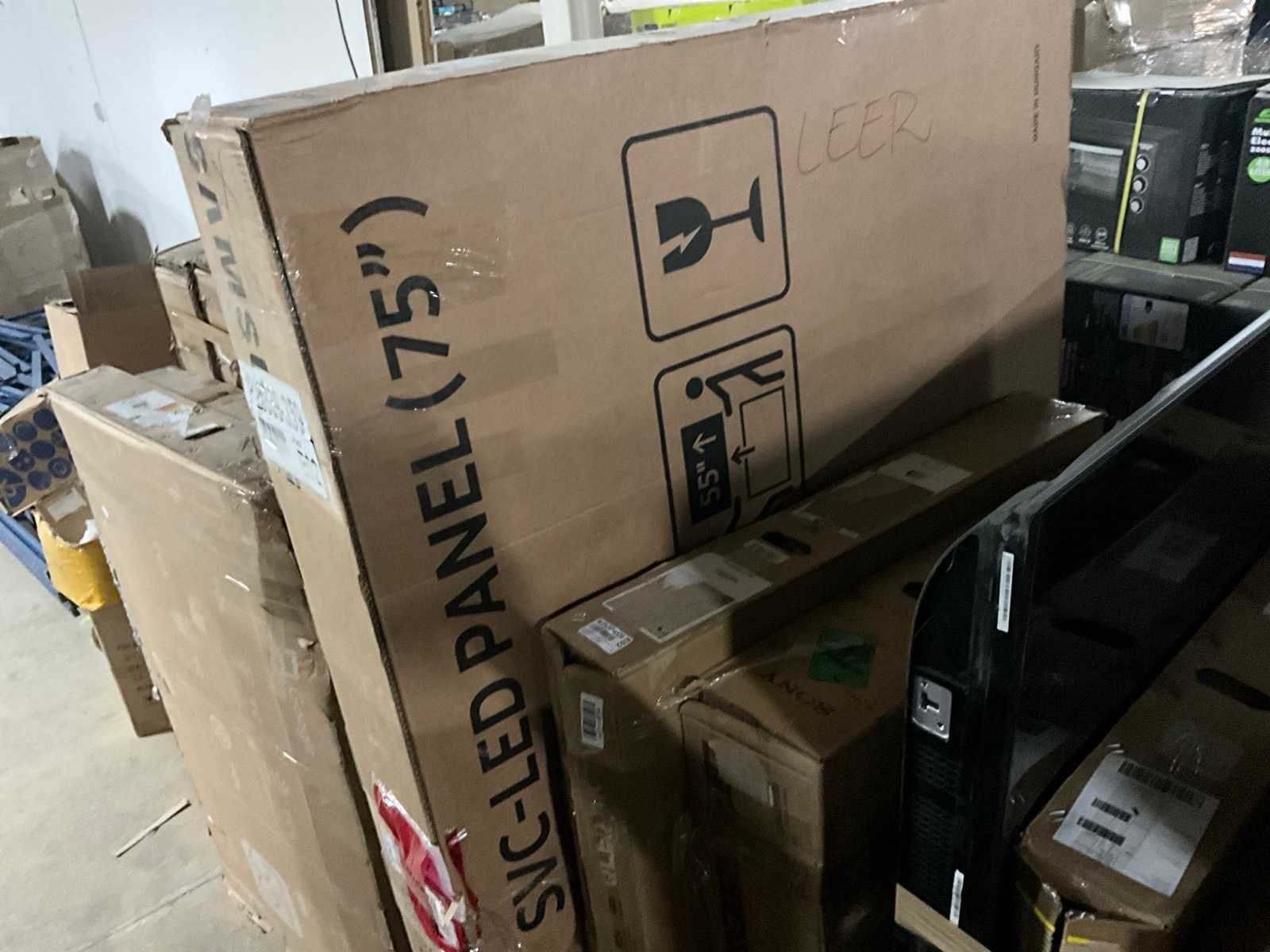 Bestaande uit circa 18x europallet, diverse merken en types waaronder: “Sony” type: Bravia 3 direct LED 85”