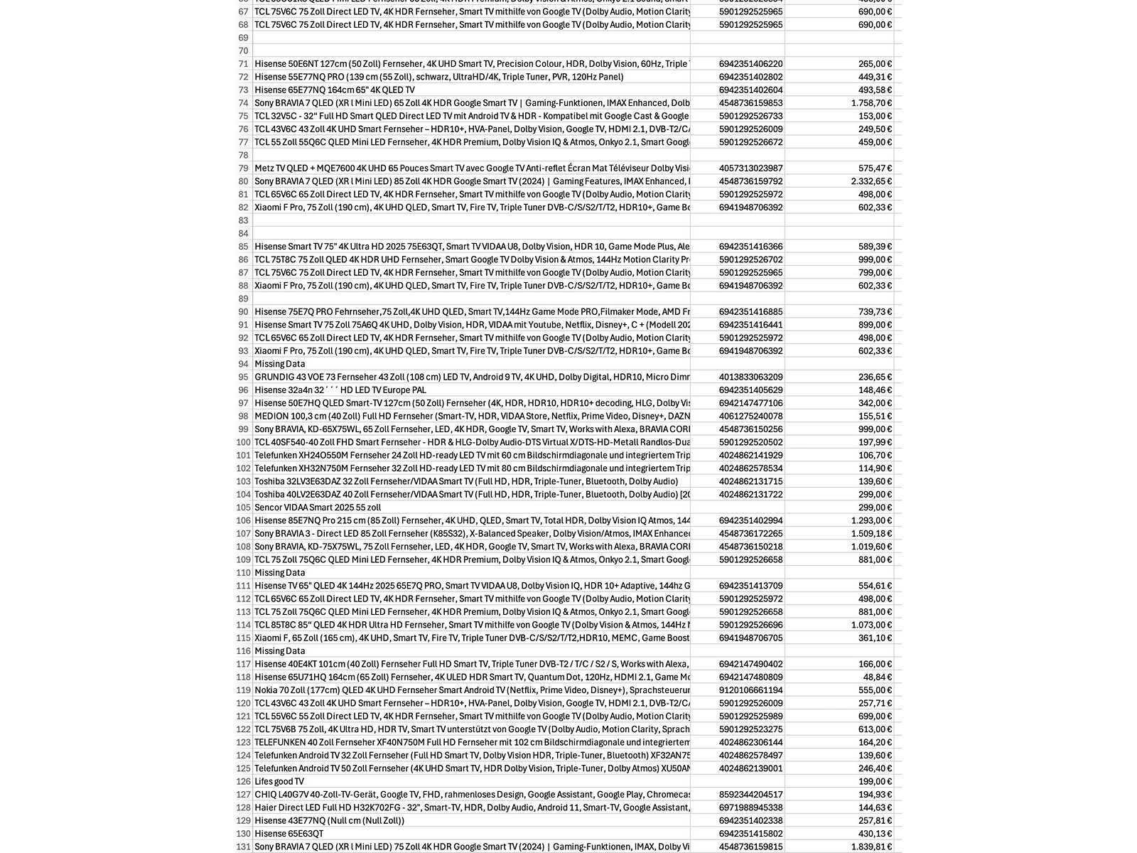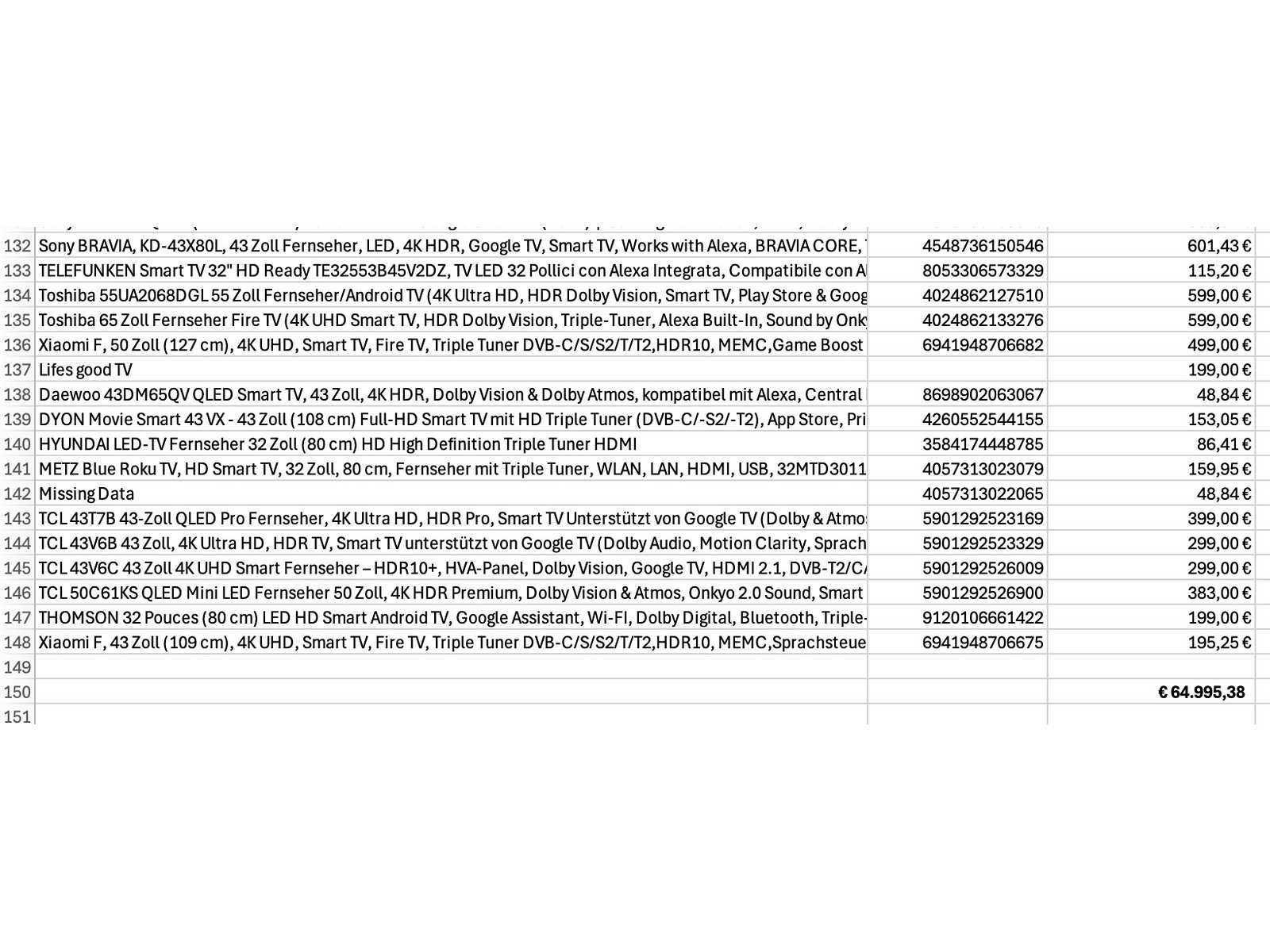Partij televisies (ca. 135x)