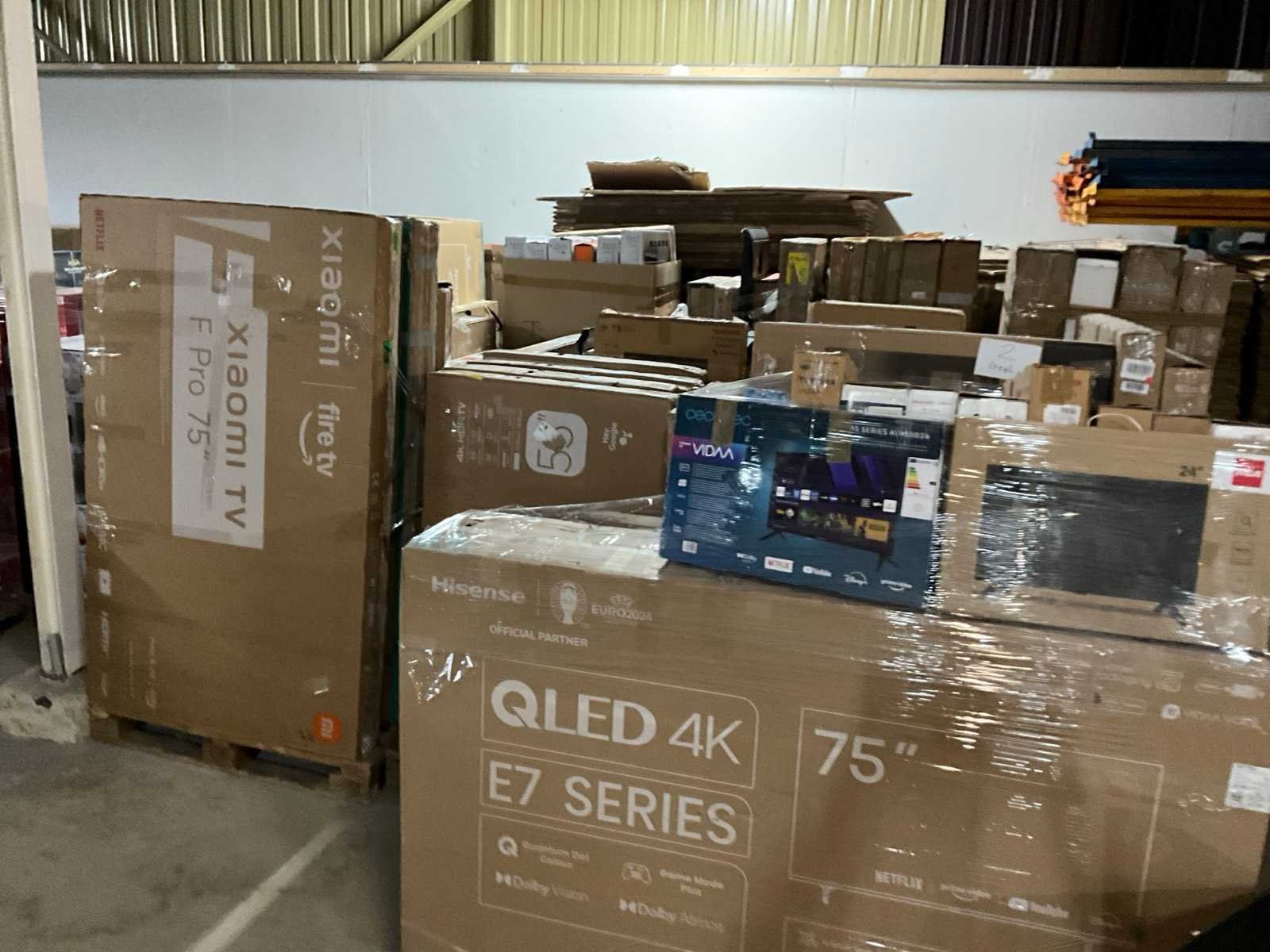 Bestaande uit circa 14x europallet, diverse merken en types waaronder: “Hisense” type: E7 series 4K 75”