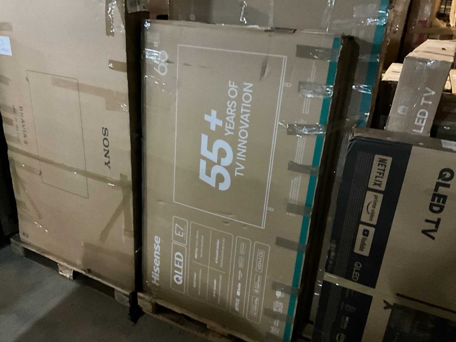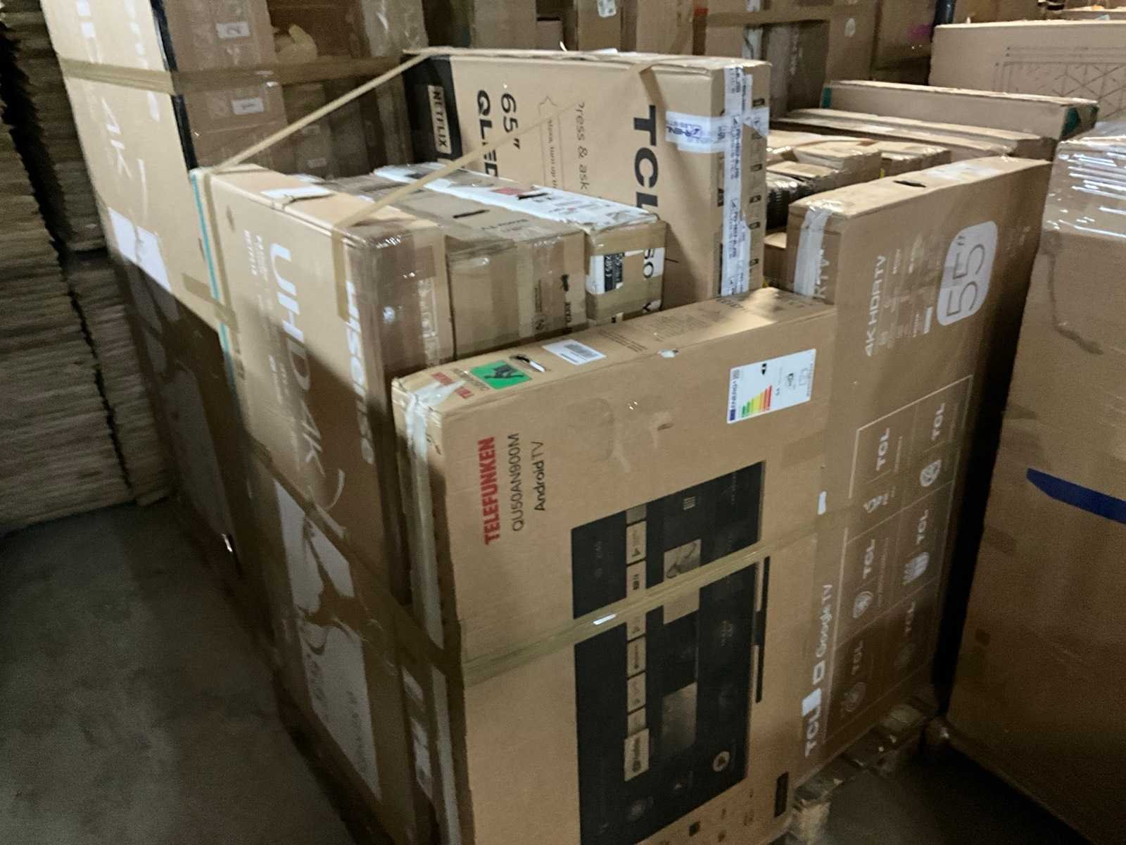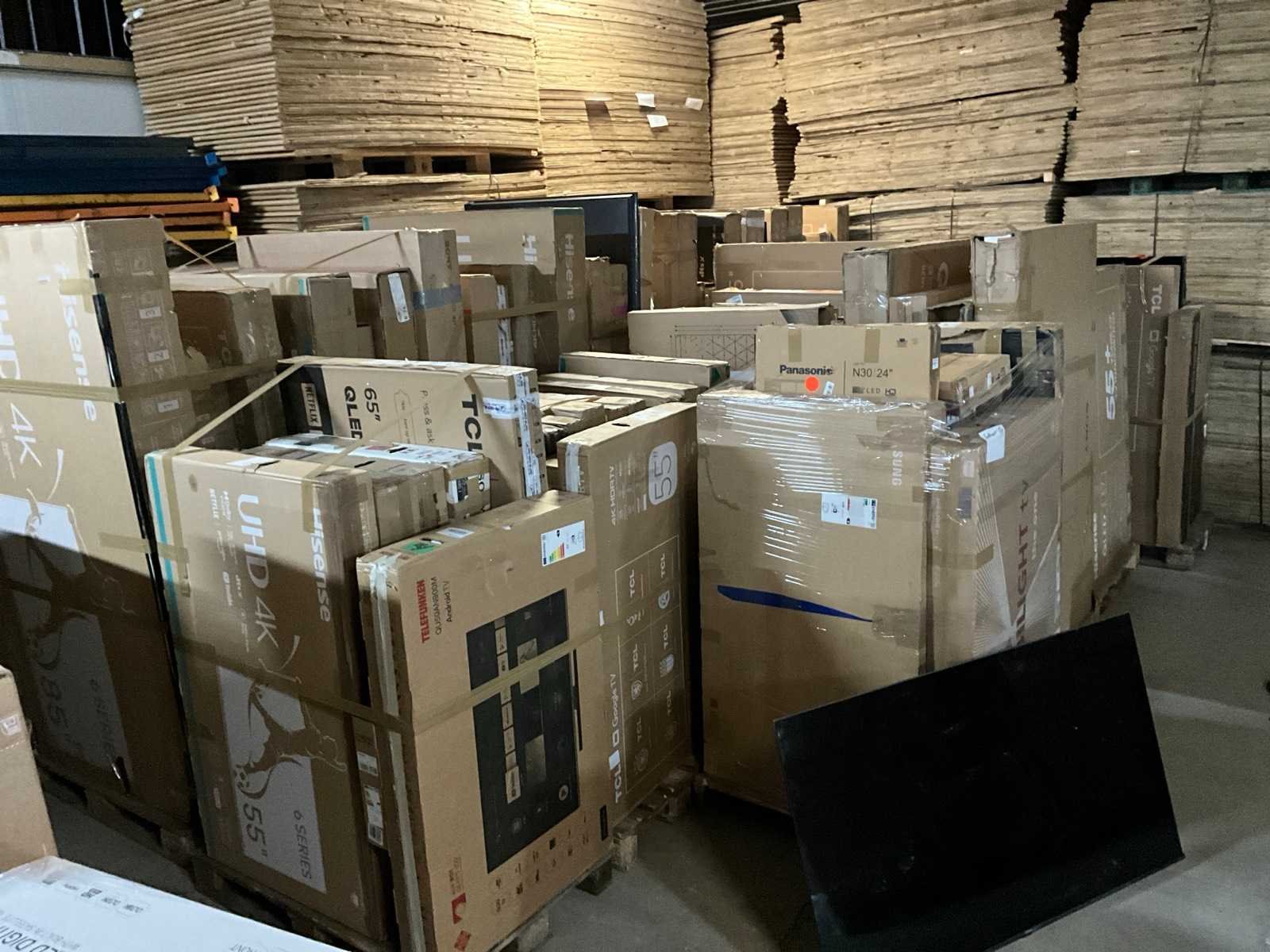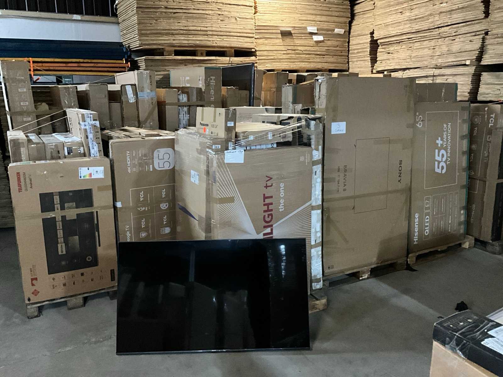 Bestaande uit 18x europallet, diverse merken en types waaronder: “Hisense” type: 6 series 4K 85”