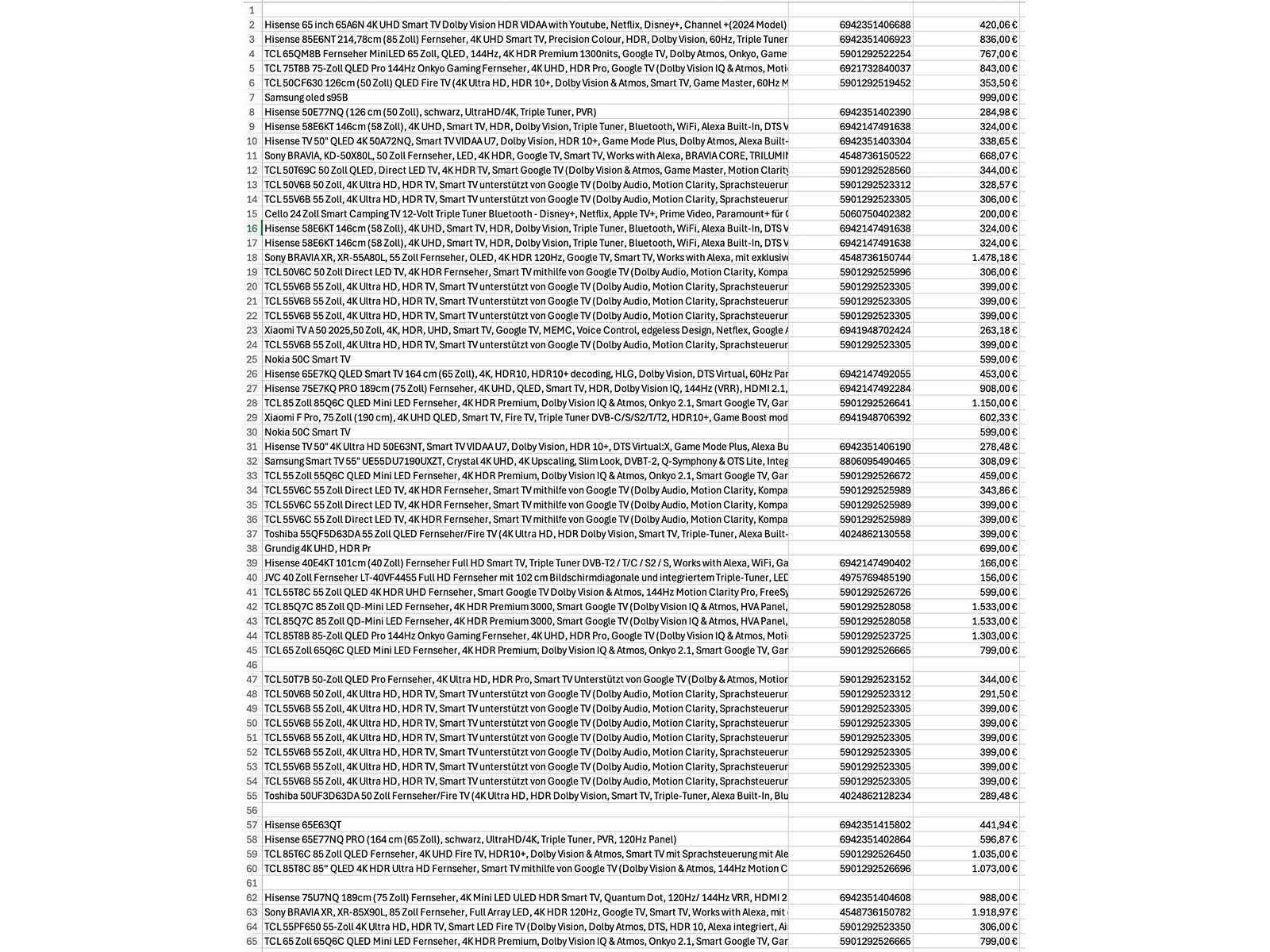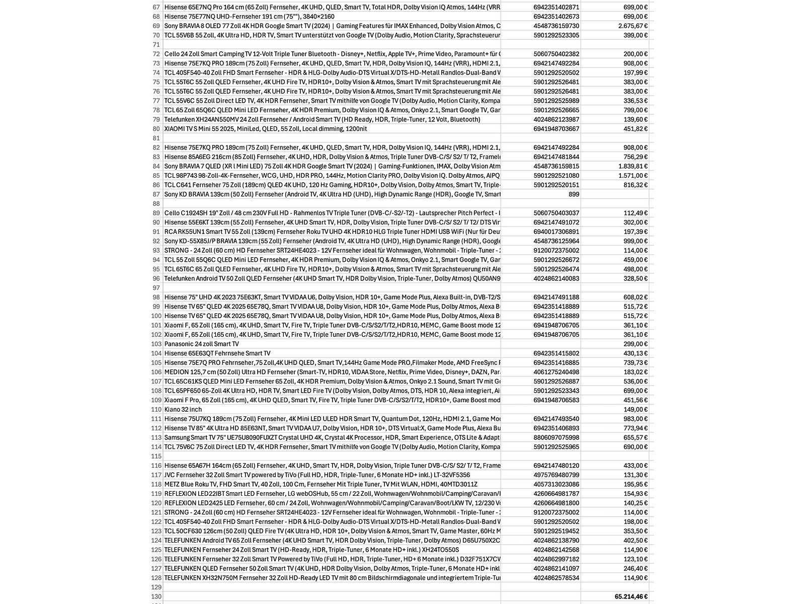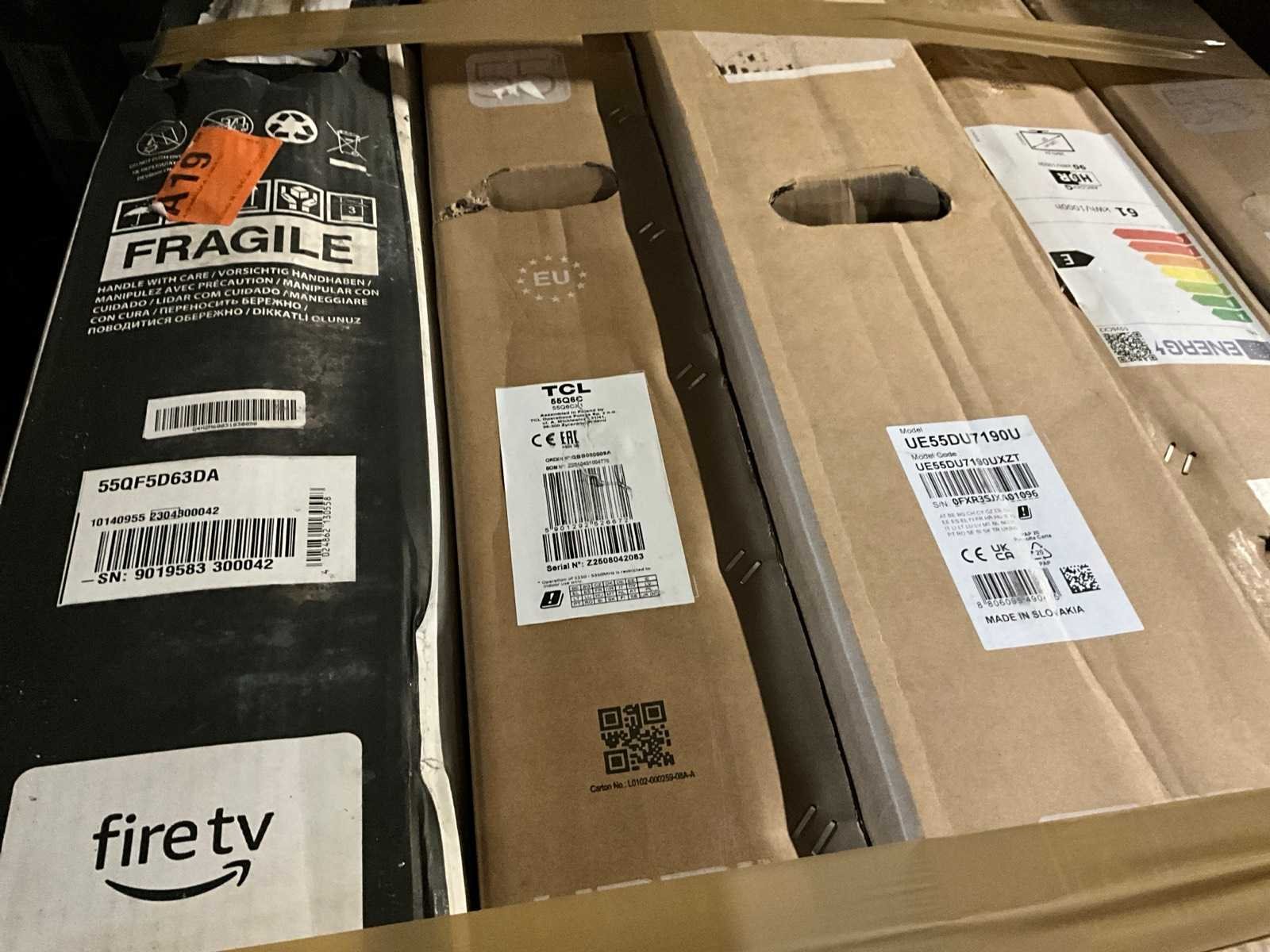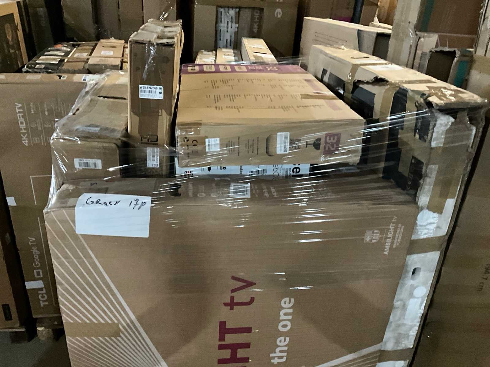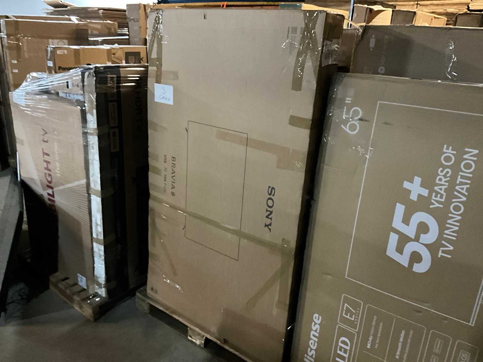 Bestaande uit 18x europallet, diverse merken en types waaronder: “Hisense” type: 6 series 4K 85”