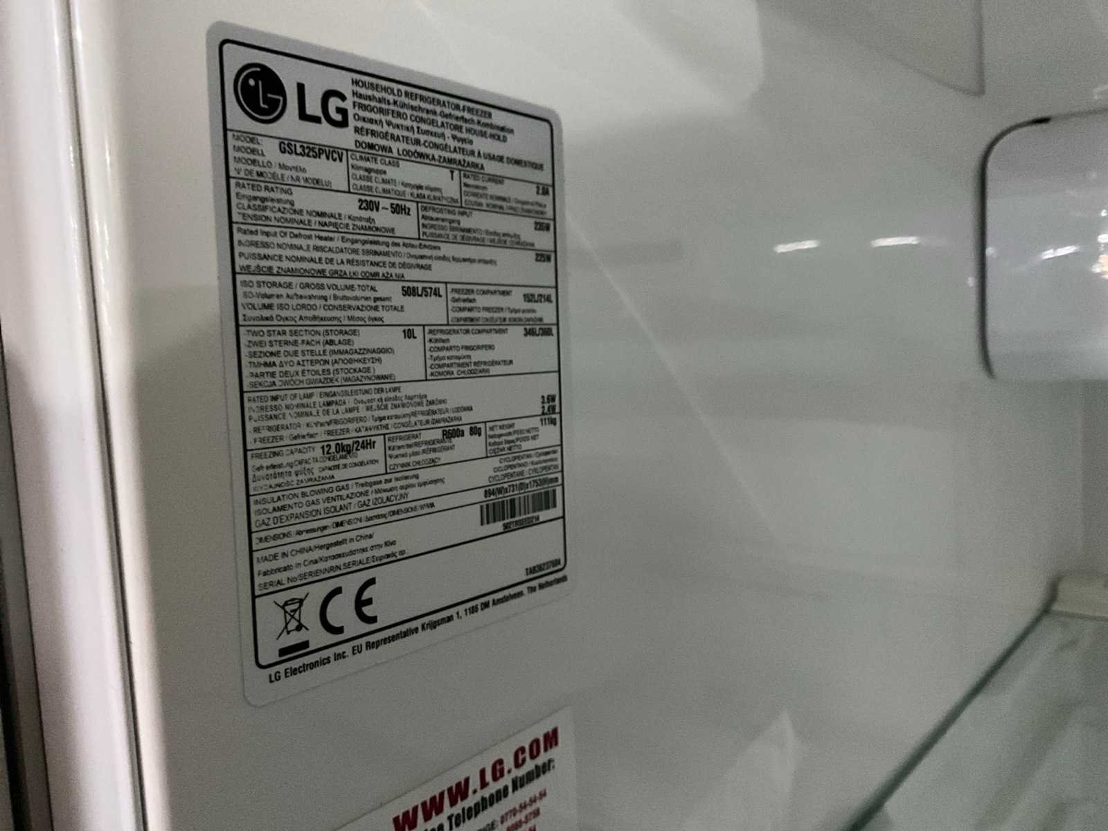 Merk: LG Type: GSL325PVCV Aansluiting: 230V Capaciteit.: 574l Totale afmeting L: 72cm Totale afmeting Breedte: 90cm Totale afmeting Hoogte: 175cm