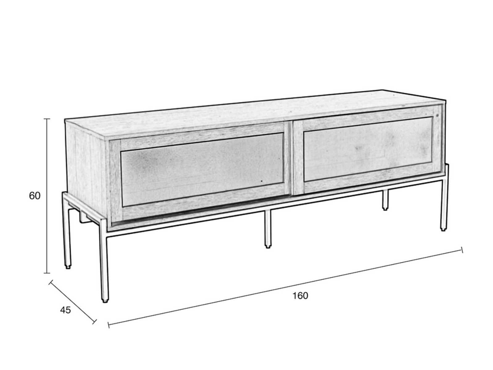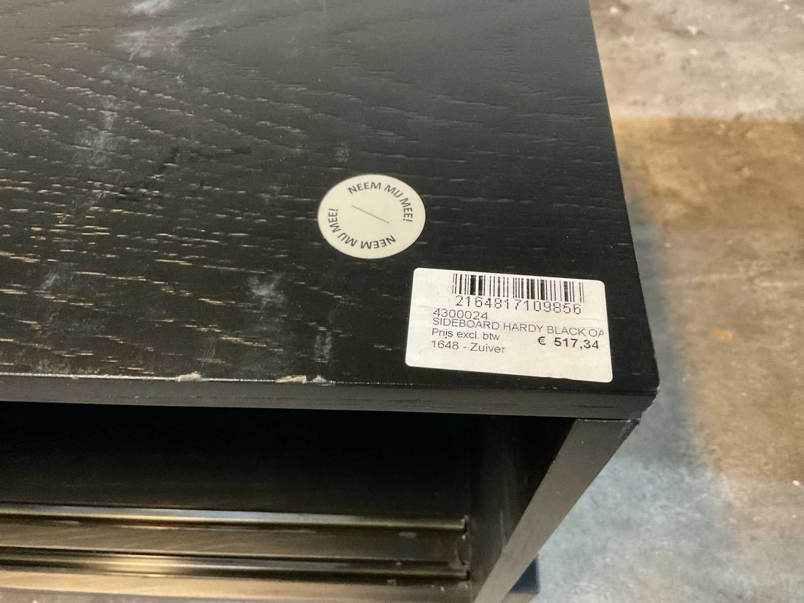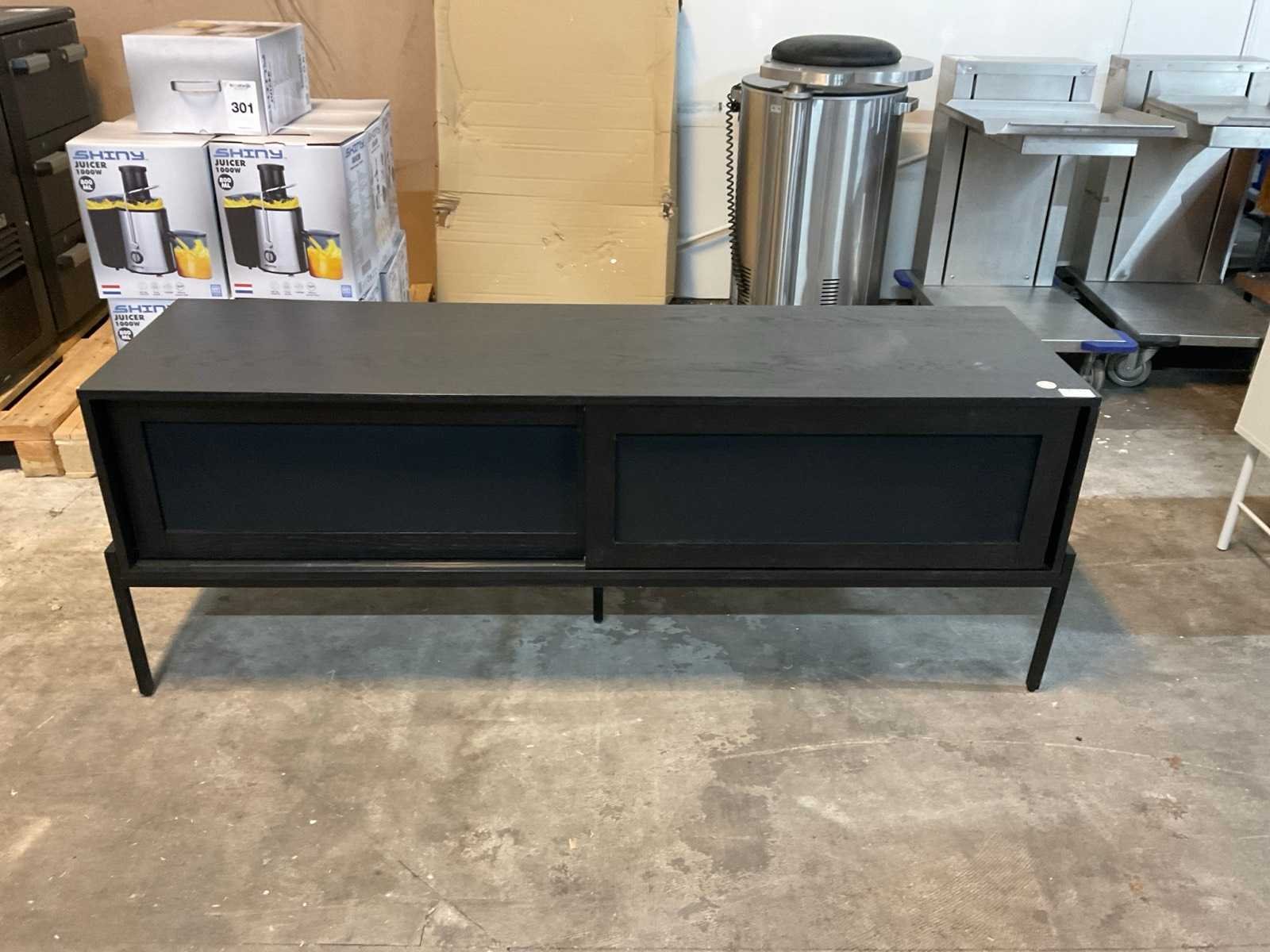 Kavel heeft beschadigingen, zie foto’s Merk: Zuiver Model: Hardy Kleur: Zwart Breedte: 160cm Hoogte: 60cm Diepte: 45cm