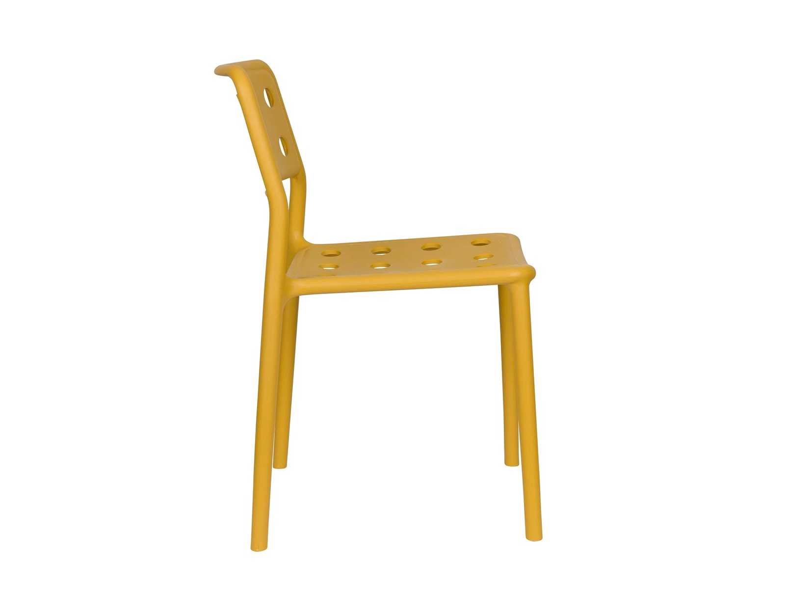 Ongebruikt in verpakking Merk: Housecraft living Model: Serra Kleur: Okergeel Lengte: 53cm Breedte: 42cm Hoogte: 80cm Zithoogte: 45 Materiaal: Polypropyleen kunststof
