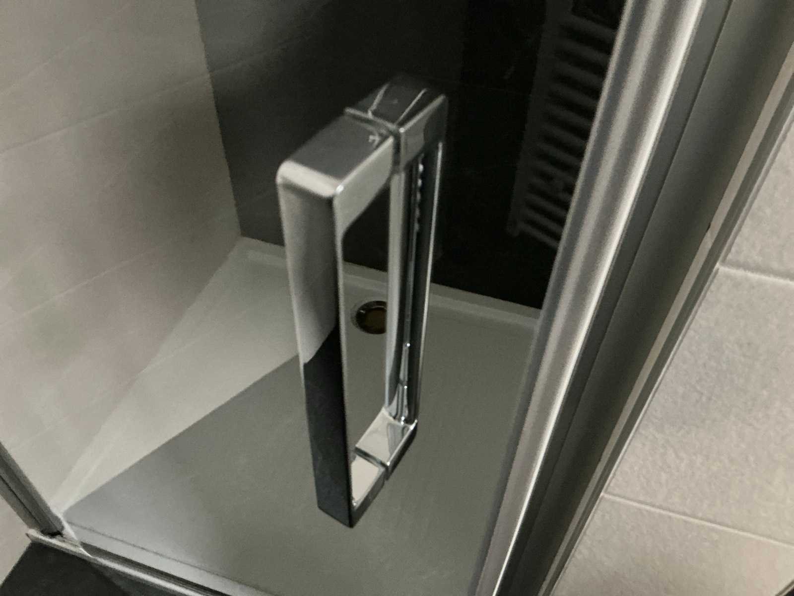 Bestaande uit een douchebak 90x90cm, nisdeur 90x200cm en een Hansgröhe Croma handdouche met thermostaatmengkraan. Merk: Hansgrohe / Huppe Product type: Classic