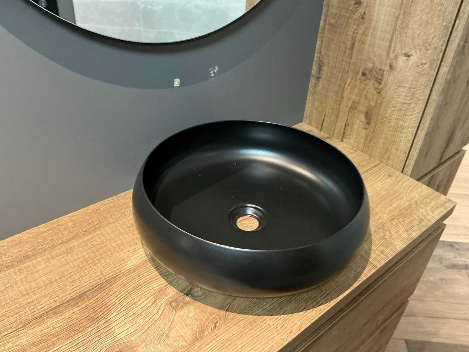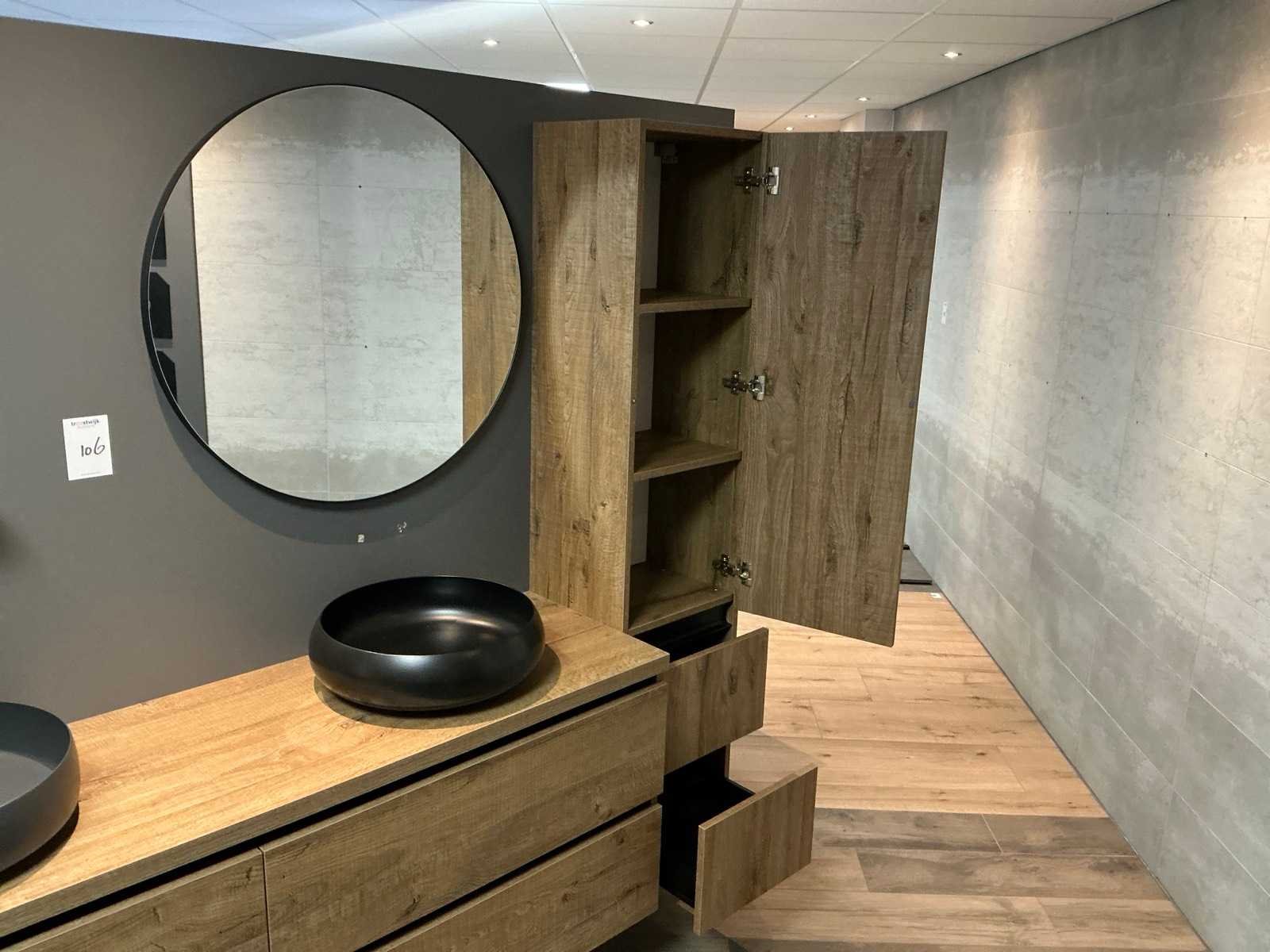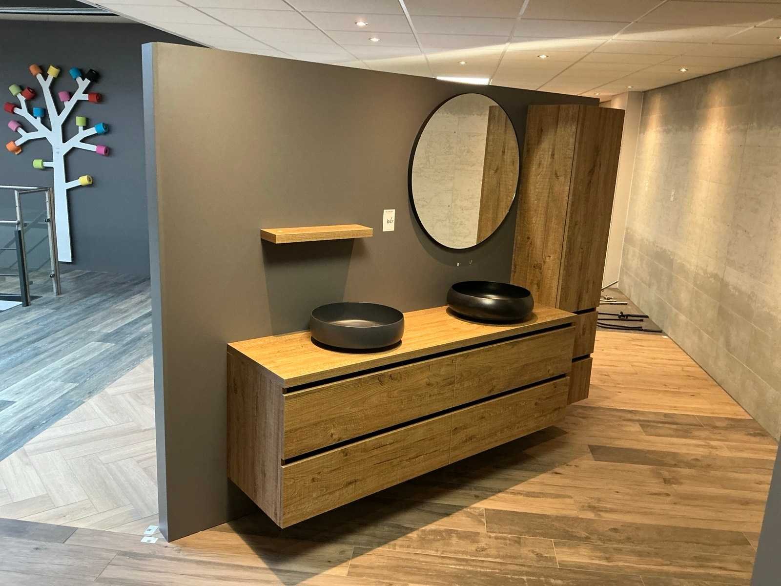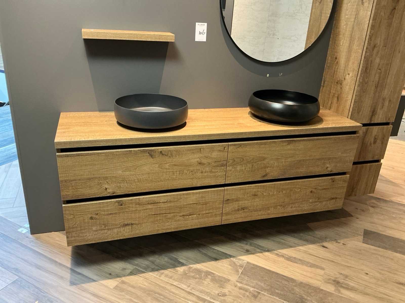 Bestaande uit 2 verschillende BETTE titaanstaal opzetwaskommen, DYSIGN onderkast 180x48x62cm met Blum softclose lades, spiegel 80cm en badkamerkast 40x170cm Merk: DYSIGN