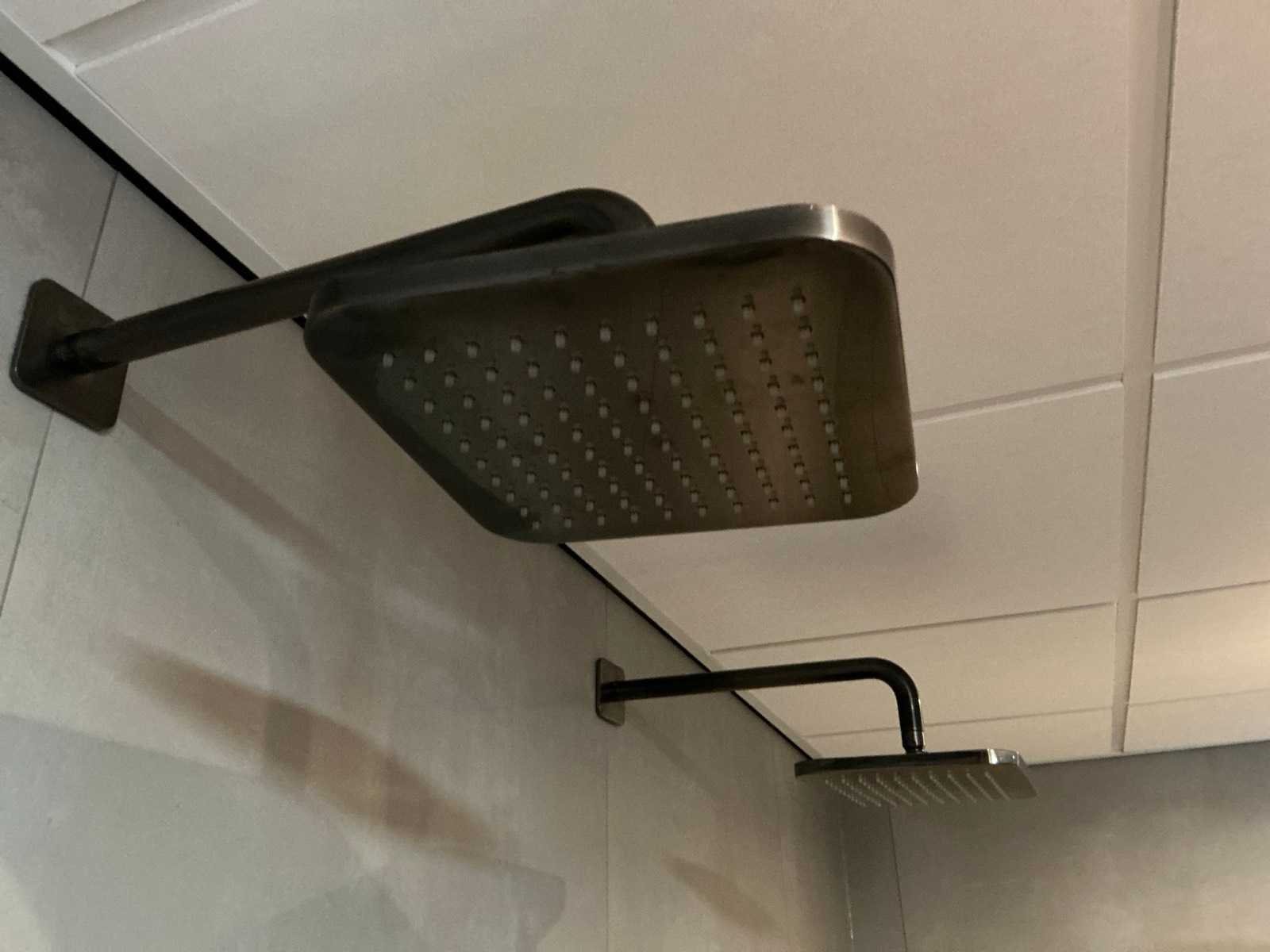 Douchevloerkleur Antraciet. Voorzien van 2 Hotbath regendouchekoppen kleur gunmetal.Eventueel losse afvoerset voor douchevloer ook verkrijgbaar ( kavel 276, 277 en 278) Merk: BETTE Model: Floor Lengte: 180cm Breedte: 100cm