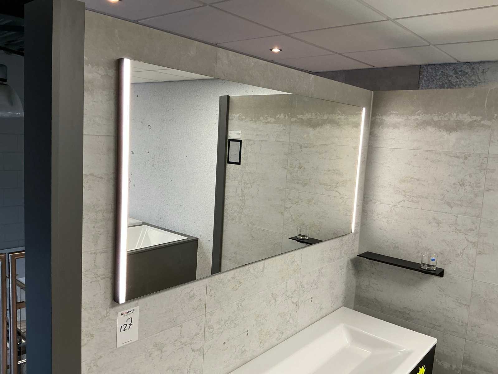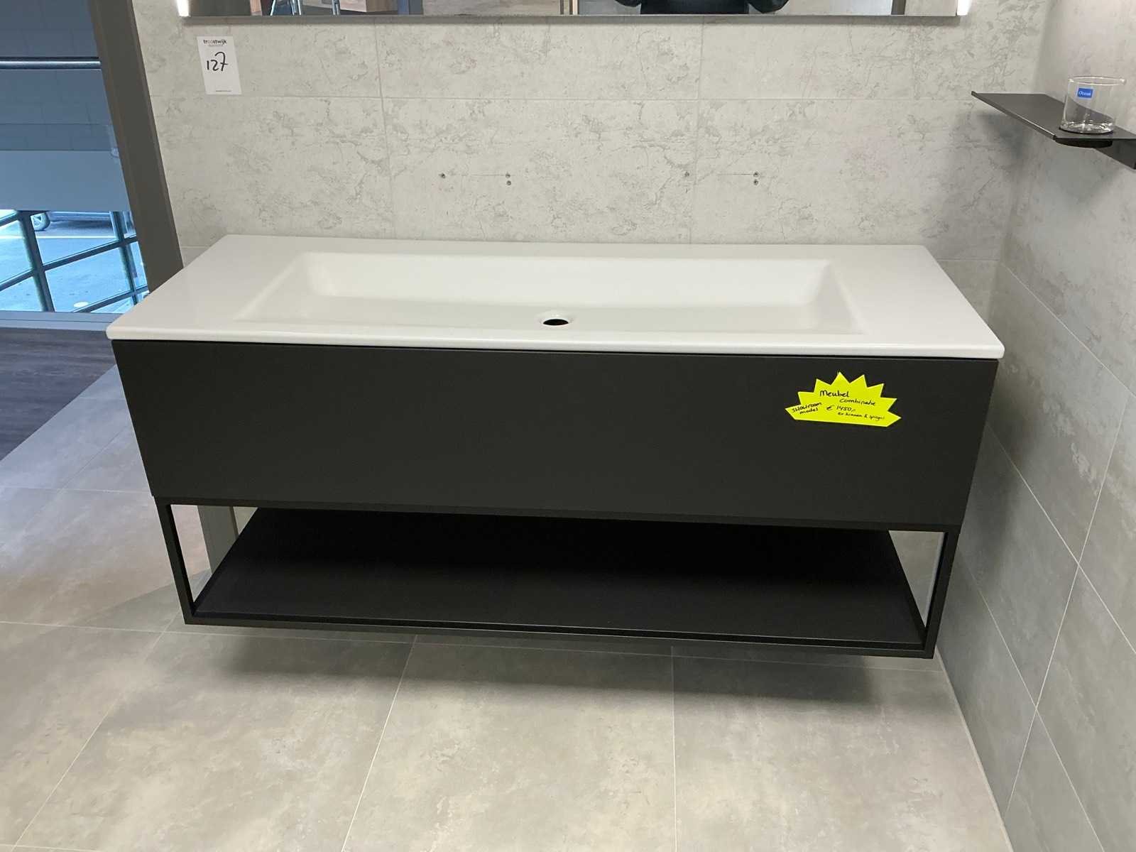 Bestaande uit een Bette watafel 140x50cm, DYSIGN onderkast 140x50x59cm met Blum softclose lade, LED spiegel 140x65cm en wandplank. Kleur mat zwart Merk: DYSIGN / Bette