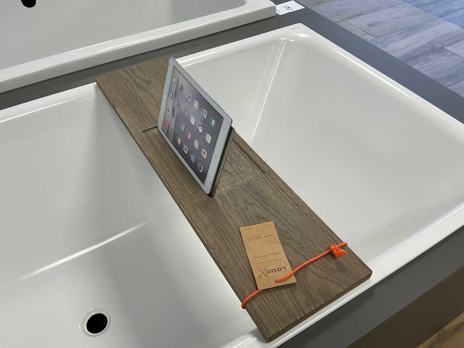 Ligbad titaanstaal, met poten. Voorzien van Looox badplank. Merk: Bette Model: Lux Product type: Duo Lengte: 180cm Breedte: 80cm Hoogte: 50cm