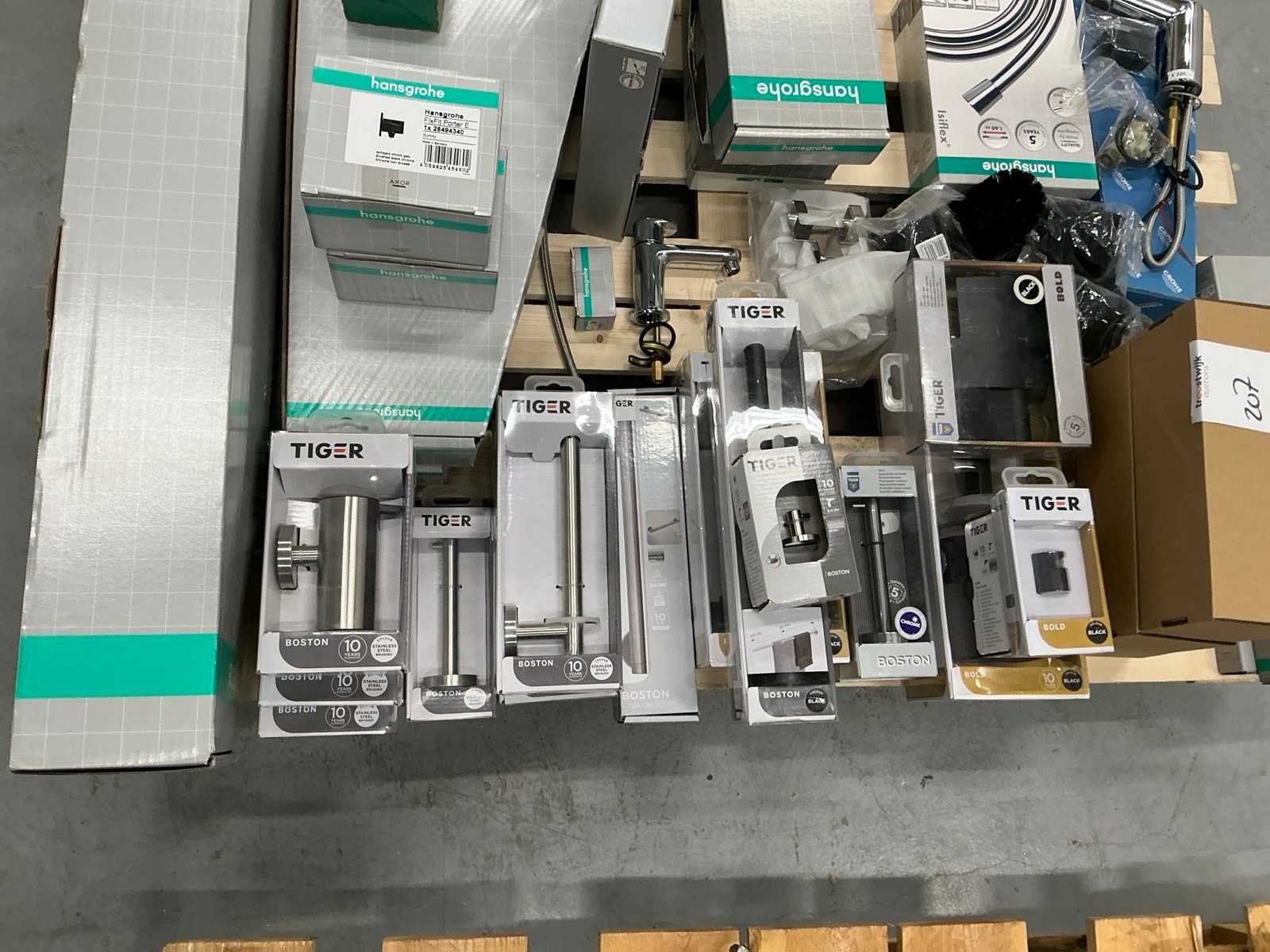 Verschillende soorten en maten ongebruikt in doos van Hansgrohe,Tiger, Grohe.