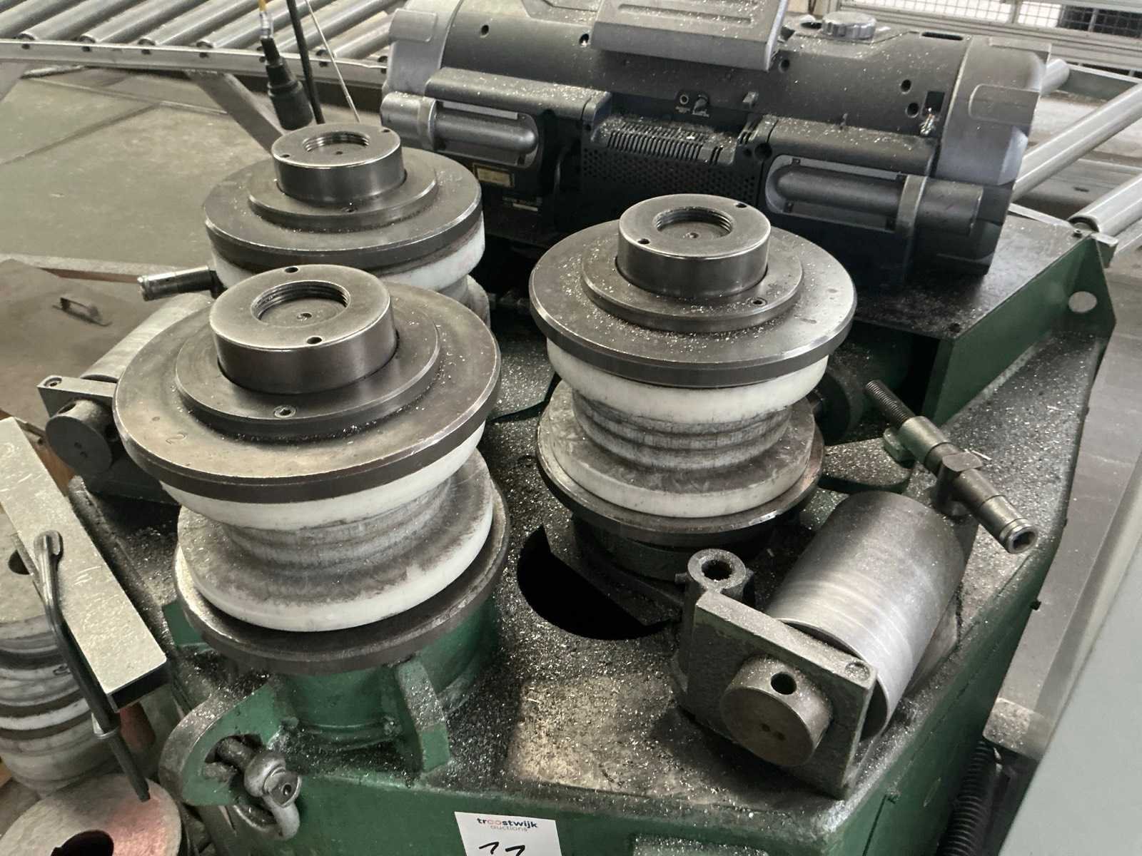 Inclusief kunststof profielbuigrollen, 1 gebogen opleg rollentafel en bedieningsconsole Merk: Roundo Type: R3 Bouwjaar: 1995 Capaciteit.: 14t Aantal rollen: 3 Verticaal: true Horizontaal: true As Ø: 75 Digitale uitlezing: true Aansluiting: 400V