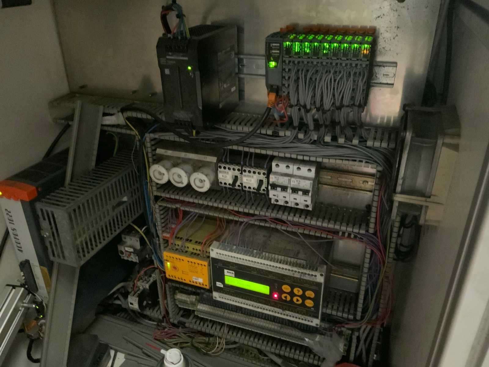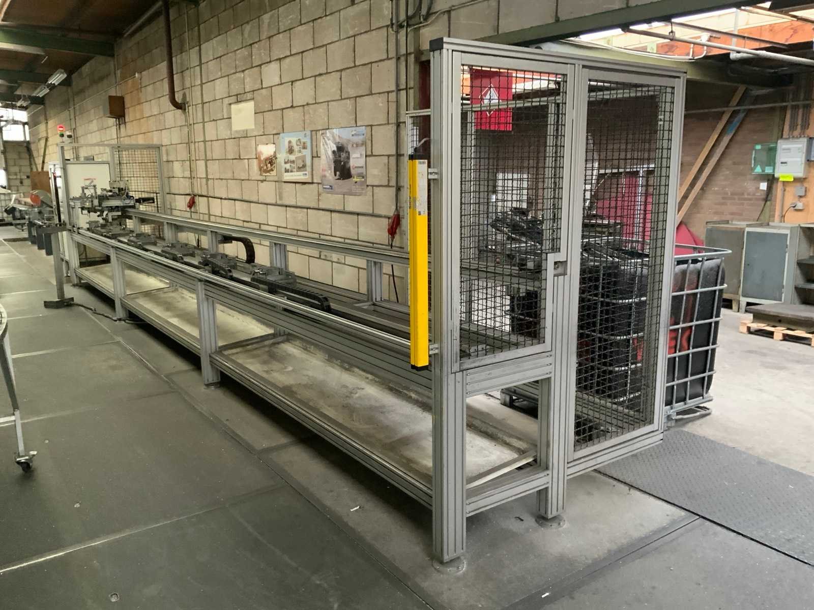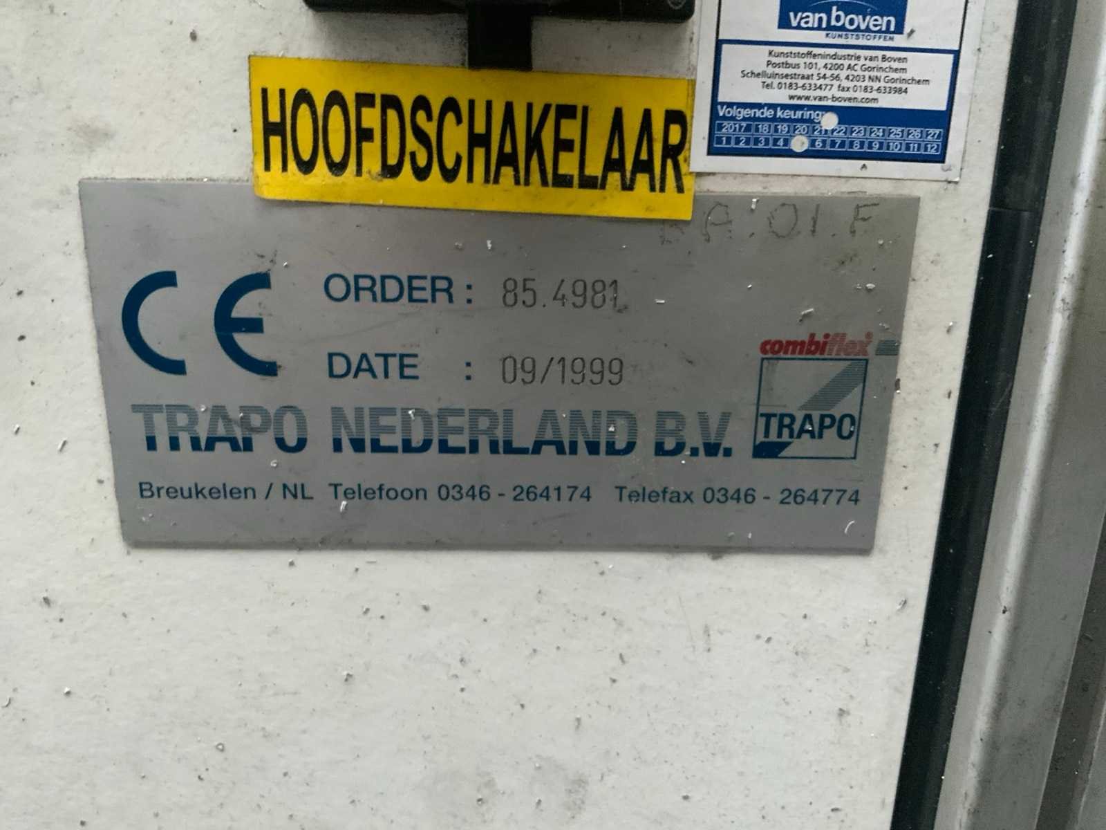 Voorzien van touchscreen pc, 4 boor units op loopwagen, 7 pneumatische materiaal klemmen, bedieningsconsole en Sic 30 FGS lichtscherm persoonsbeveiliging Merk: Trapo combiflex Bouwjaar: 1999 Serienummer: 85.4981 Aansluiting: 400V Afmeting l: 10350mm Afmeting b: 1600mm Afmeting h: 2440mm