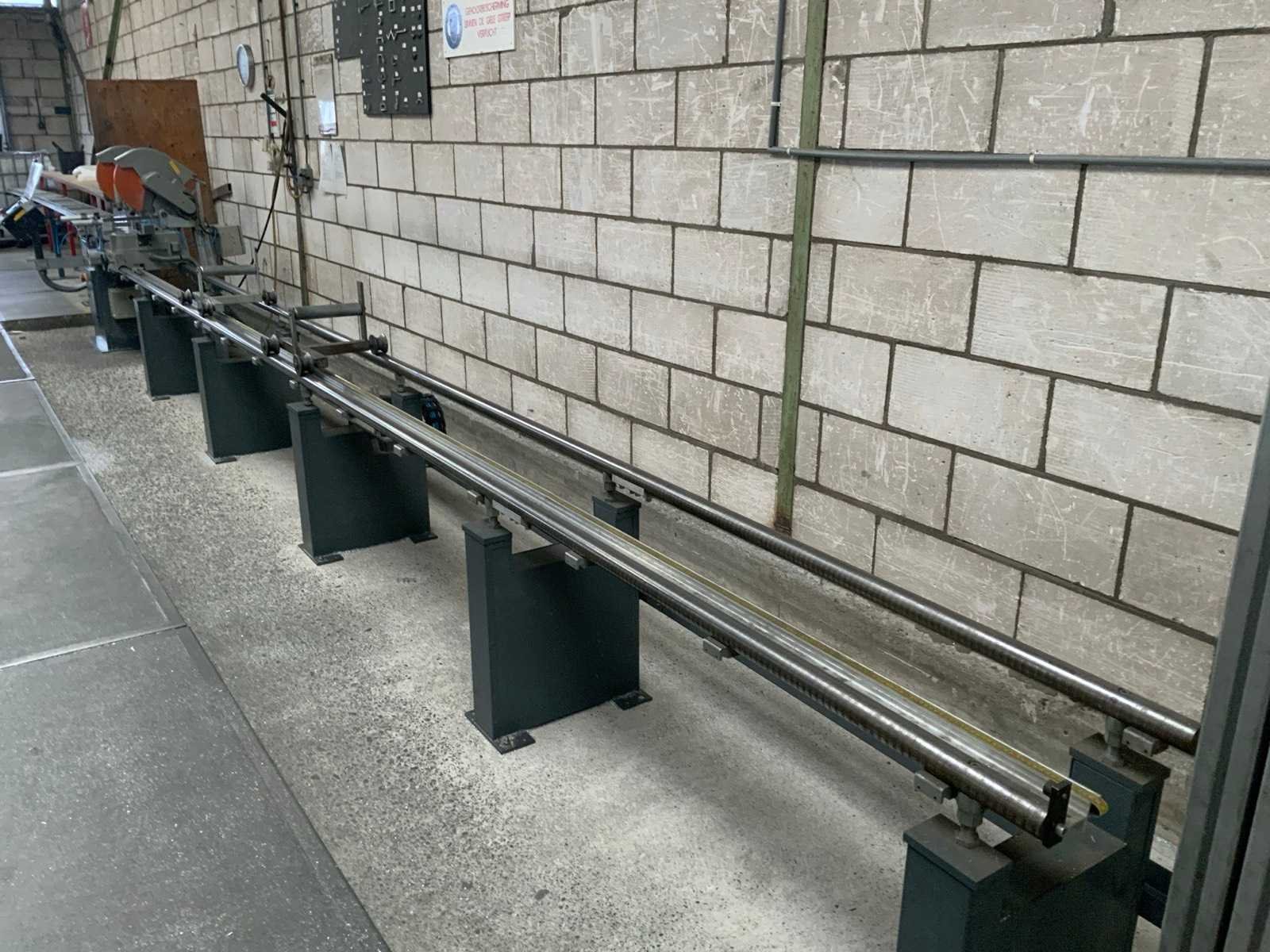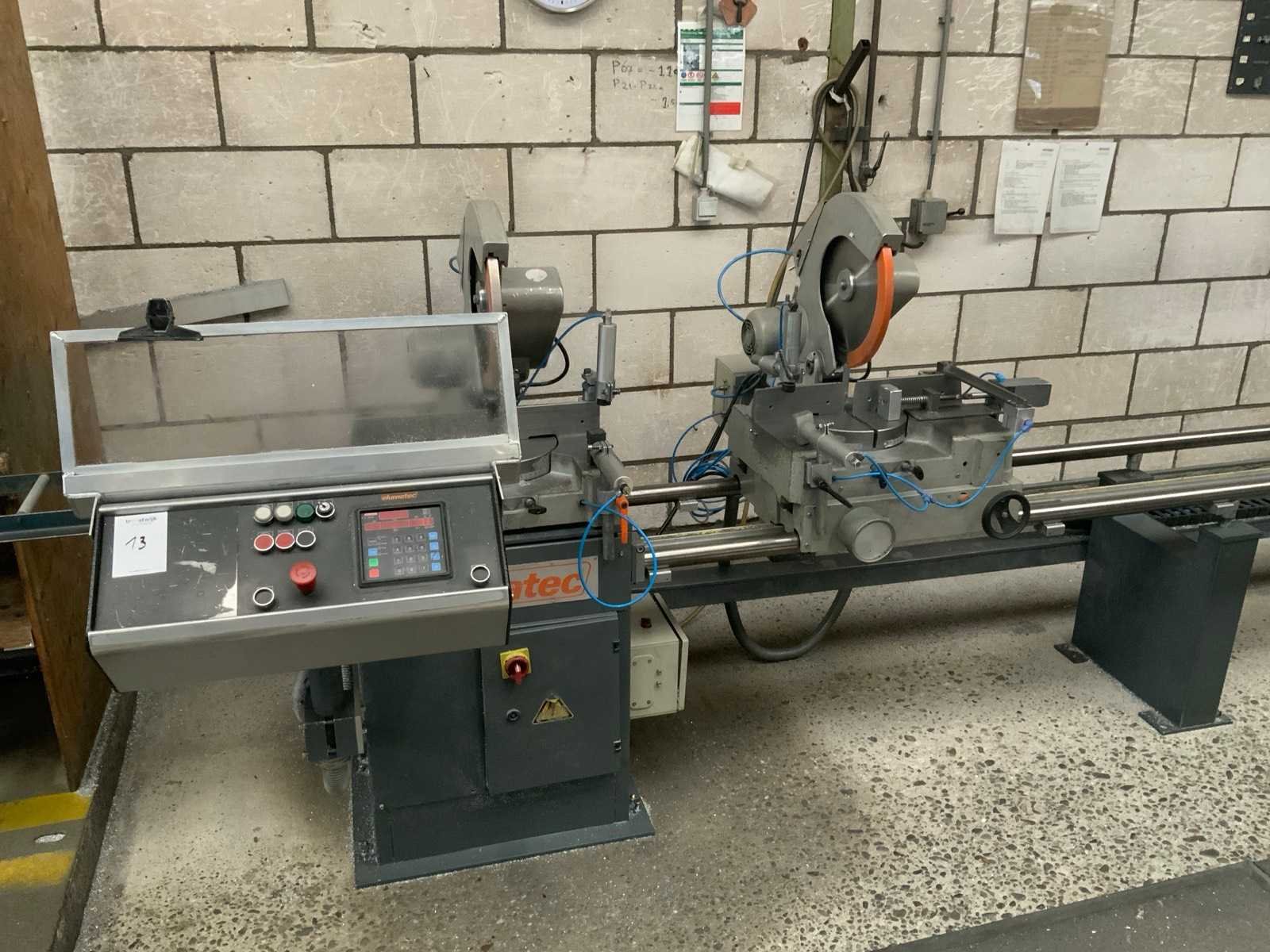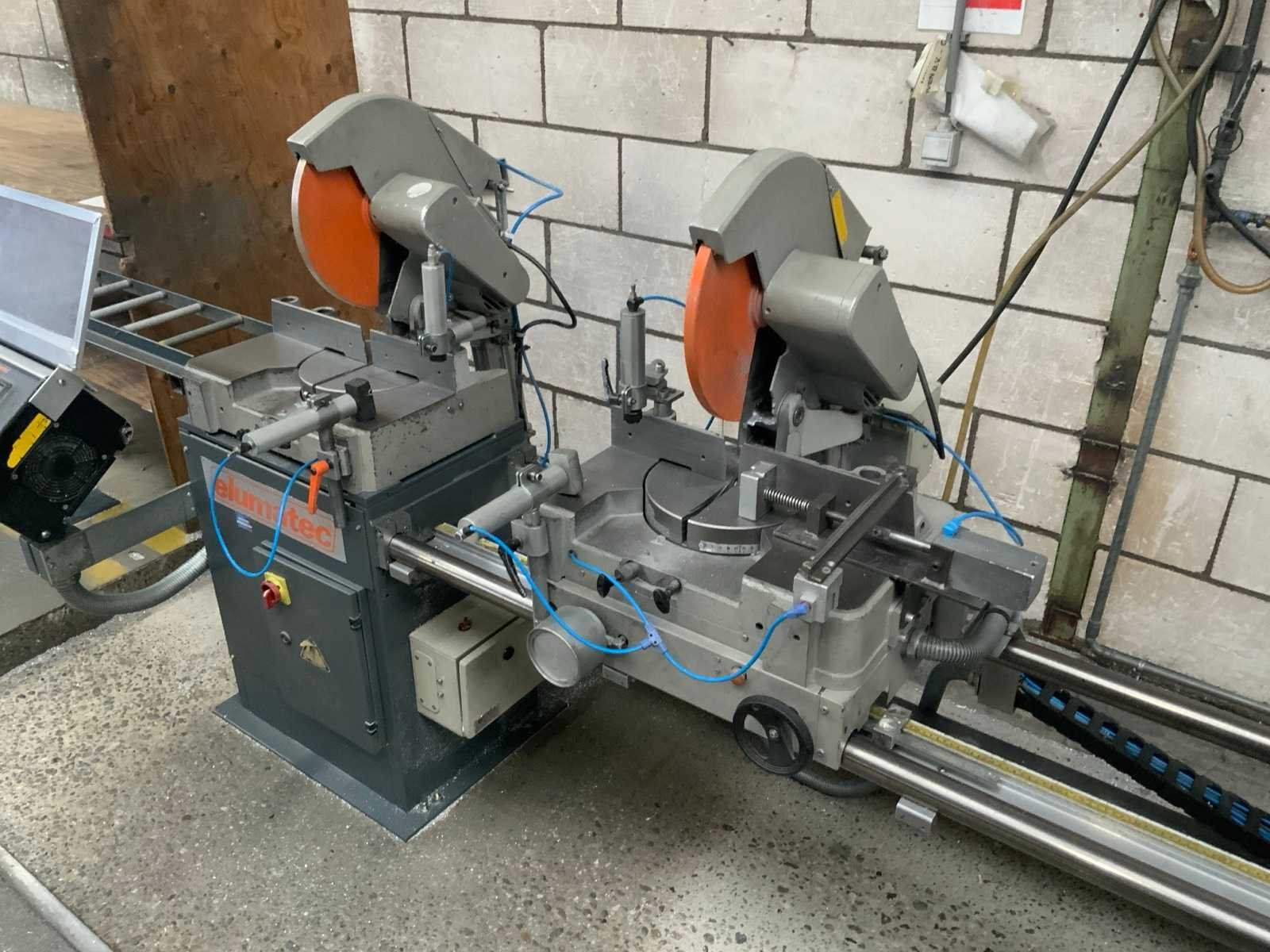 Afkortlengte max. 7600 mm, vermogen: 2 x 3000 watt, voorzien pneumatische voeding, Elumatec Ex255/A automatische lengte aanslagsysteem, pneumatische materiaal klemming, inclusief rollenbaan en wandtafel Merk: Elumatec Type: DG 79 Bouwjaar: 1996 Serienummer: 31829 Zaagblad Ø: 380 Snelheid tot n =: 3000rpm Aansluiting: 400V Afmeting l: 14500mm Afmeting b: 1300mm Afmeting h: 1430mm