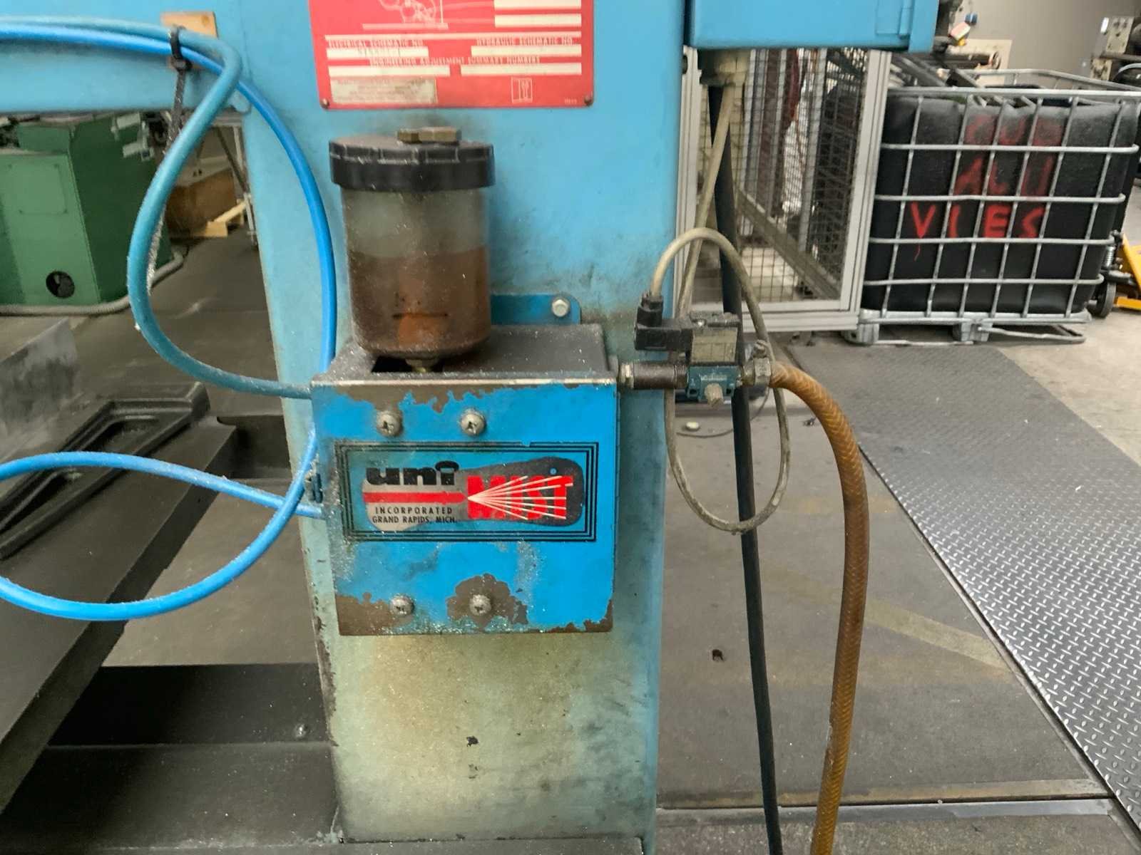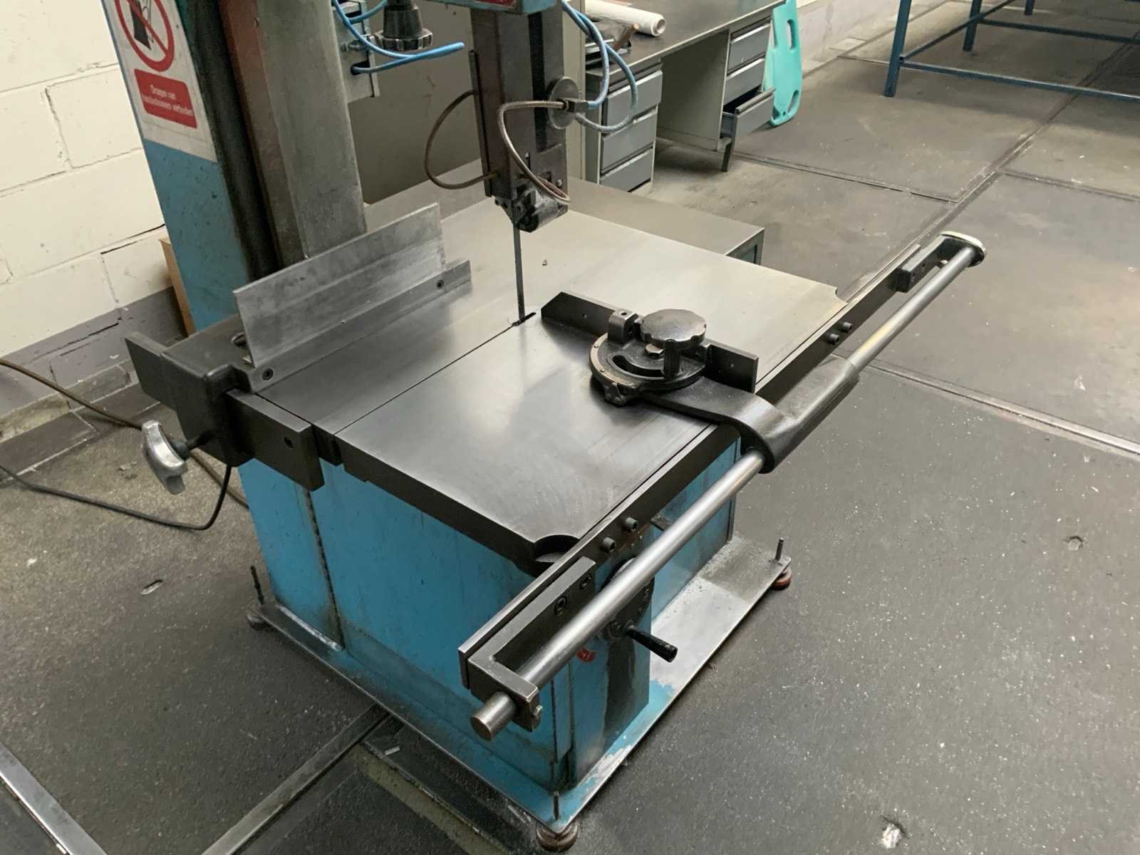 Uitlading: 500mm, inclusief 1 doos met lintzagen Merk: Doal Type: 2013-V Serienummer: 515894-1 Zaagblad afm. l: 3912mm Tafel afmeting l: 660mm Tafel afmeting b: 660mm Koelmiddelpomp: true Aansluiting: 380V Afmeting l: 1400mm Afmeting b: 1400mm Afmeting h: 2100mm