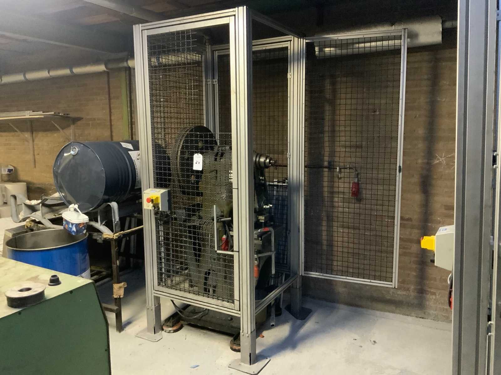 Capaciteit circa 13 ton, voorzien van beveiligingsomkasting, noodstop beveiling Merk: Thomas Uitlading: 200mm Tafel afmeting l: 450mm Tafel afmeting b: 300mm Aansluiting: 380V Afmeting l: 1170mm Afmeting b: 1170mm Afmeting h: 2500mm
