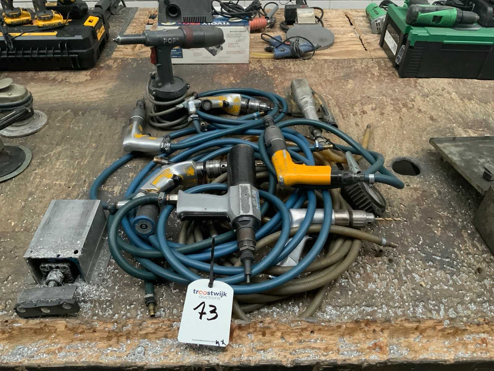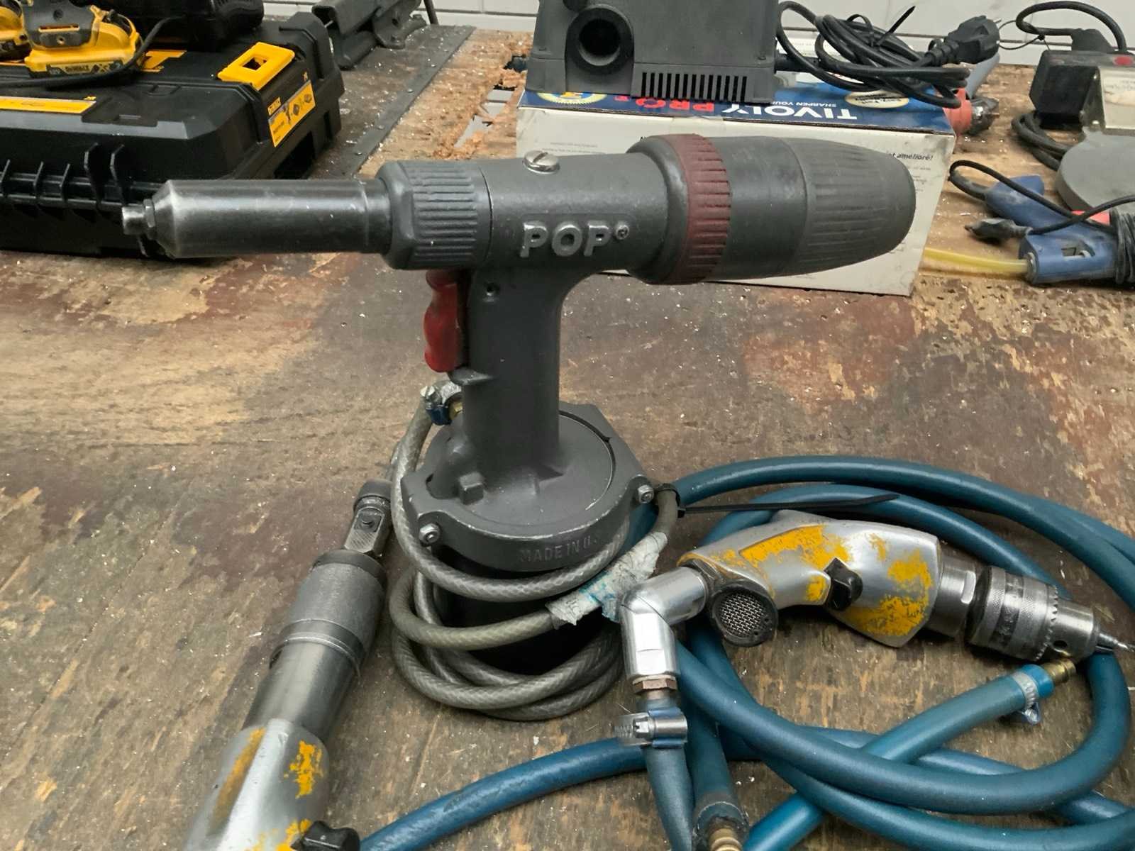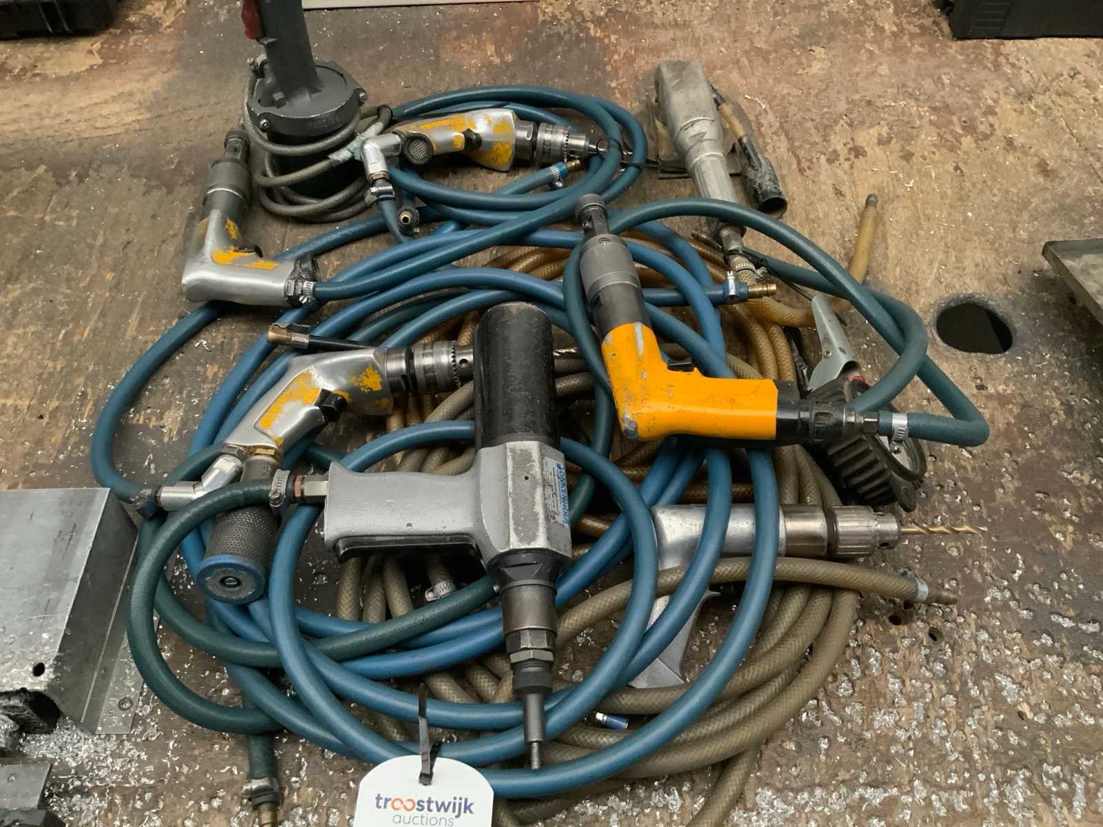 Waaronder: 2 Atlas Copco tapmachines, 2 boormachines, 1 moerblindklinkpistool, 1 bandenspanningsmeter, 1 blindklinkpistool