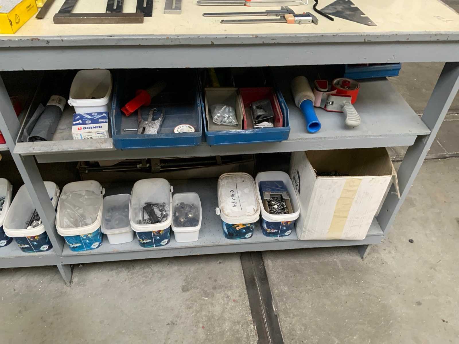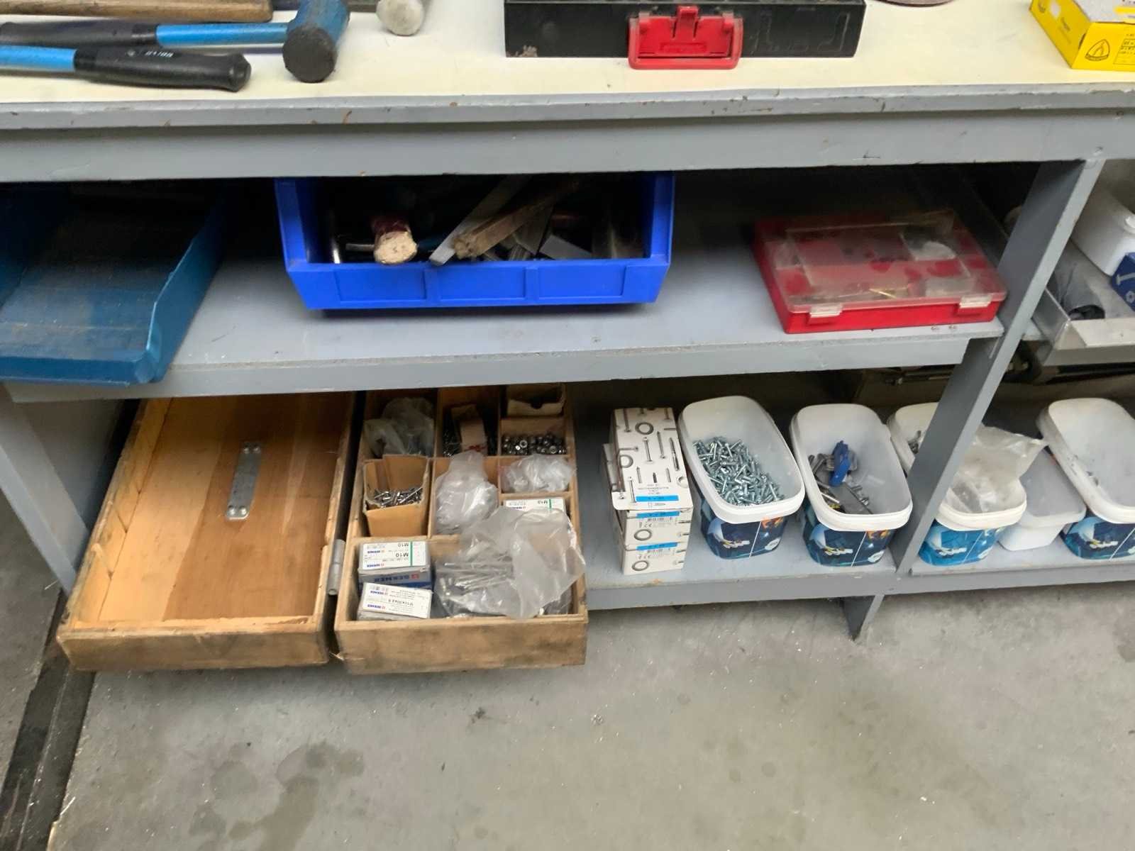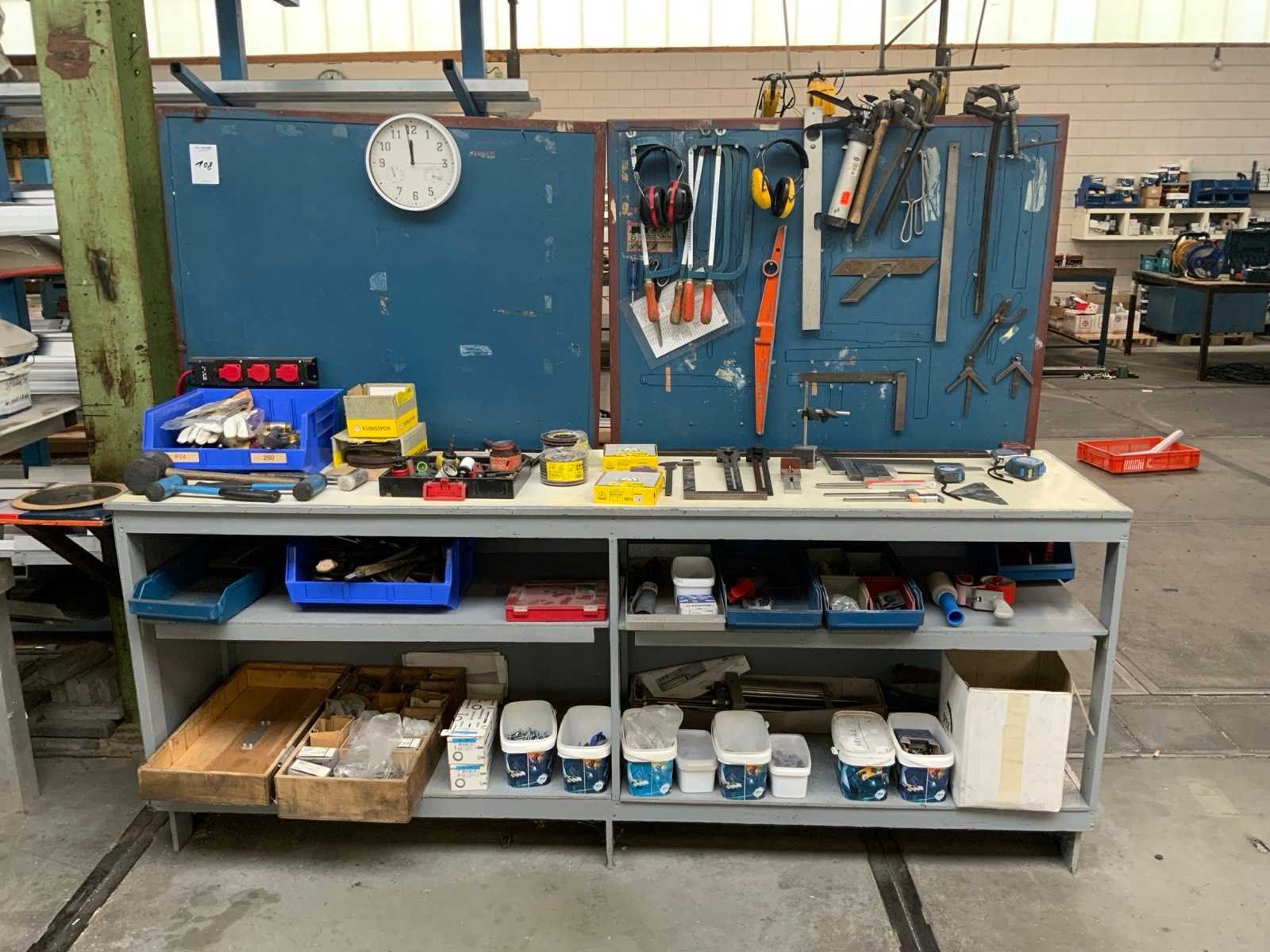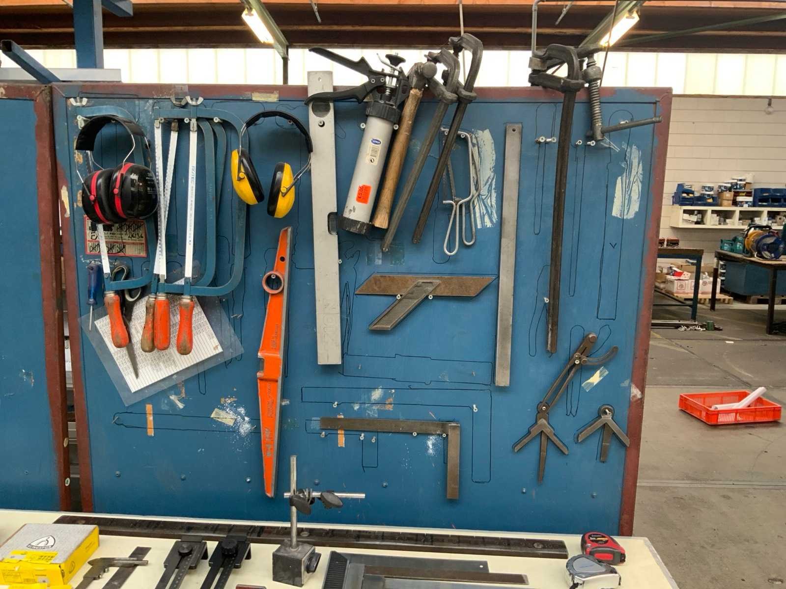 Waaronder: gatzagen, beugelzagen, hamers, afschrijf gereedschap. inclusief de werktafel en 2 separatie wanden