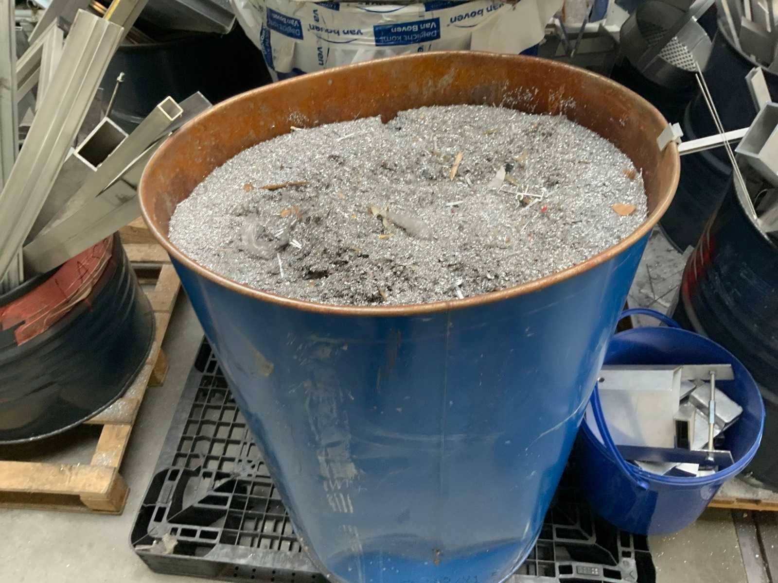 Waaronder: 1 BCI bak gevuld, 10 pallets gevuld en stelling met inhoud