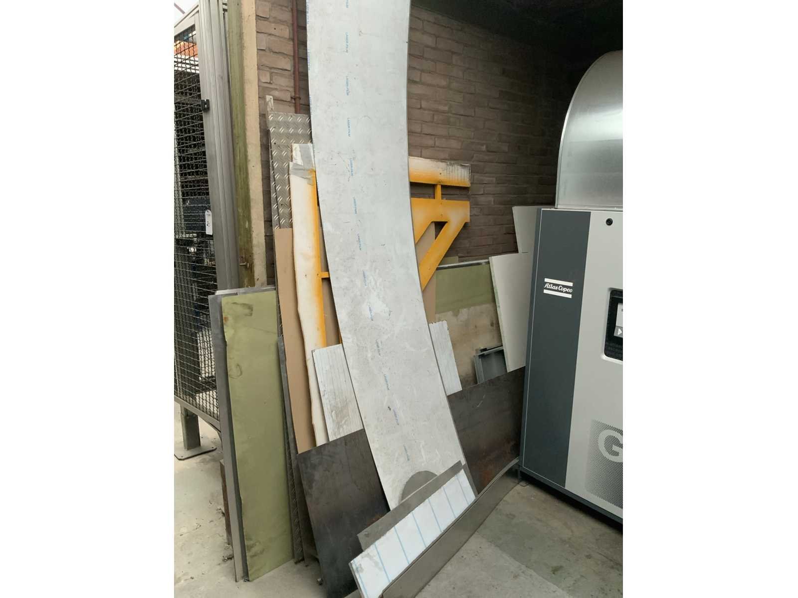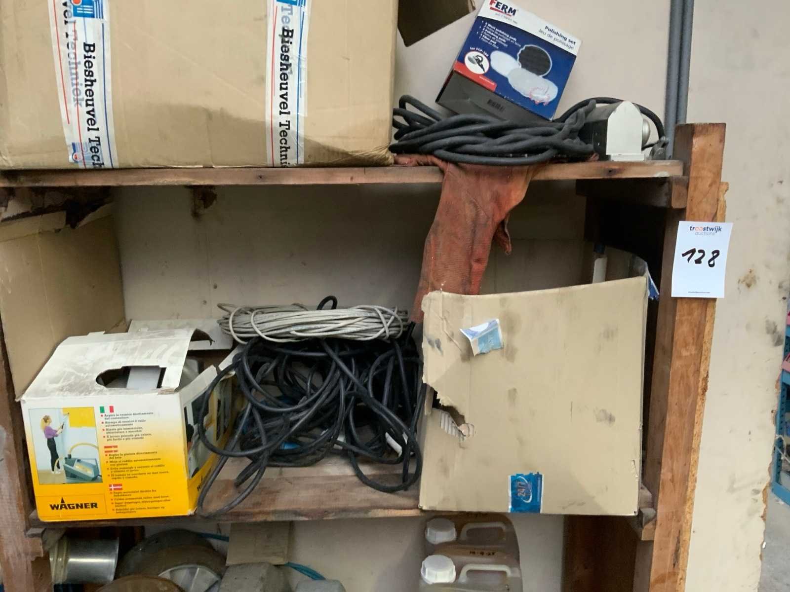 Inclusief houten stelling Bestaande uit: stroomkabel 1e: kerngietmallen 2e: 1 behangafstoomapparaat 3e: 1 stortbak 4e: wielen 5e: restanten aluminium plaat 6e: staalplaat