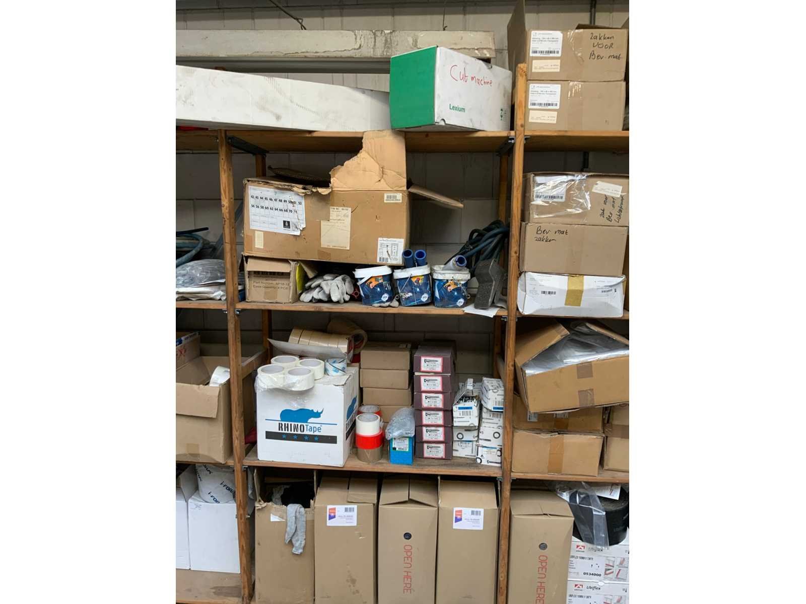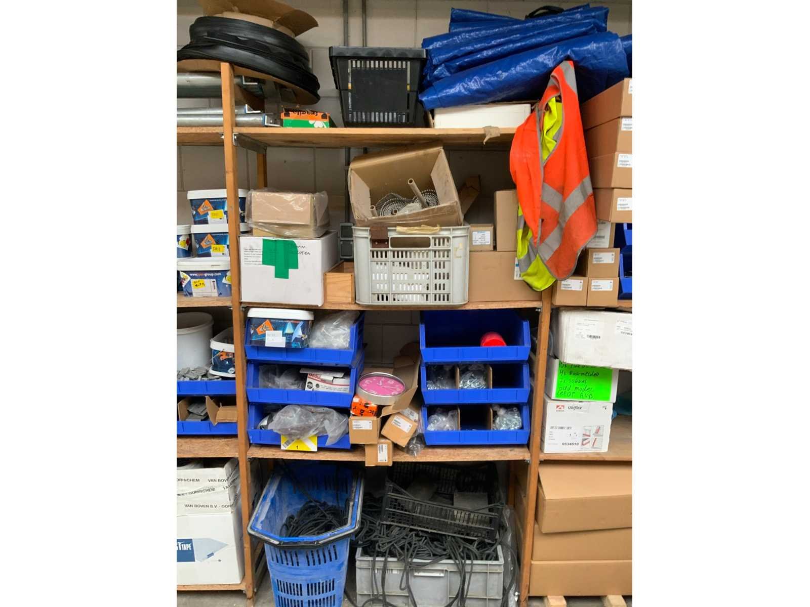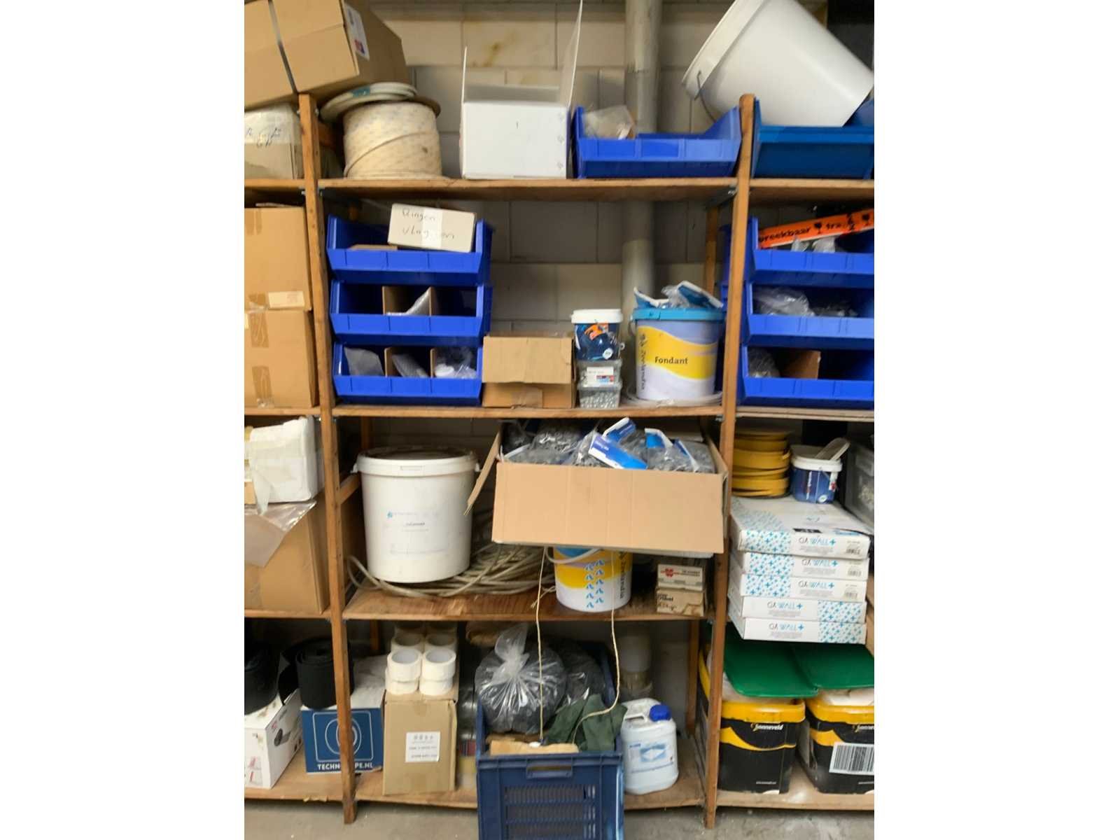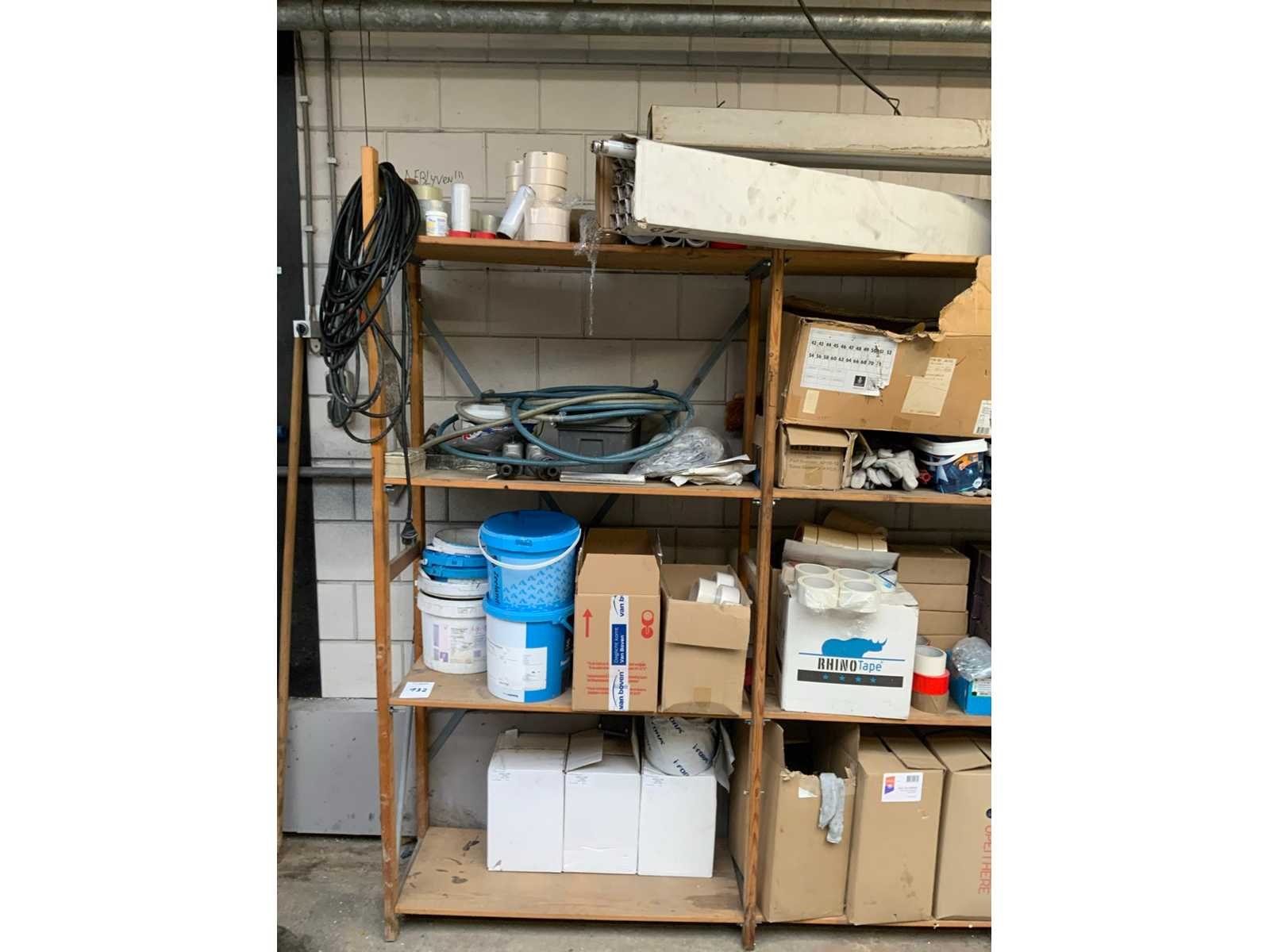 Waaronder: Ubiflex slabben, plastic zakken, plakband, kunststof afdekkappen, installatie materiaal, poetslappen. inclusief 8 meter houten stelling