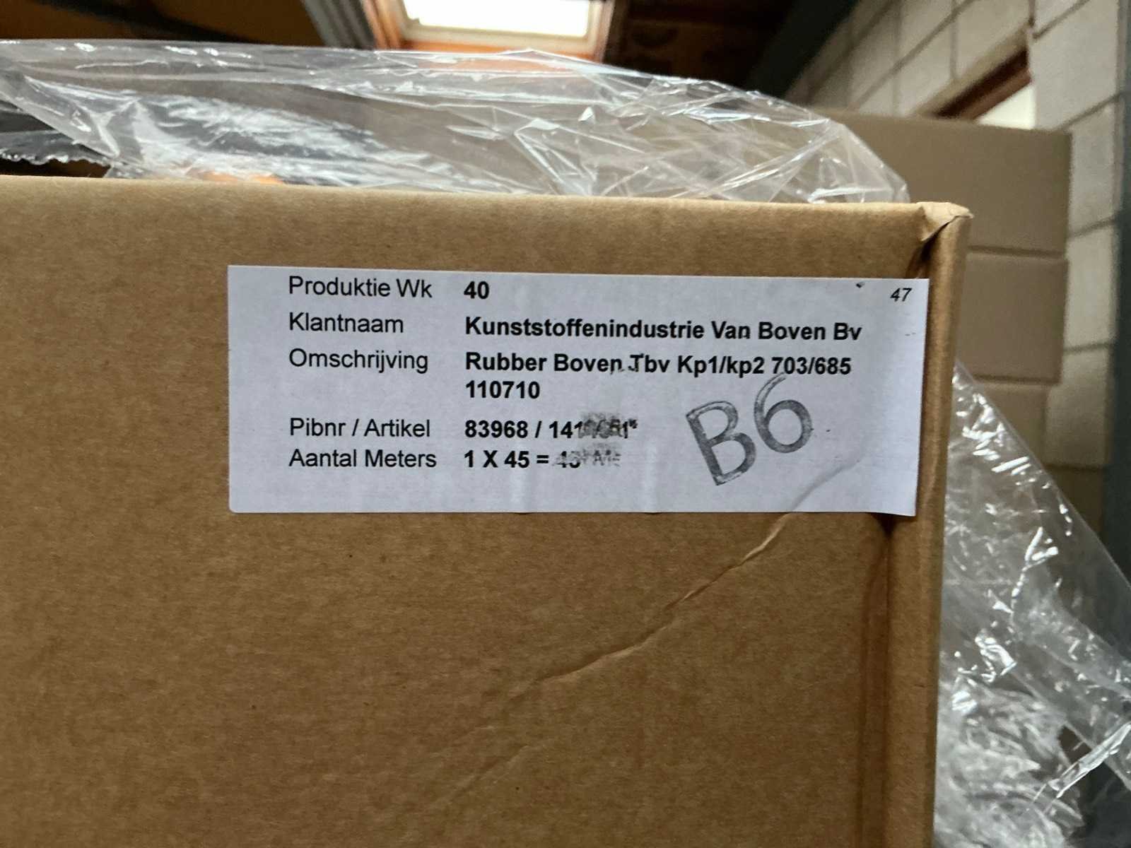 Partij diverse rubber / kunststof profielen tbv bouwsector; op 7 pallets