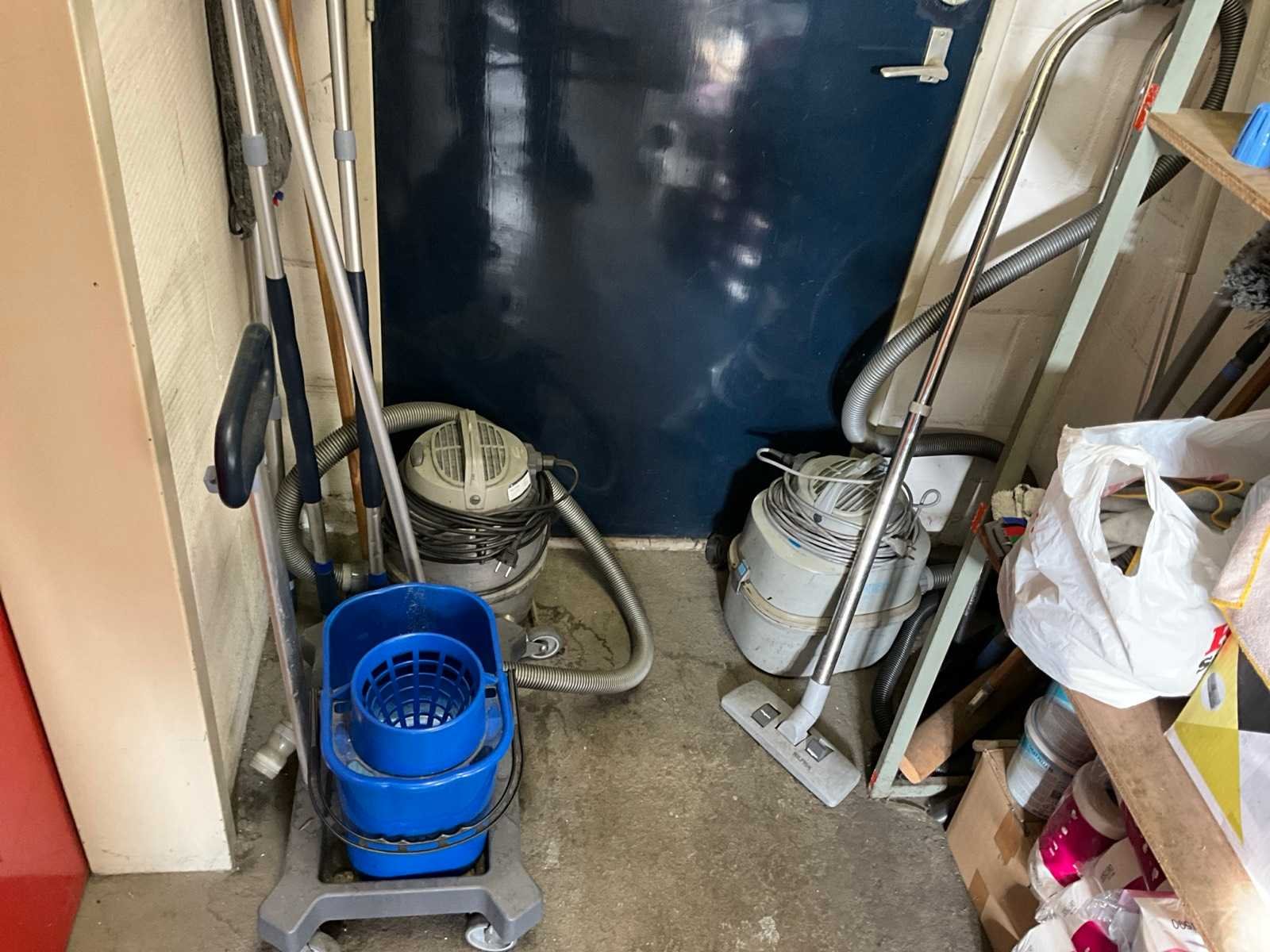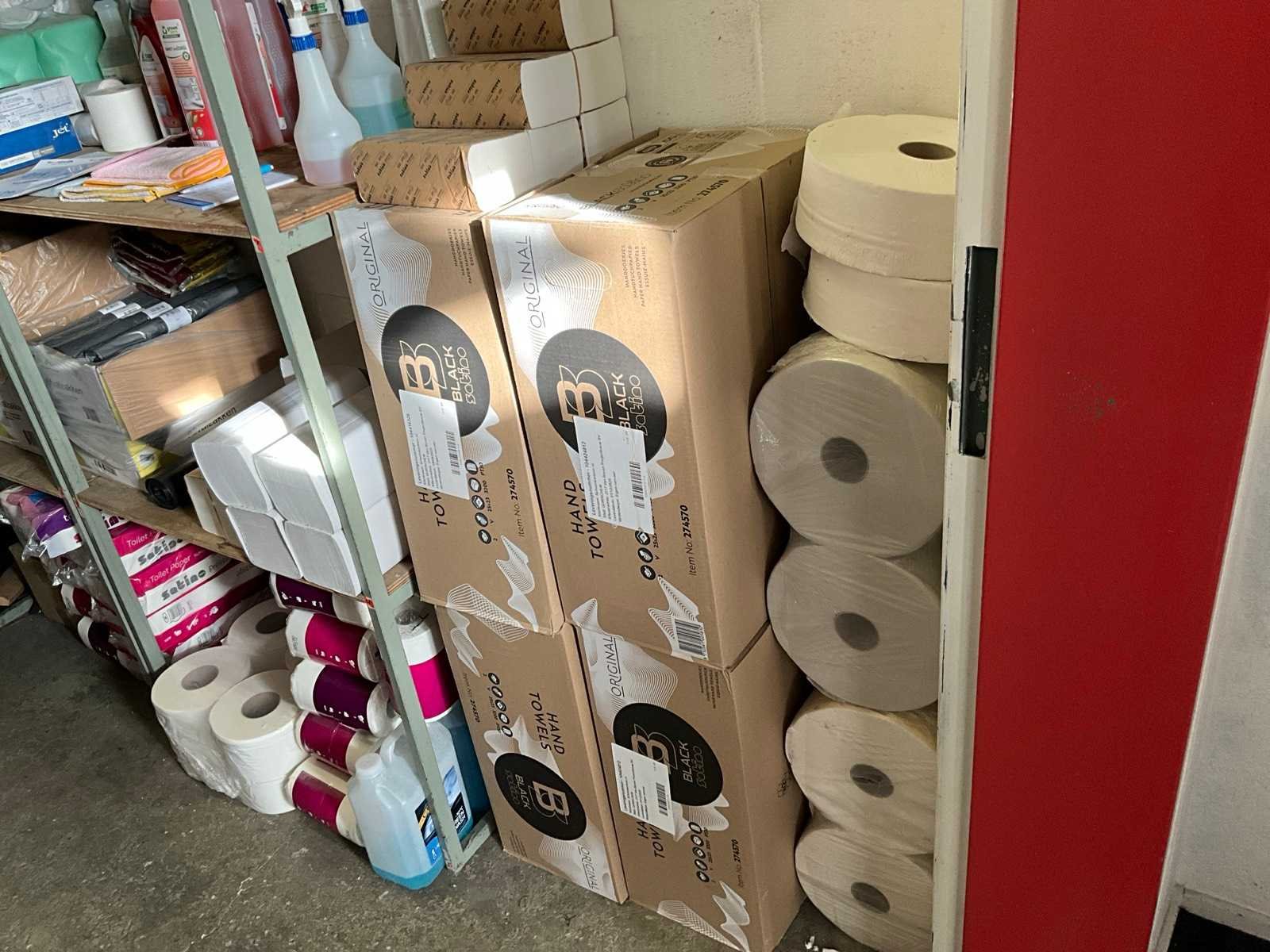 Bestaande uit diverse reinigingsmiddelen, doekjes, handzeep, stofzuiger, vuilniszakken.