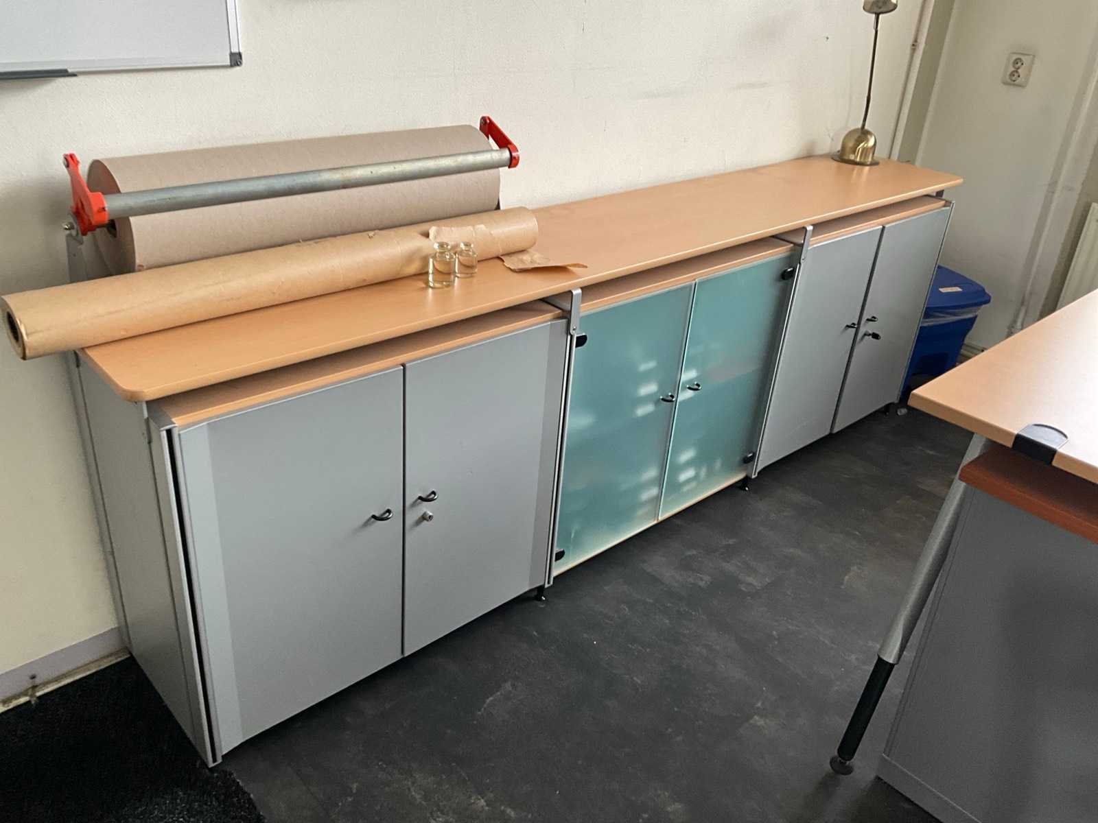 Bestaande uit 3x bureau verschillende modellen en afmetingen. Inclusief 4x archiefkast, 2x plantenbak, 2x Dell monitor, Cafebar waterkoeler, metalen legboord stelling.