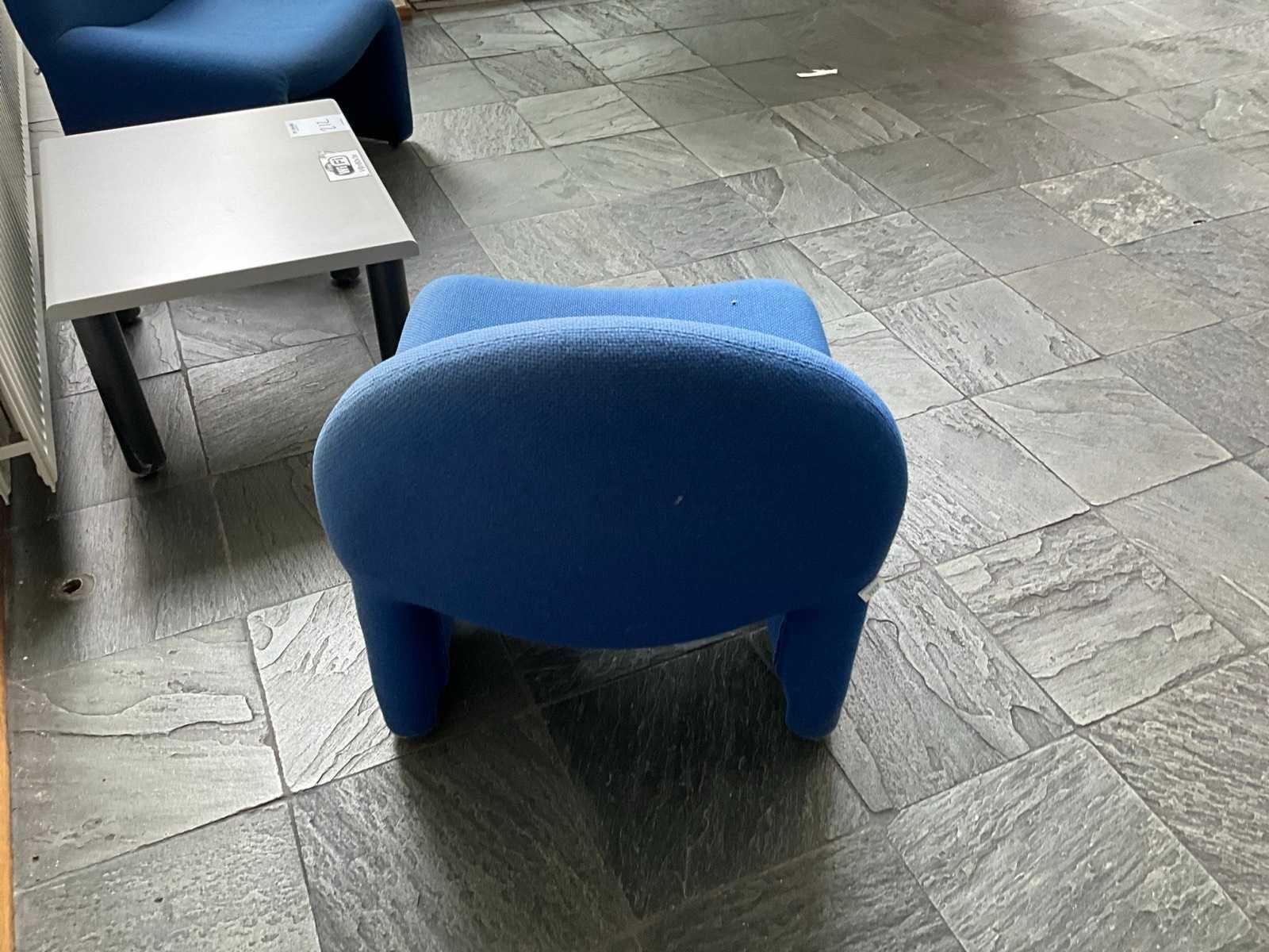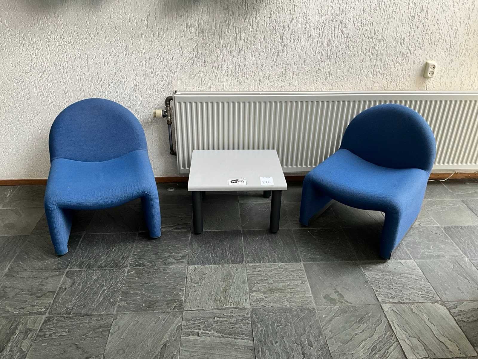 Zithoogte 38 cm. Inclusief bijzettafel Merk: Atal Kleur: Blauw Lengte: 56cm Breedte: 60cm Hoogte: 70cm