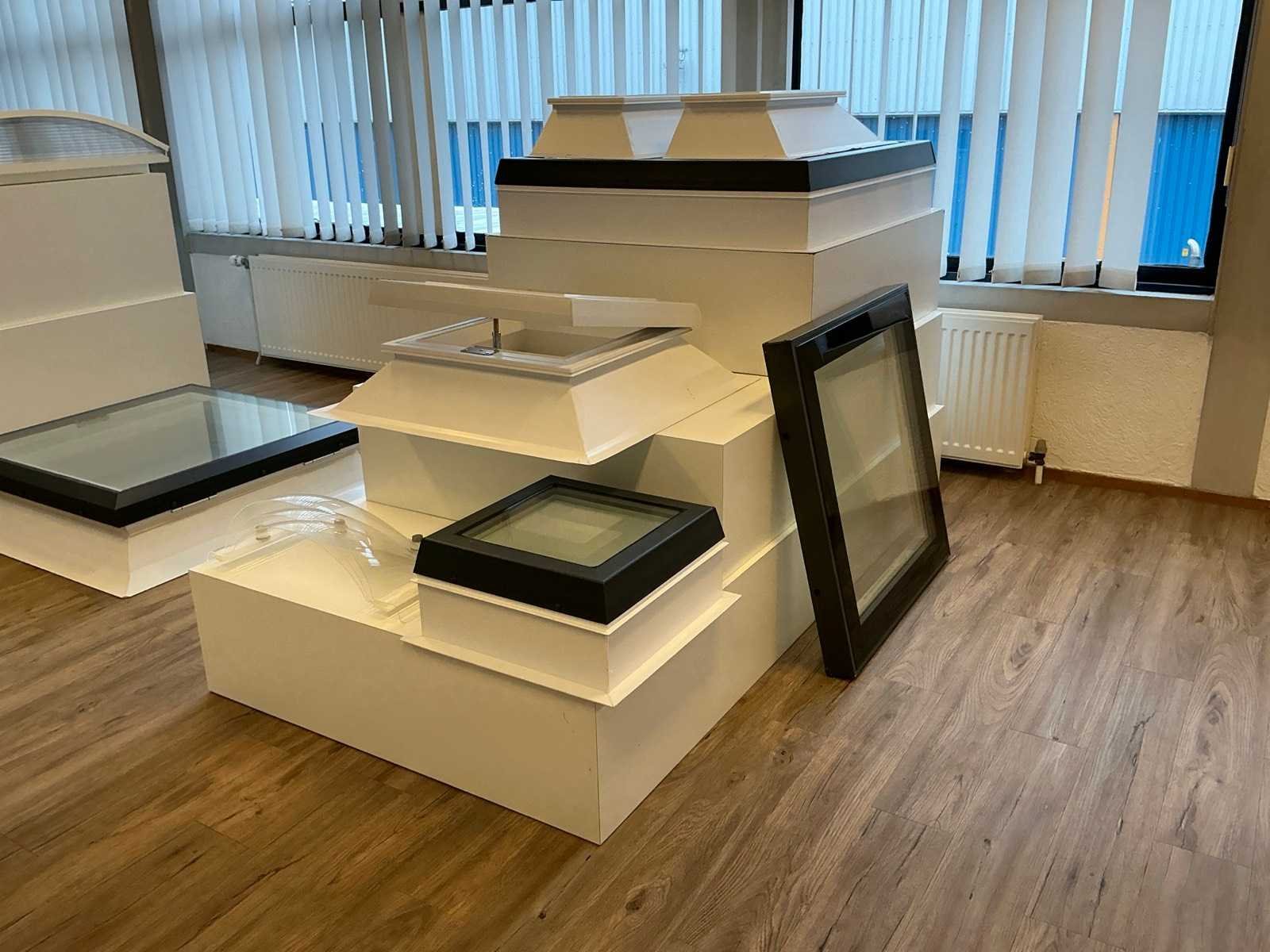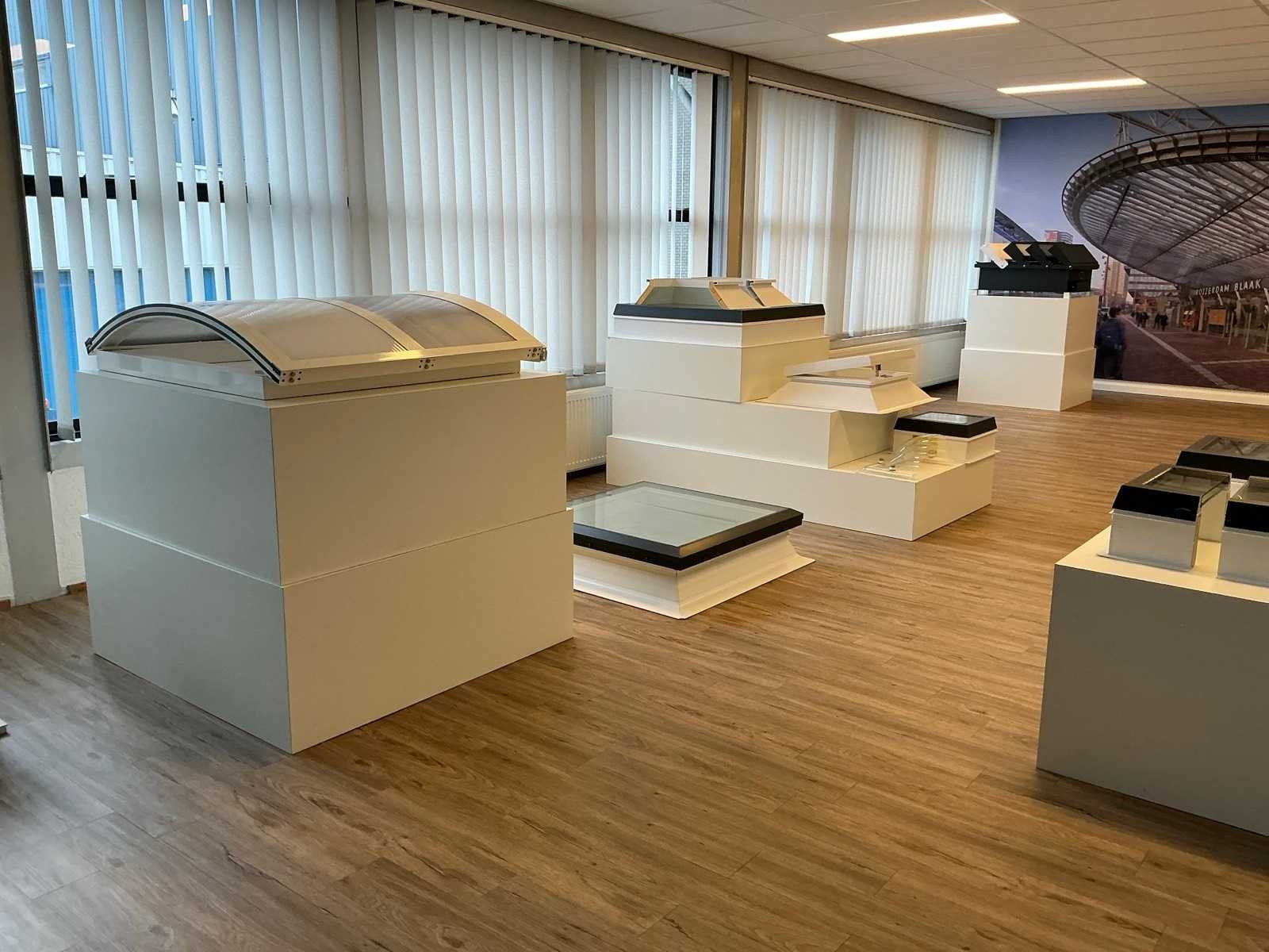 Diverse demo dakramen; demo opstellingen; toonzaal displays; totaal ca. 25 items
