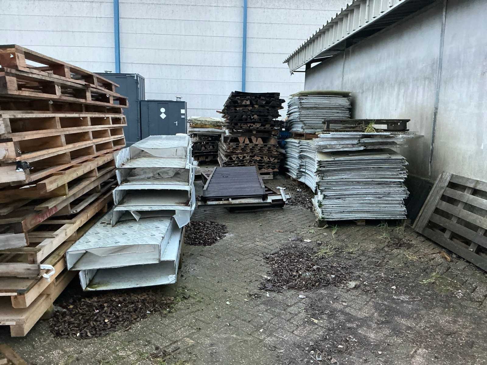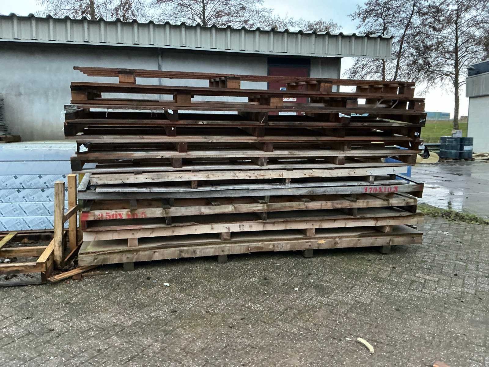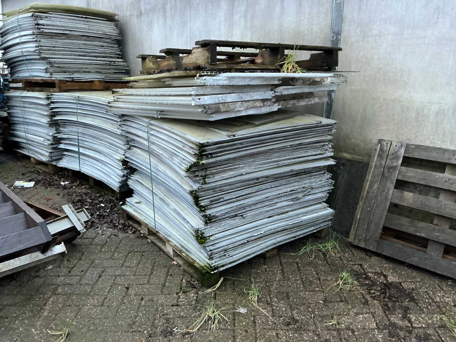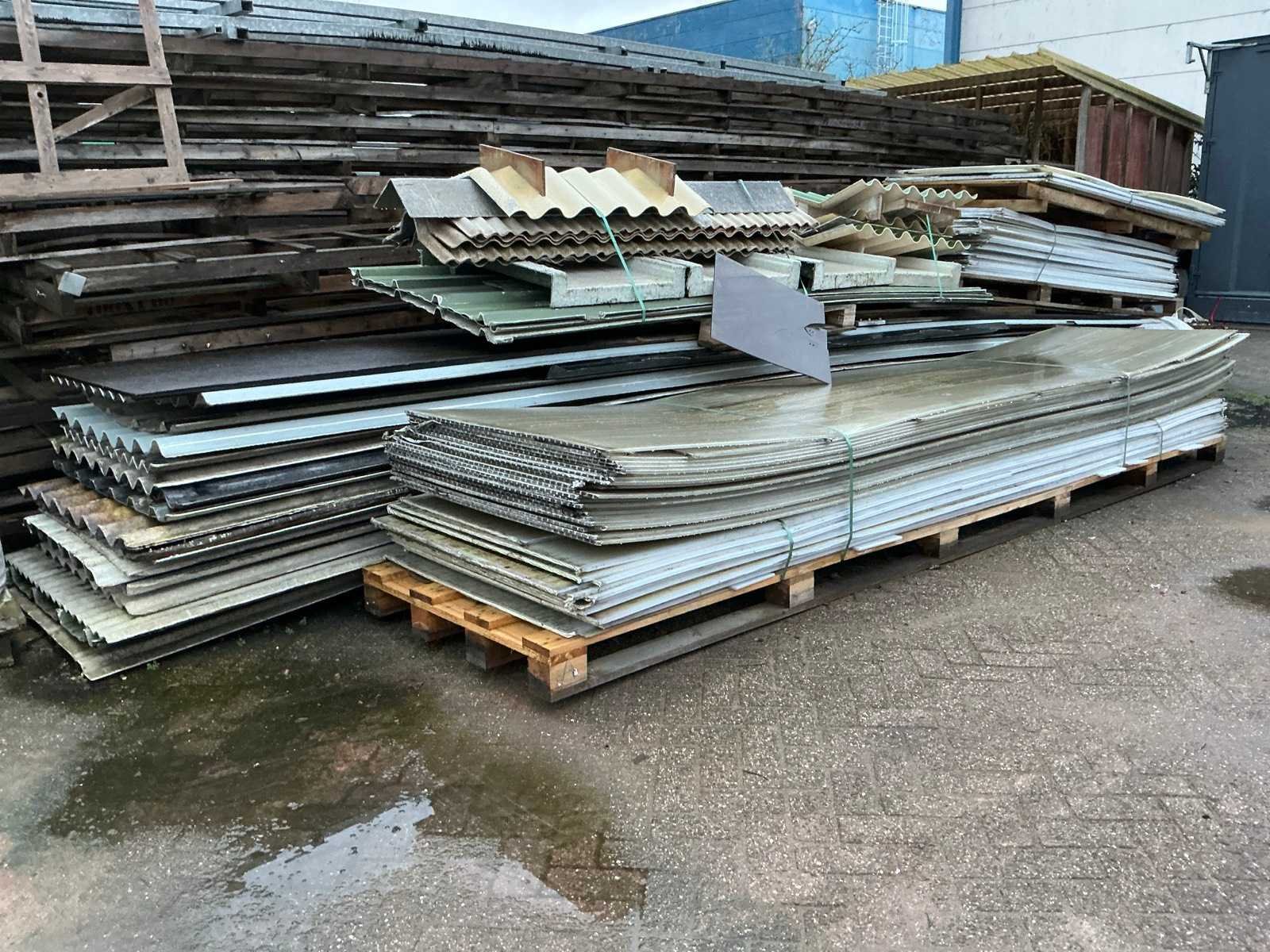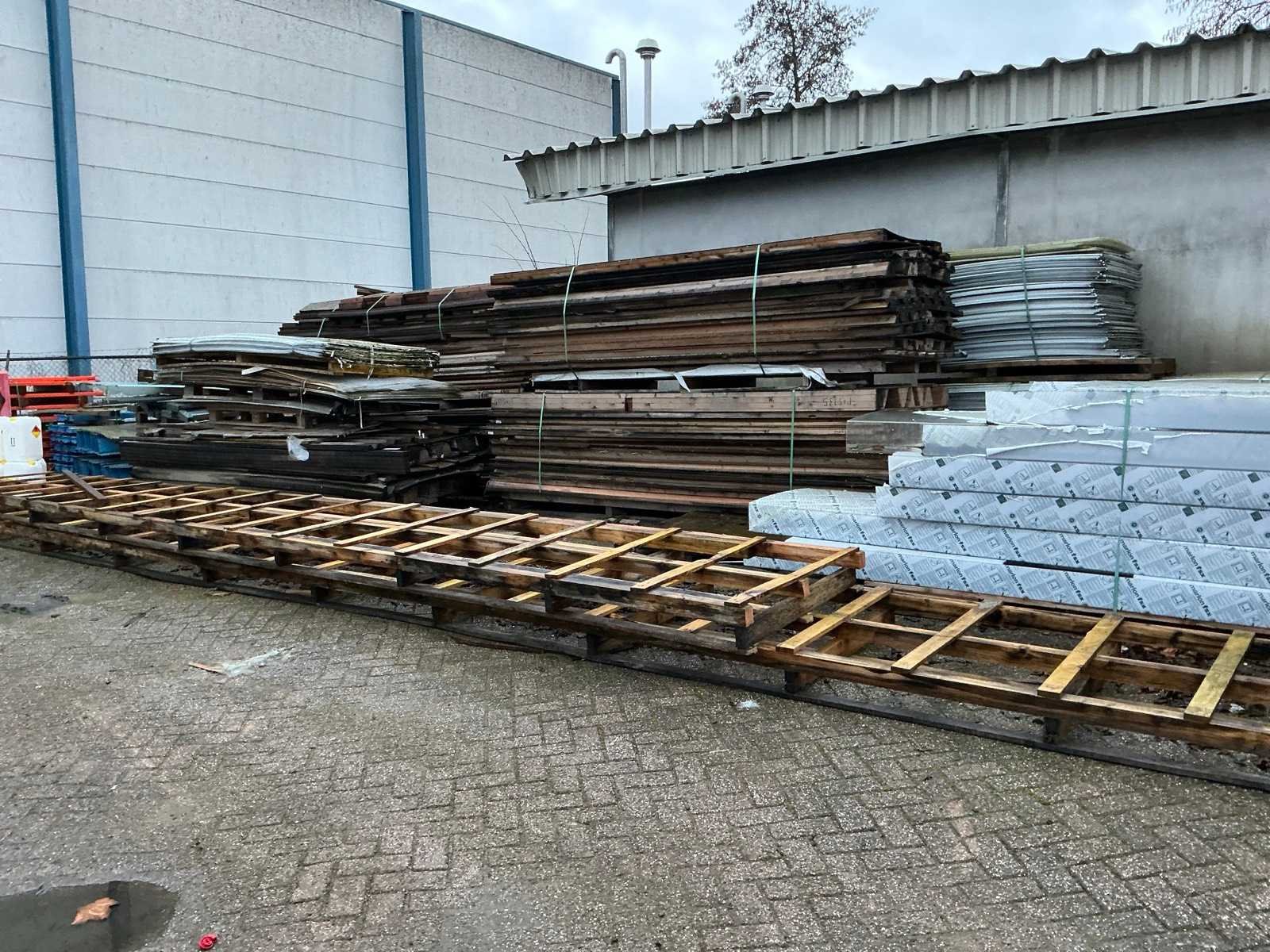 Waaronder diverse houten balken en pallets; dakplaten; polycarbonaat kanaalplaten