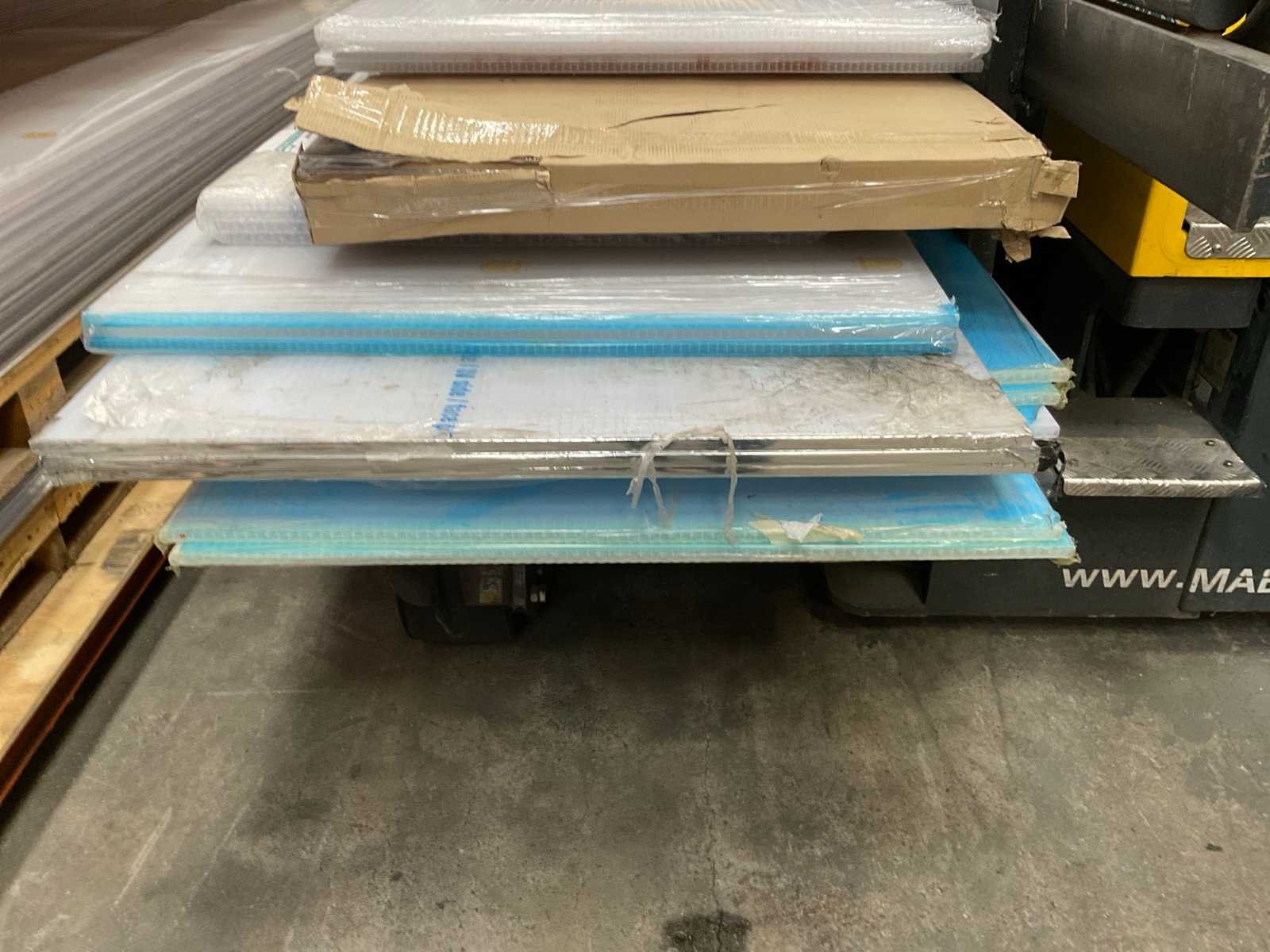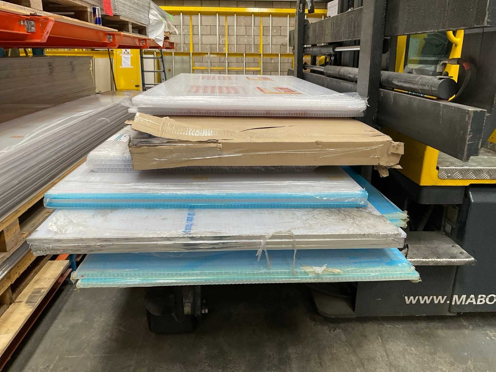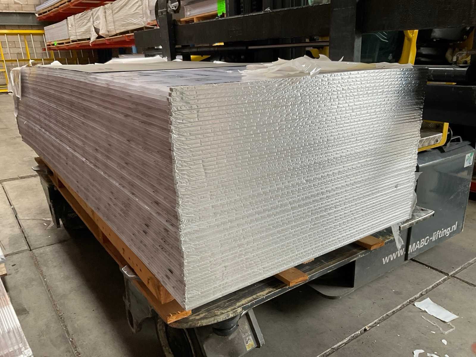 56x 2980x1050x10 mm, 29x 2290x1050x8 mm, 26x 1400x1275x14 mm, 12x 1050x2500x14 mm; 10x 1050x3000x mm; 6x 1050x3500 mm; 33x divers, Lengte: 298cm Breedte: 105cm Hoogte: 1cm