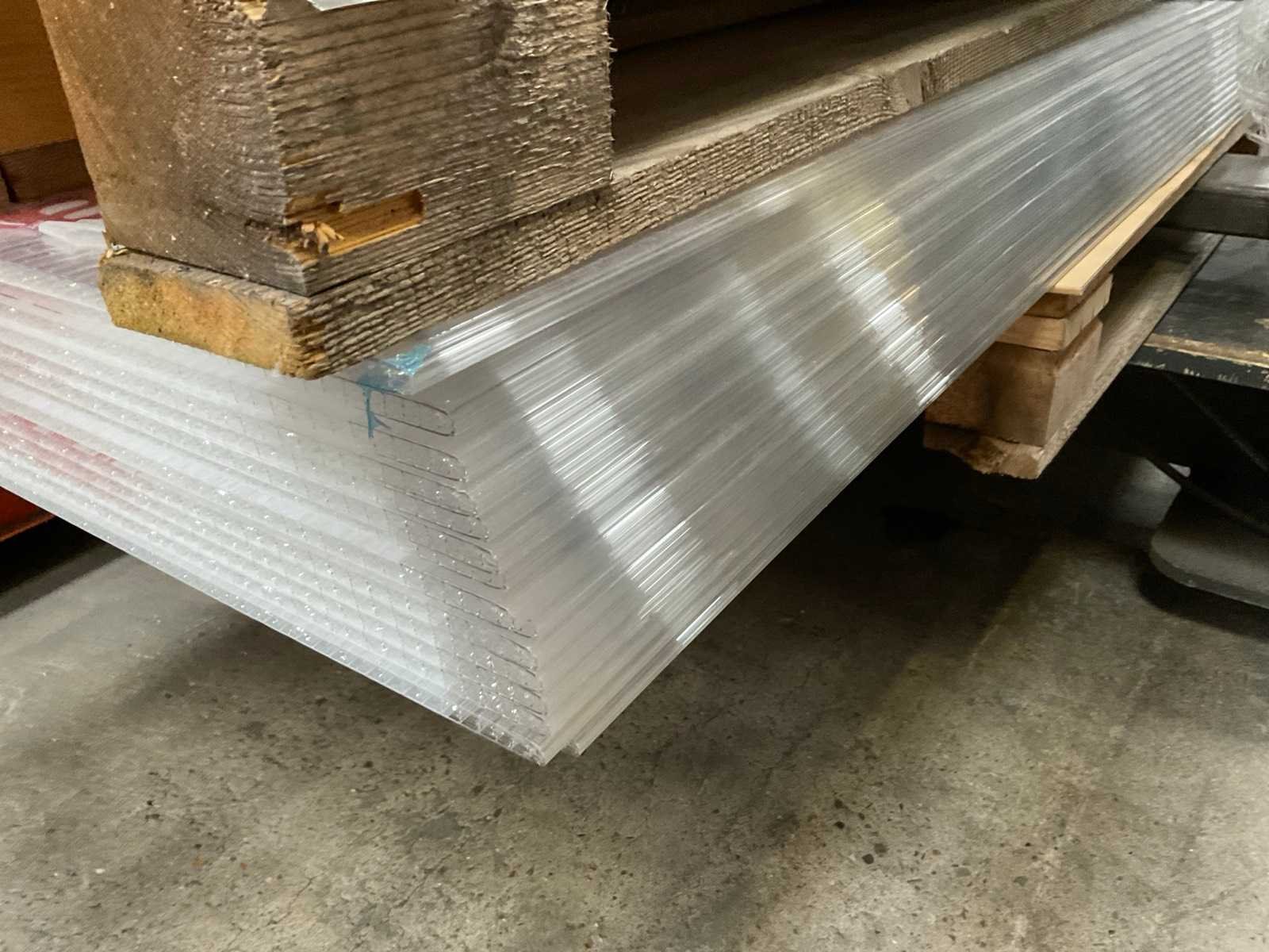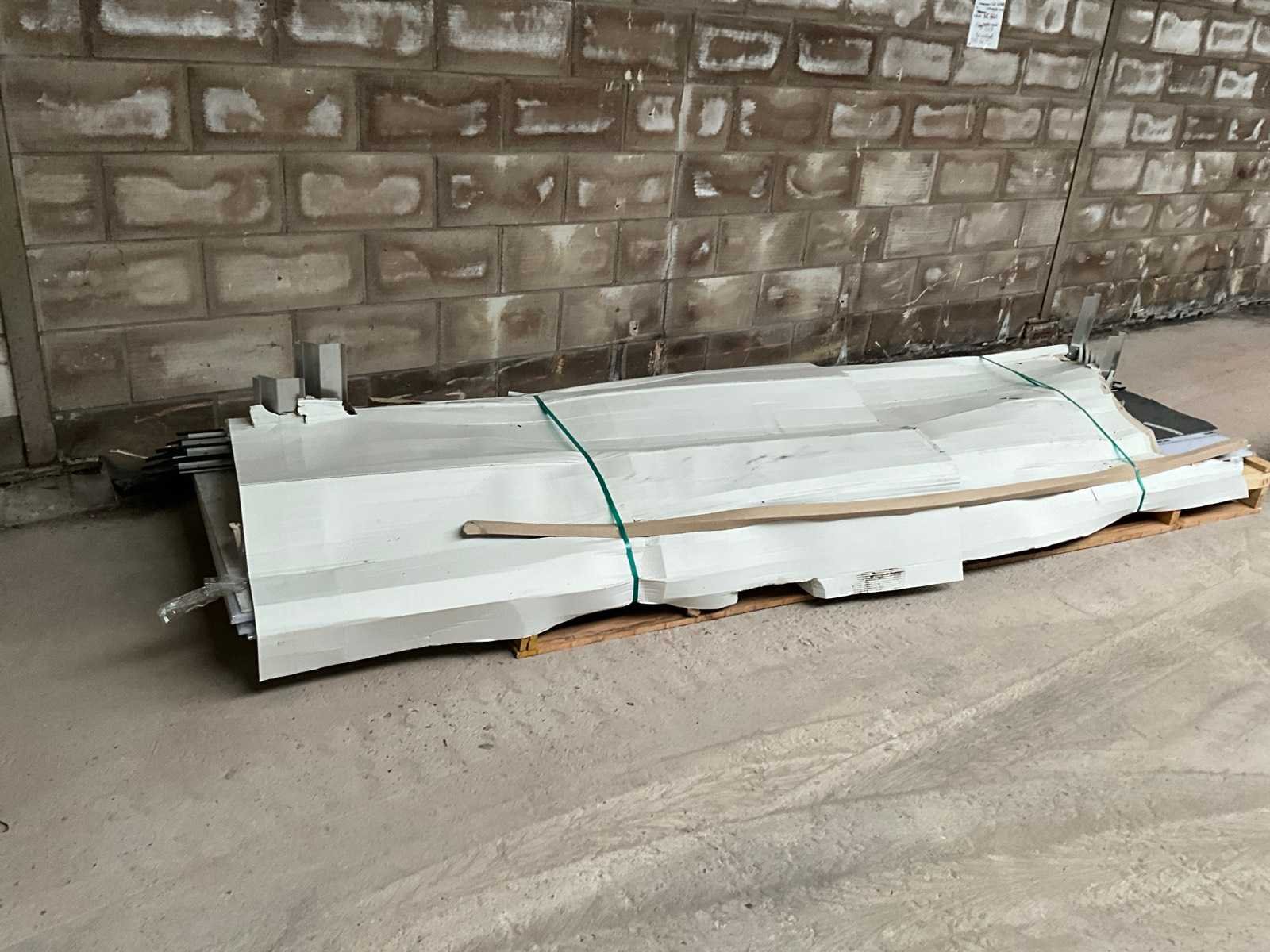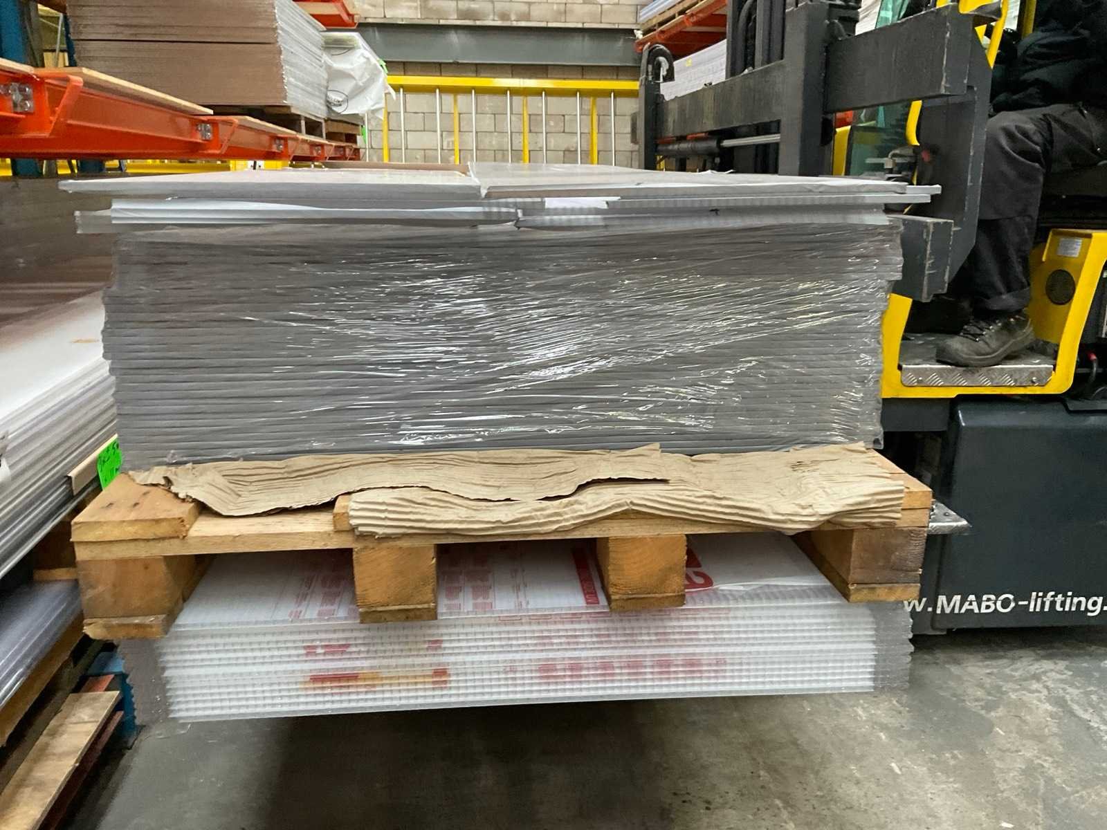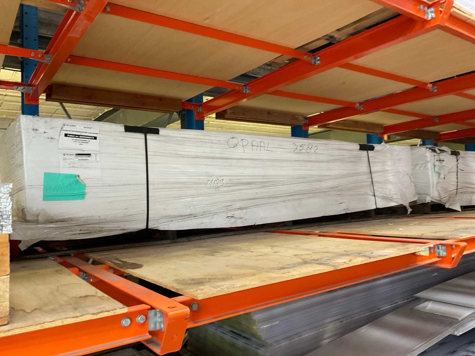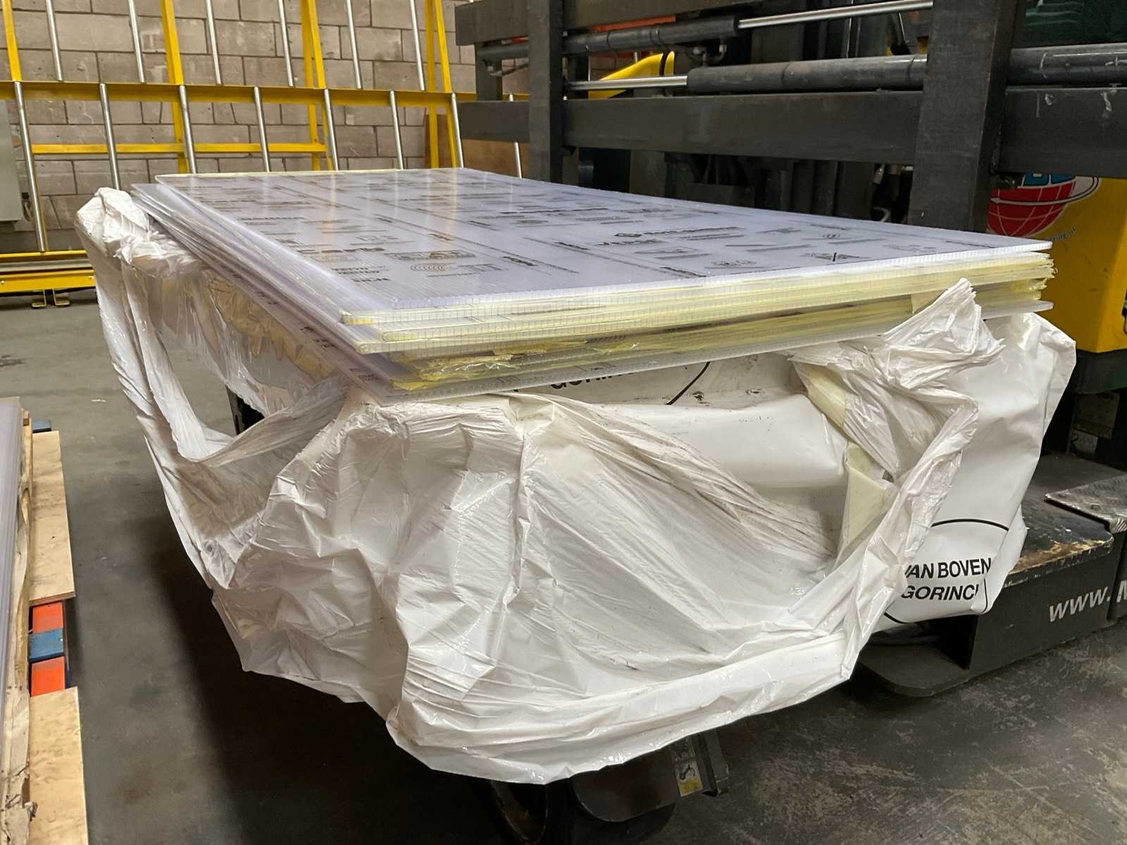 50x 1050x1590x10 mm; 17x 1050x2482; 10x 1050x2430x10 mm; 8x 1050x2680 mm; 15x 1050x4000x10 mm; 100x 1050x3582x10 mm; 32x 1050x3500x10 mm; 11x 1050x2533x10 mm. Inclusief 1x pallet half fabrikaat. Lengte: 1000cm Breedte: 105cm