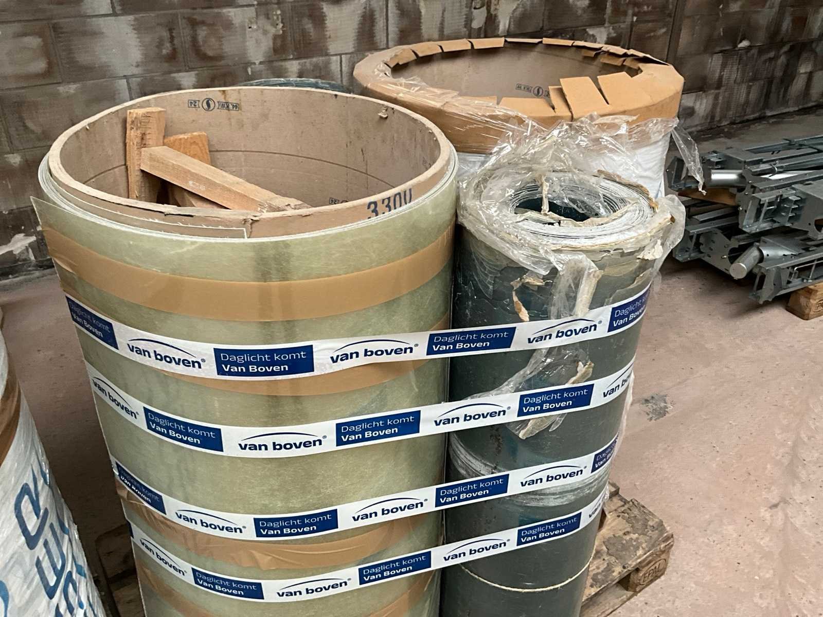 Diverse afmetingen op 2x pallet. Inclusief 3x pallet polyester plaatmateriaal op rol.