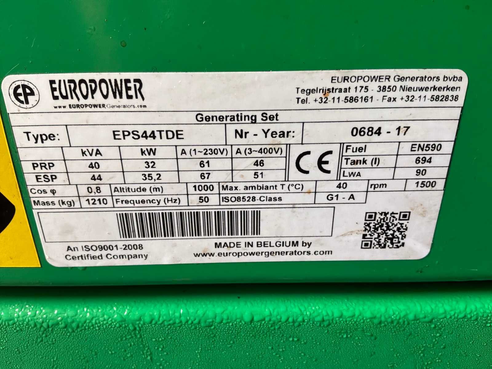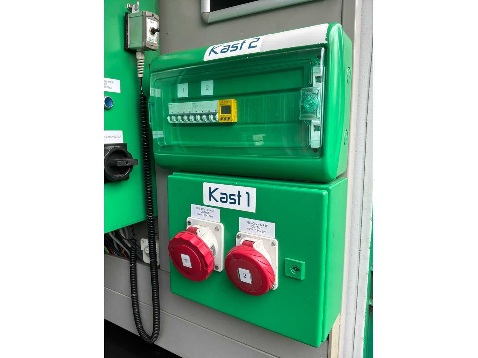 Gebouwd in container voorzien van opgebouwde zonnepanelen elektrisch uitklapbaar, 3x “Victron Energy” omvormer / lader type Quattro 48V/10000VA/140Amp, 1x “Victron Energy” Smart solar charge controller type MPPT150I85-Tr, centrale besturingskast met “Siemens” en “ Victron Energy” digitale controllers en 12x “Victron Energy ” lithium batterijen type Smart LifePO4, 12,8V-200Ah Merk: Europower Type: EPS44TDE Bouwjaar: 2017 Serienummer: 0684 Capaciteit.: 44kVA Motor merk: Kubota Motorcapaciteit: 35.2kW Totale afmeting L: 3000mm Totale afmeting Breedte: 2450mm Totale afmeting Hoogte: 3630mm