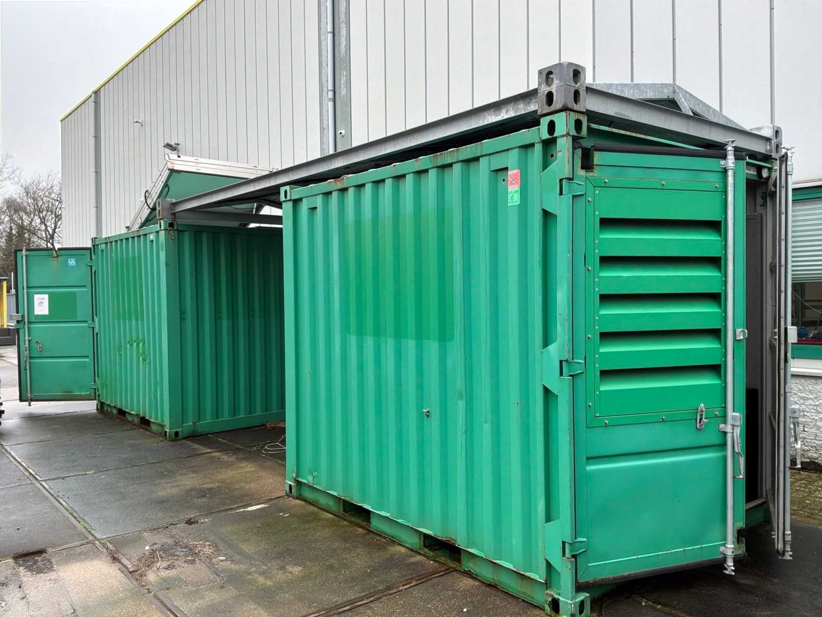 Capaciteit 66 en 44kVA, 53 en 36,2kW, beide in container, 1x met elektrisch bedienbare zonnepanelen en 1 met zonnepanelen gemonteerd op stalen dakframe, container afmeting elk circa 3000x2450x2600mm Merk: Europower Type: EPS66TDE / EPS44TDE Bouwjaar: 2017