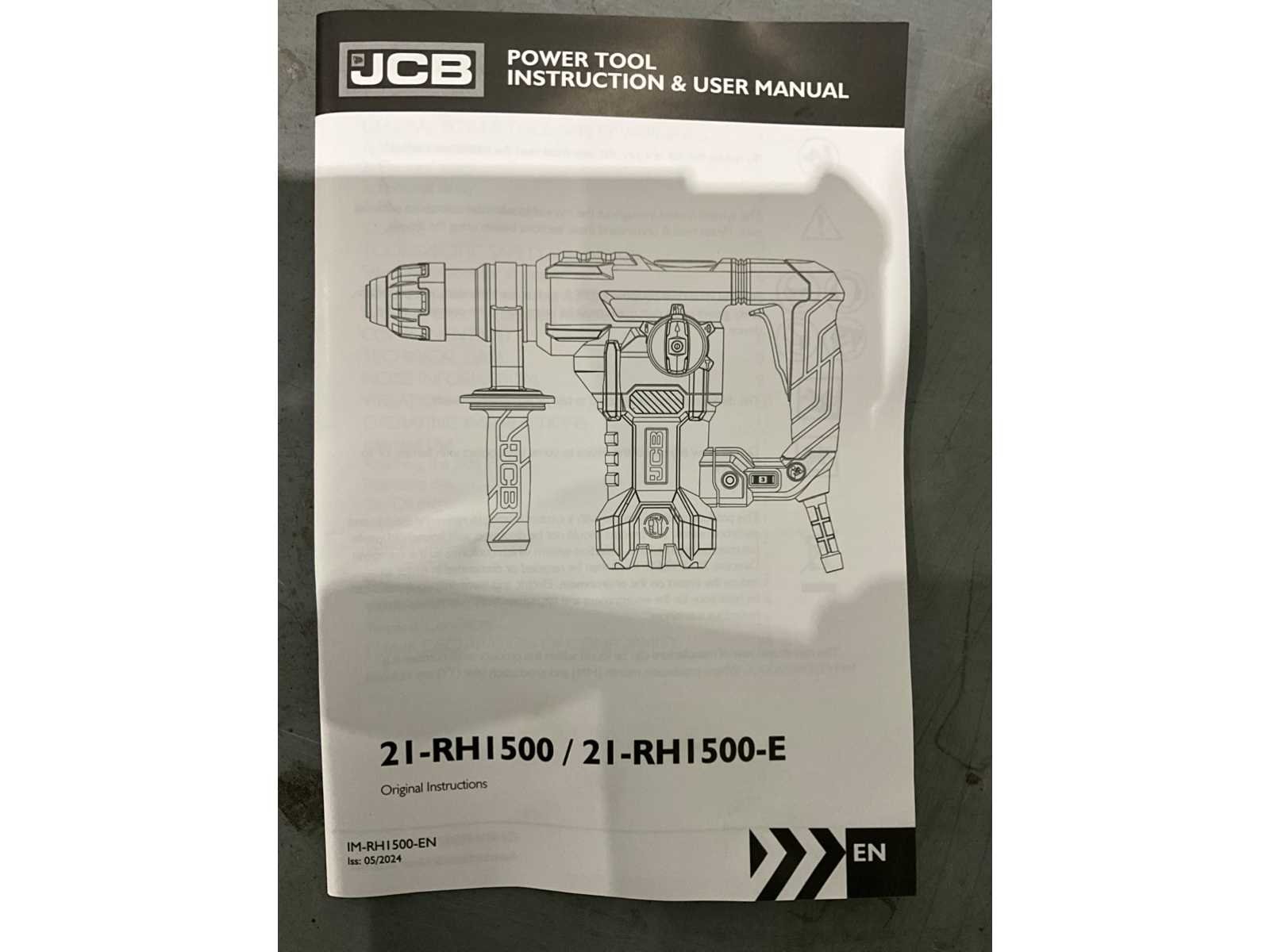 Ongebruikt , 1x JCB 1500W boorhamer, 1 x zijhandgreep, 1 x puntbeitel 14 x 250mm, 1 x platte beitel 14 x 250mm, 3 x boren 8/10/12mm x 150mm, 1 x reserve paar koolborstels, 1 x stofkap, 1 x vetbuis, 1 x moersleutel Merk: JCB Type: 21-RH1500W Bouwjaar: 2025 Vermogen: 1500W Gewicht: 5